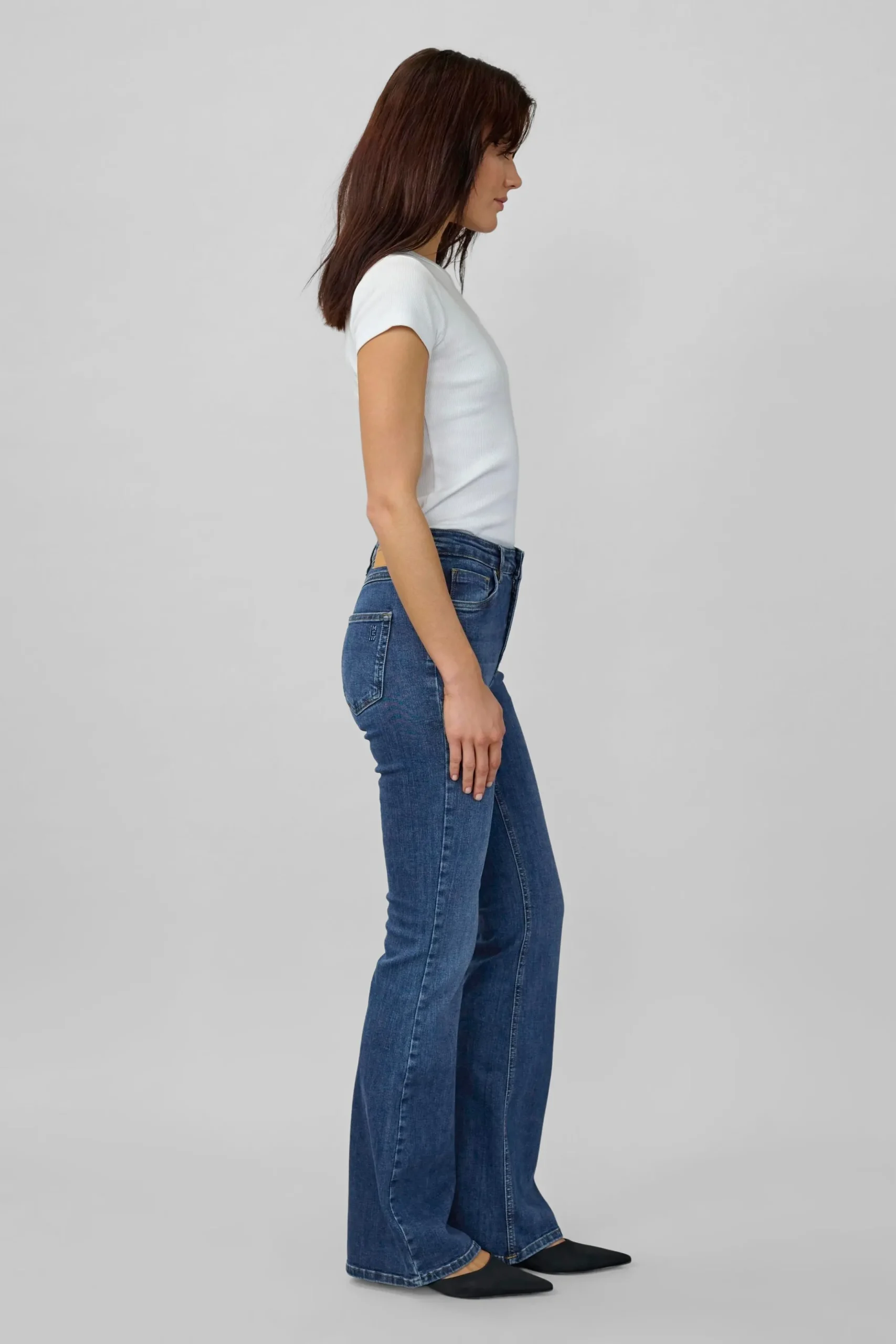 5-pocket jeans with a skinny fit, bootcut leg and high waist. \\nMade in Turkey from BCI Cotton, the jeans have a soft feel that lies on the skin, high elasticity and power stretch for maximum freedom of movement. The jeans have a medium blue wash, comes in two lengths 32窶