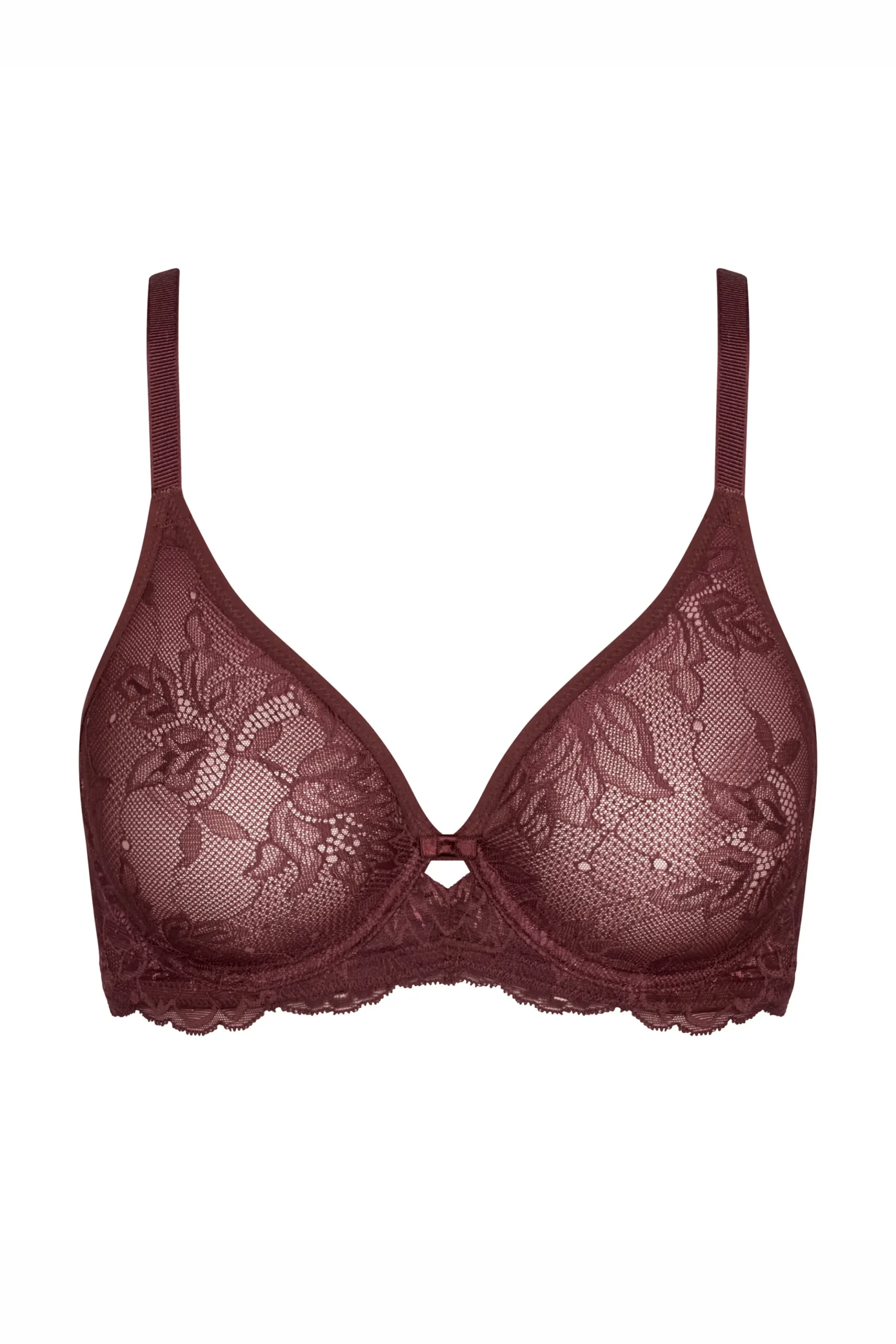 BH fra Triumph med polstrede skåle. Justerbare stropper. Blonde for og bag. Hægtelukning bagpå.