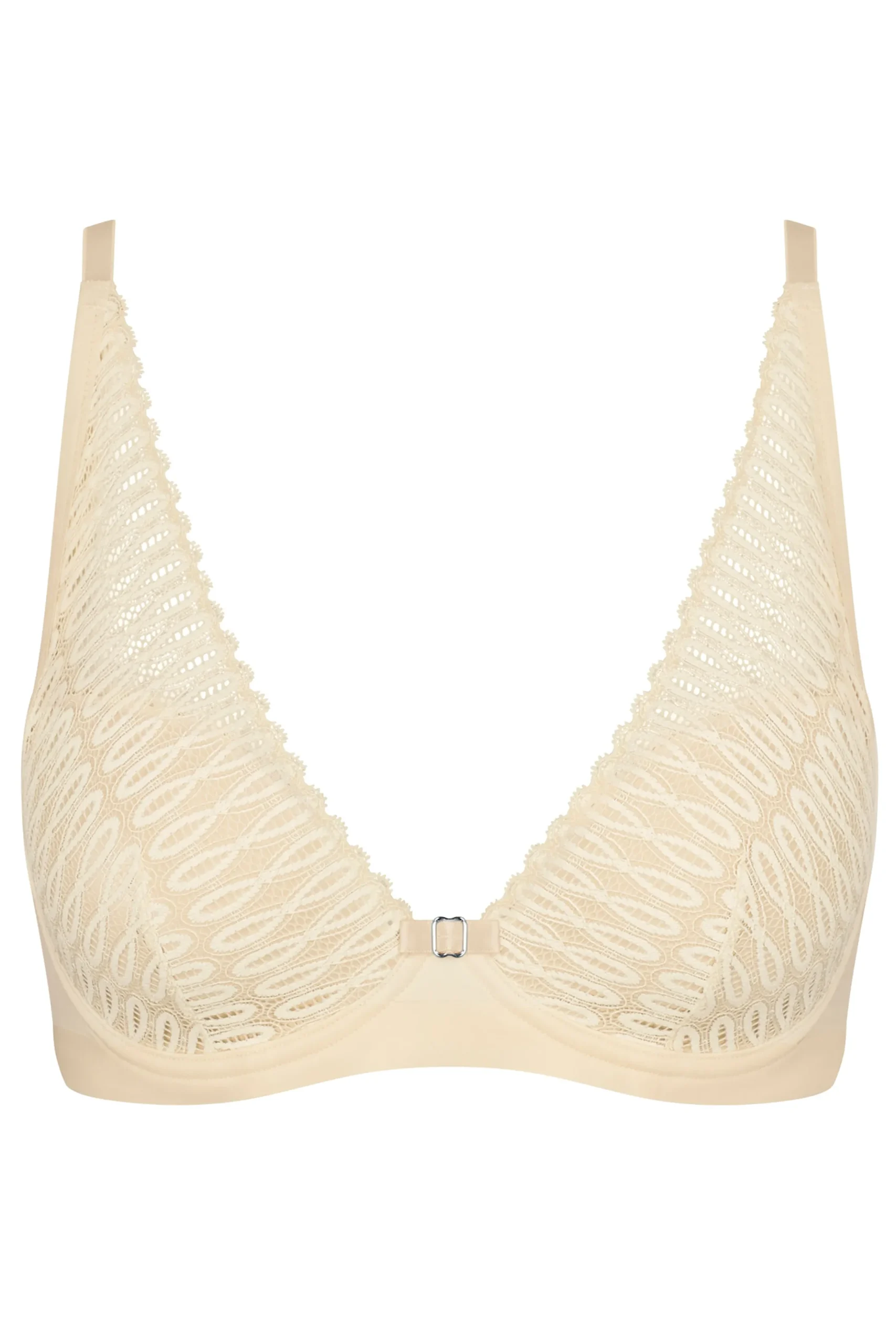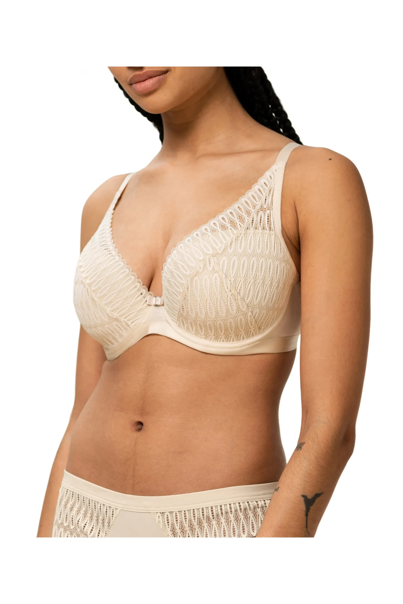 BH fra Triumph med polstrede skåle. Justerbare stropper. Blonde foran. Hægtelukning bagpå.