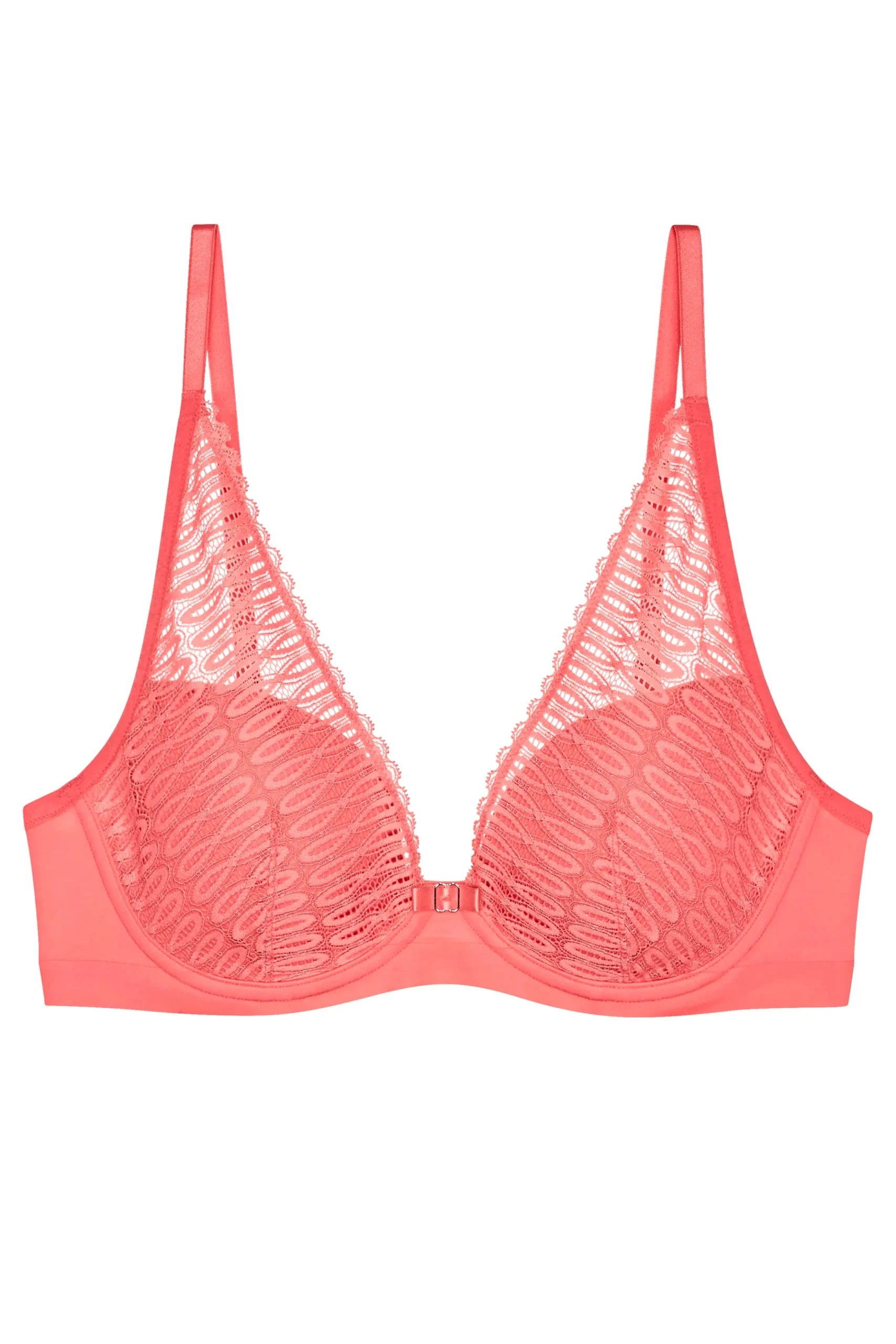 BH fra Triumph med polstrede skåle. Justerbare stropper. Blonde foran. Hægtelukning bagpå.