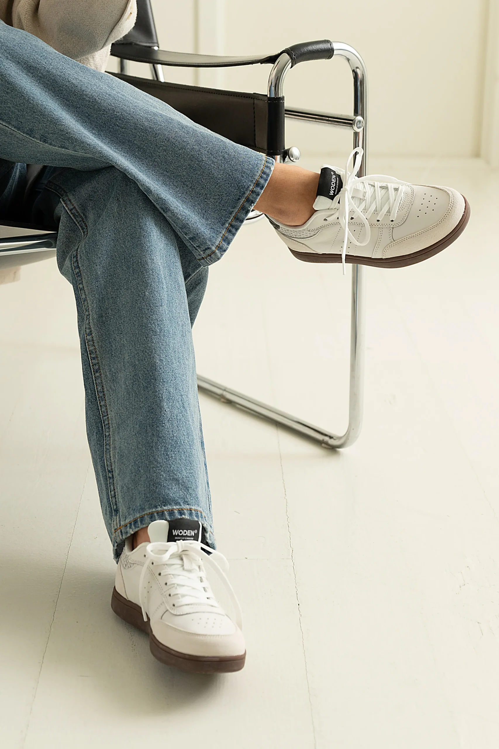 Unikt for WODEN-sneakers er, at vi inkorporerer mindst 50 % genanvendt polyester fra PET-flasker i materialet. Der anvendes blødt PU-skum til sneakerens indersål, som ikke kun er let, men også stødabsorberende. \\n \\nLetvægtsdesignet er sikret ved hjælp af en WODEN airflow indersål og en ydersål baseret på vores Natural Soft-teknologi. En teknologi, der er designet til at sikre den bedst mulige komfort, hvilket gør Bjork til en komfortabel følgesvend på farten.\\n\\n窶æder\\n窶ål med Natural Soft teknologi\\n窶øtte\\n窶æder detaljer\\n窶ægssål med Airflow system
