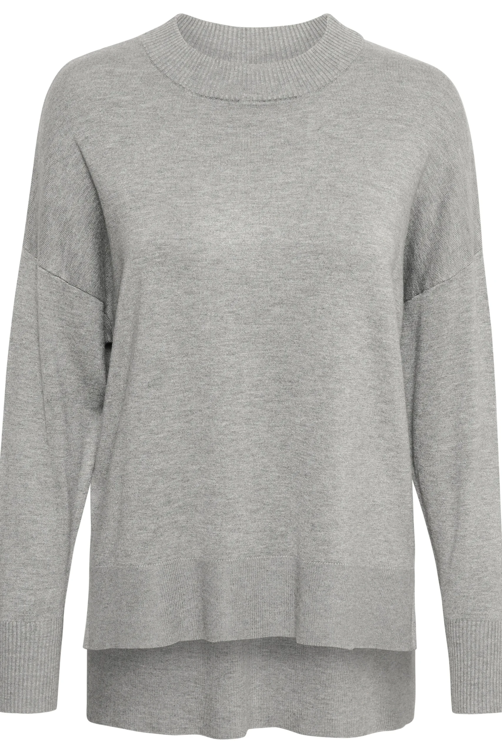 Strikbluse fra BON’A PARTE med rund hals. Lange ærmer. Ribkant i hals, ærmer og forneden. Længere bagtil end foran. Løstsiddende pasform.
