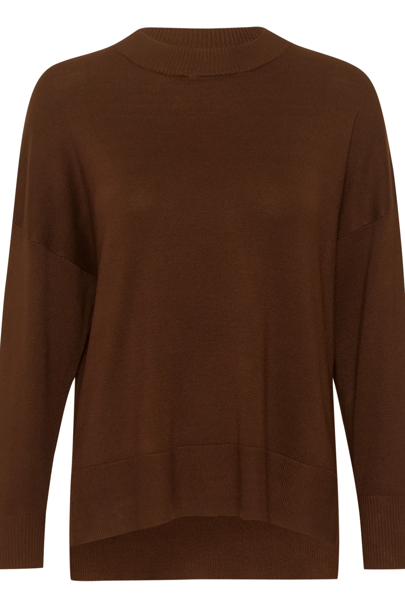 Strikbluse fra BON’A PARTE med rund hals. Lange ærmer. Ribkant i hals, ærmer og forneden. Længere bagtil end foran. Løstsiddende pasform.