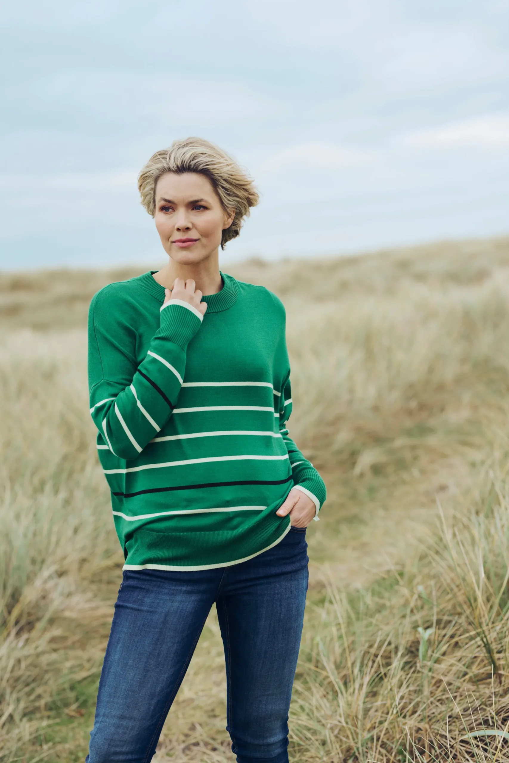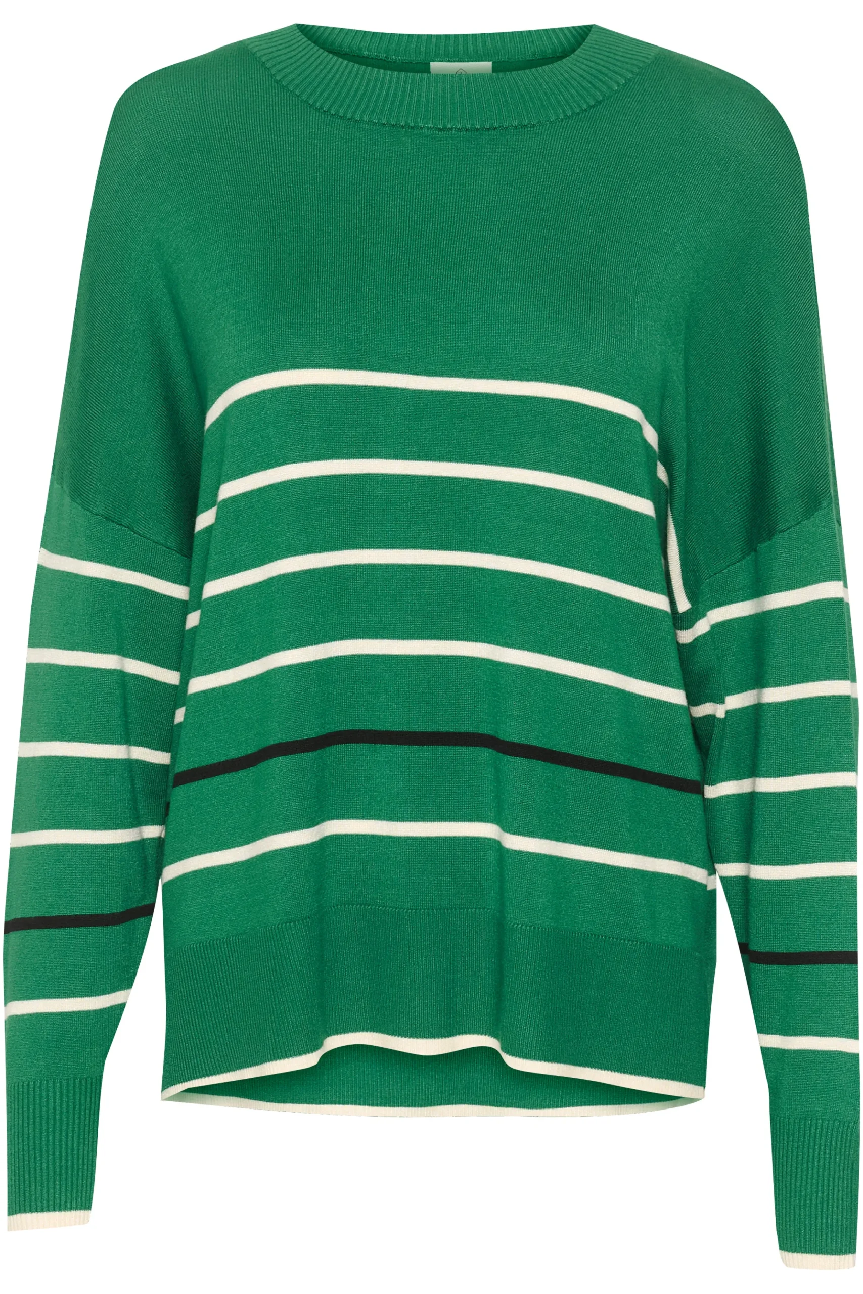 Strikbluse fra BON’A PARTE med rund hals. Lange ærmer. Ribkant i hals, ærmer og forneden. Slids i siden. Længere bagtil end foran. Løstsiddende pasform.