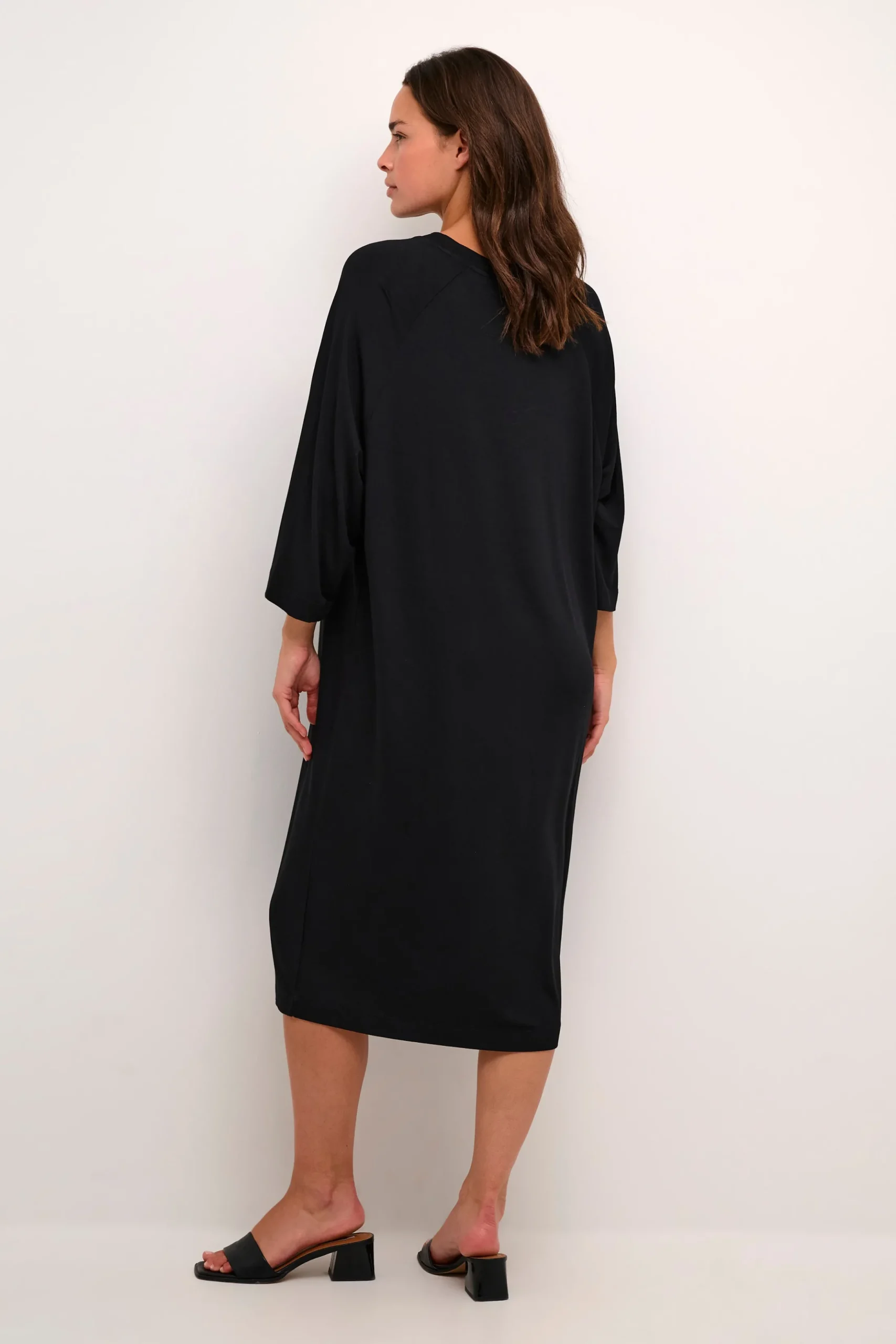 Nyd godt af Bon’A Partes jerseykjole, der tilbyder et klassisk snit. Denne underkneelange model med 3/4 ærme er et sikkert valg til en afslappet og alligevel stilfuld hverdagslook. Kvaliteten er strikket, hvilket sikrer holdbarhed og elegance. Denne kjole er lavet med fokus på funktionalitet og design.