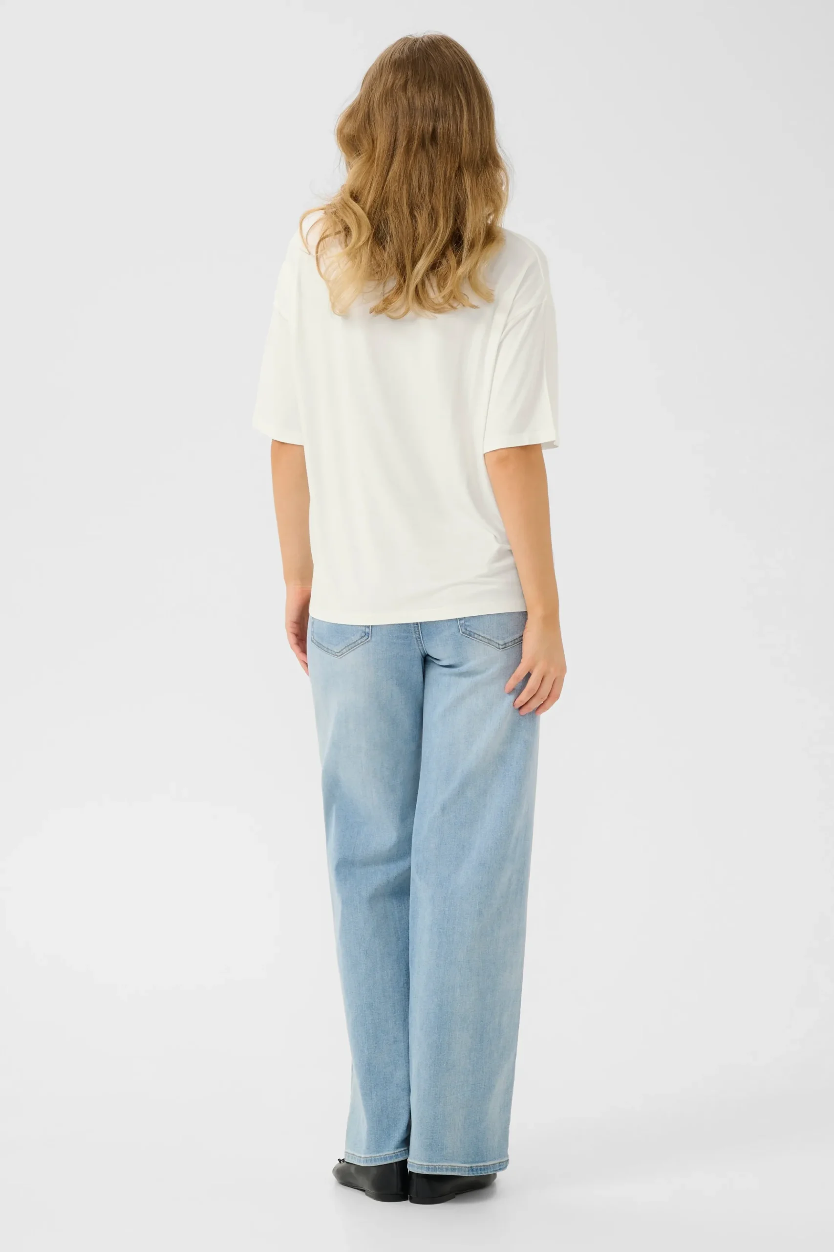 Denne T-shirt fra Bon’A Parte er perfekt til hverdagsbrug med sin løse pasform og almindelige længde. Ærmerne går til albuen og den er strækbar. Den er lavet af et blødt jersey materiale, der gør den behagelig at have på. Det simple og praktiske design passer til alle lejligheder.