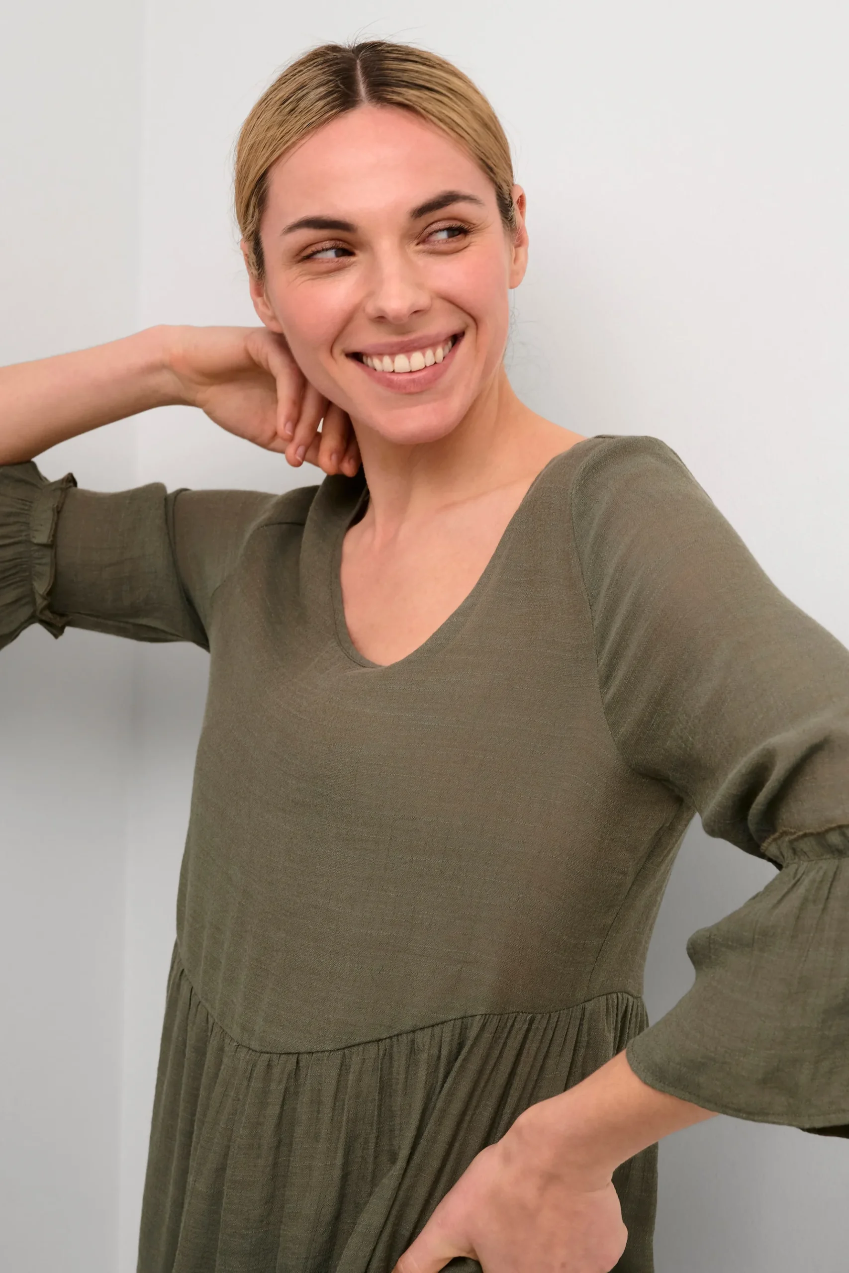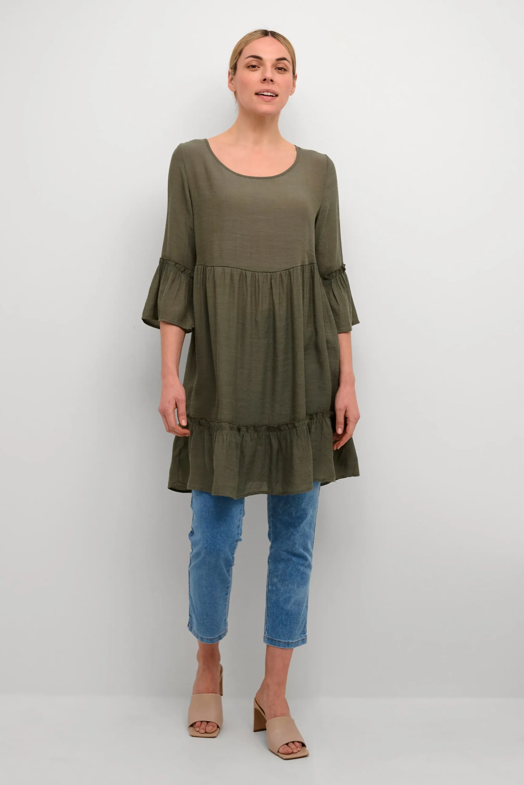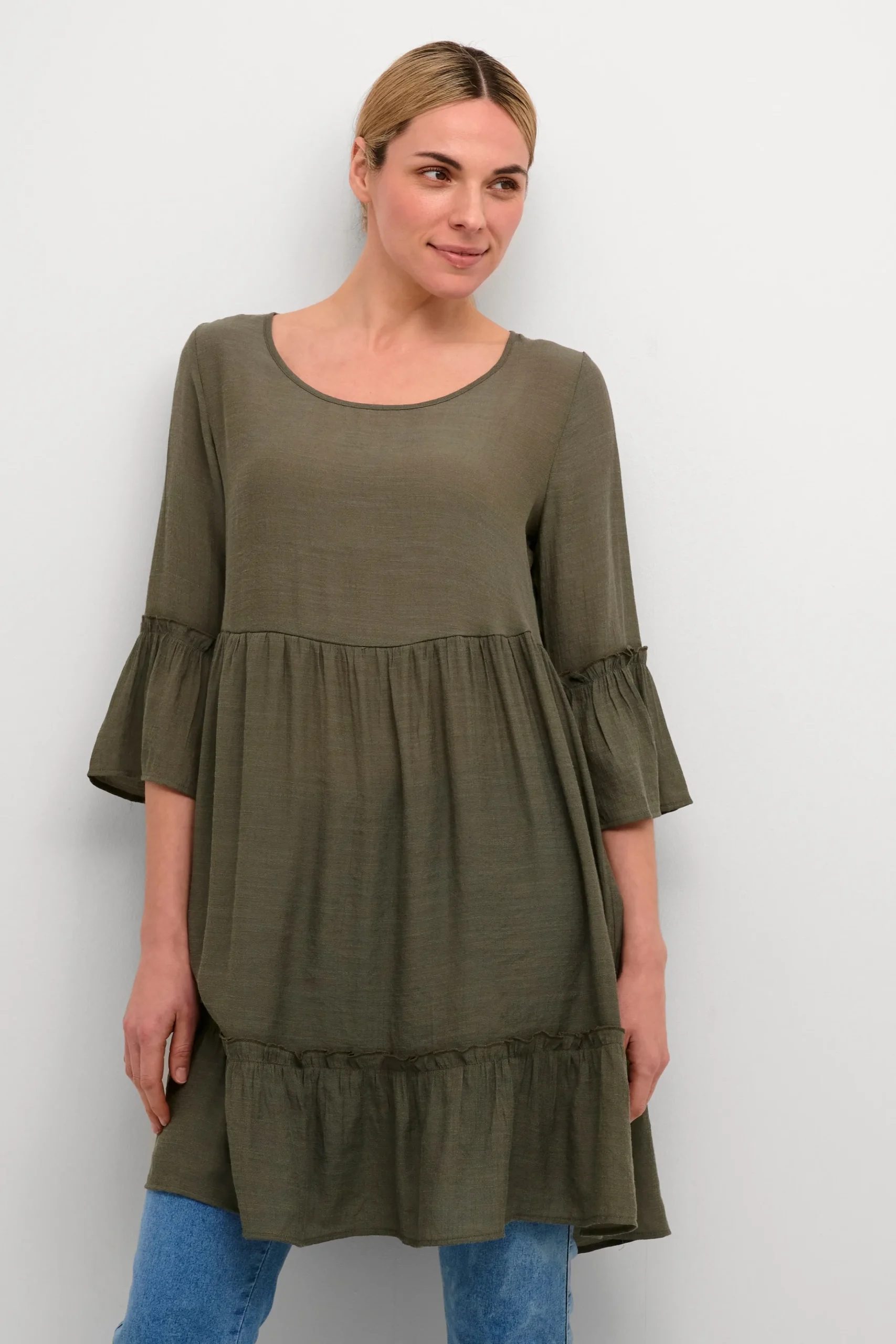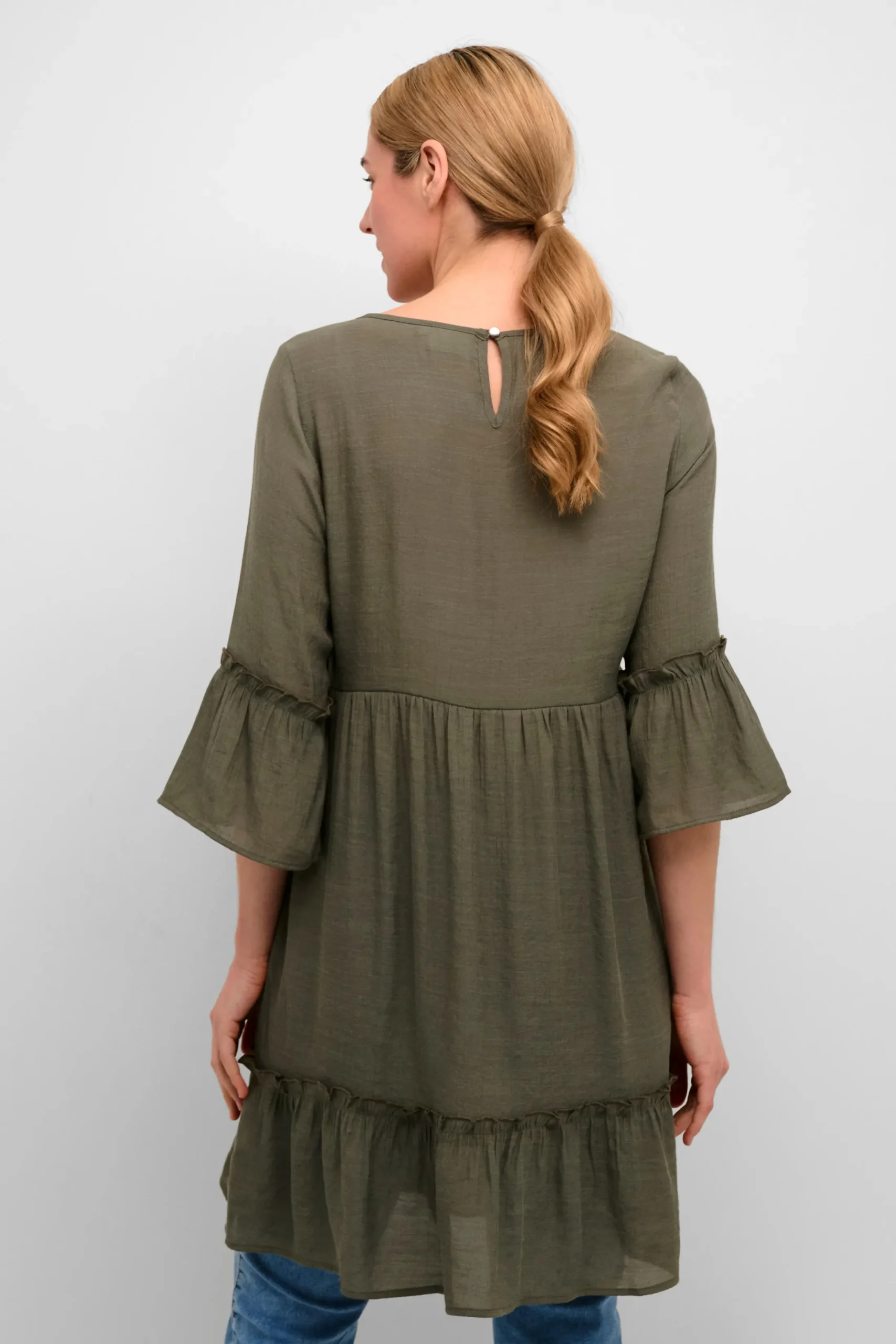 Tunika fra BON’A PARTE med rund hals. 3/4-ærmer. Slids i ryg med knap. Overskæring foran og bagtil. Flæsedetalje på ærmer. Vævet kvalitet. Løstsiddende pasform.