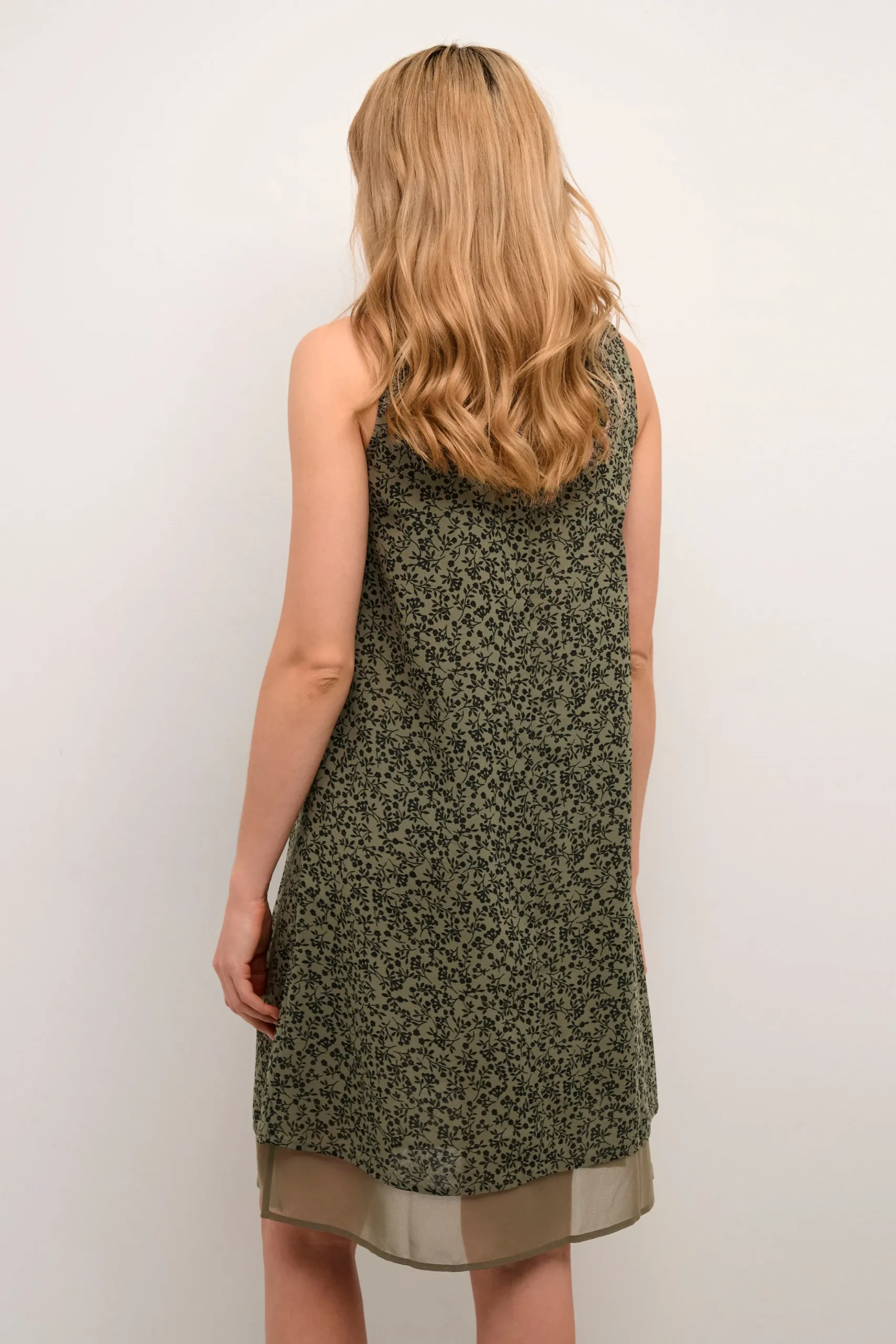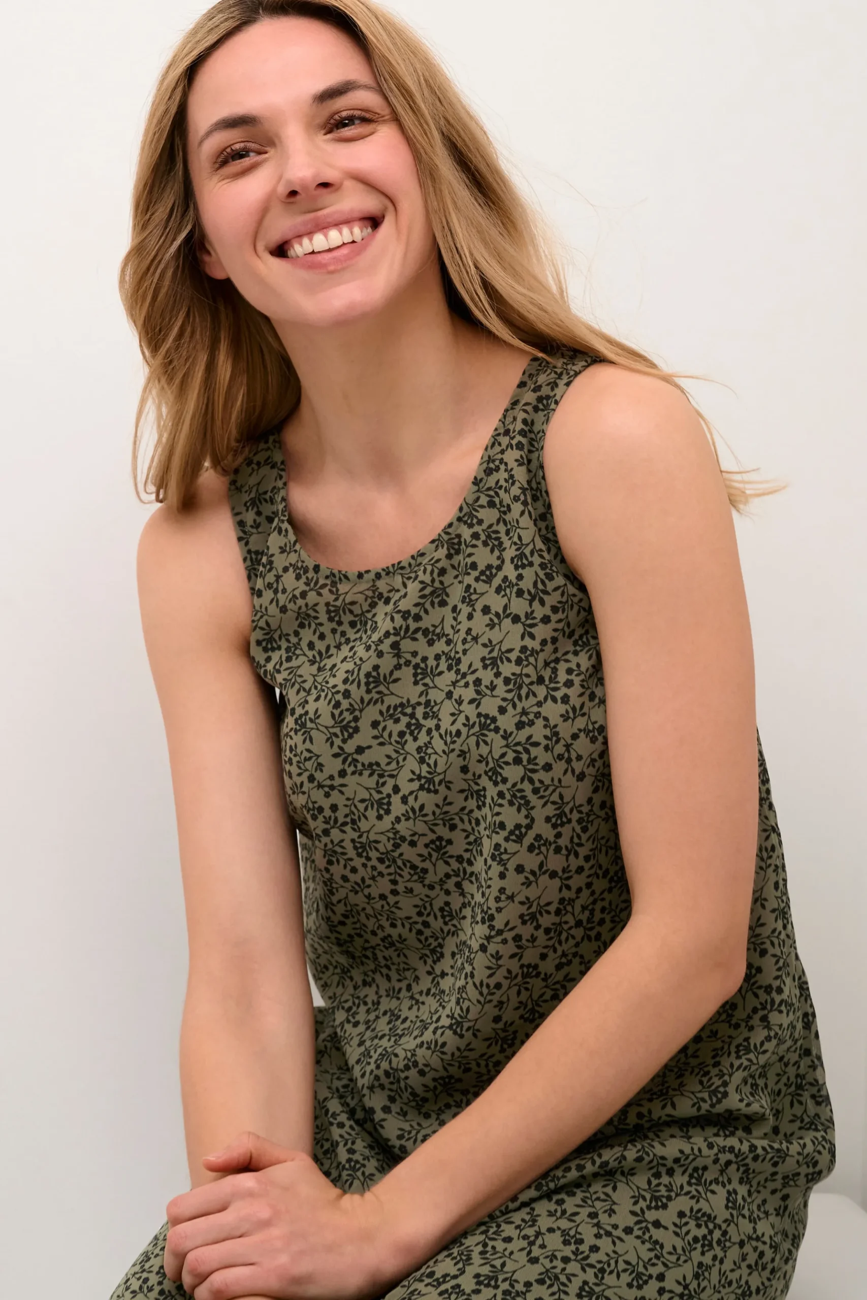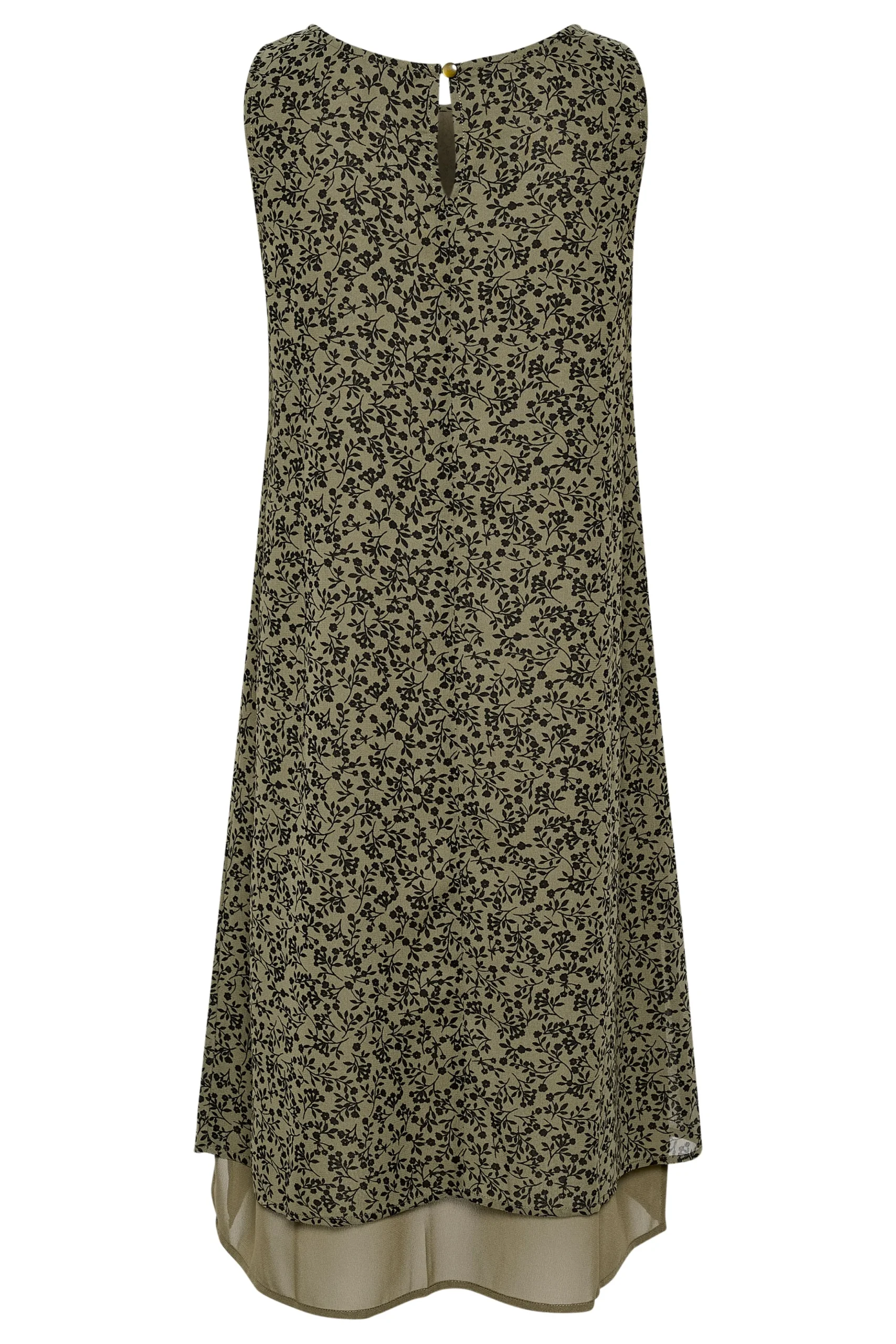 Kjole fra BON’A PARTE med rund hals. Ærmeløs. Slids i nakke med knap. Længere bagtil end foran. All-over print. Vævet chiffonkvalitet. A-form.