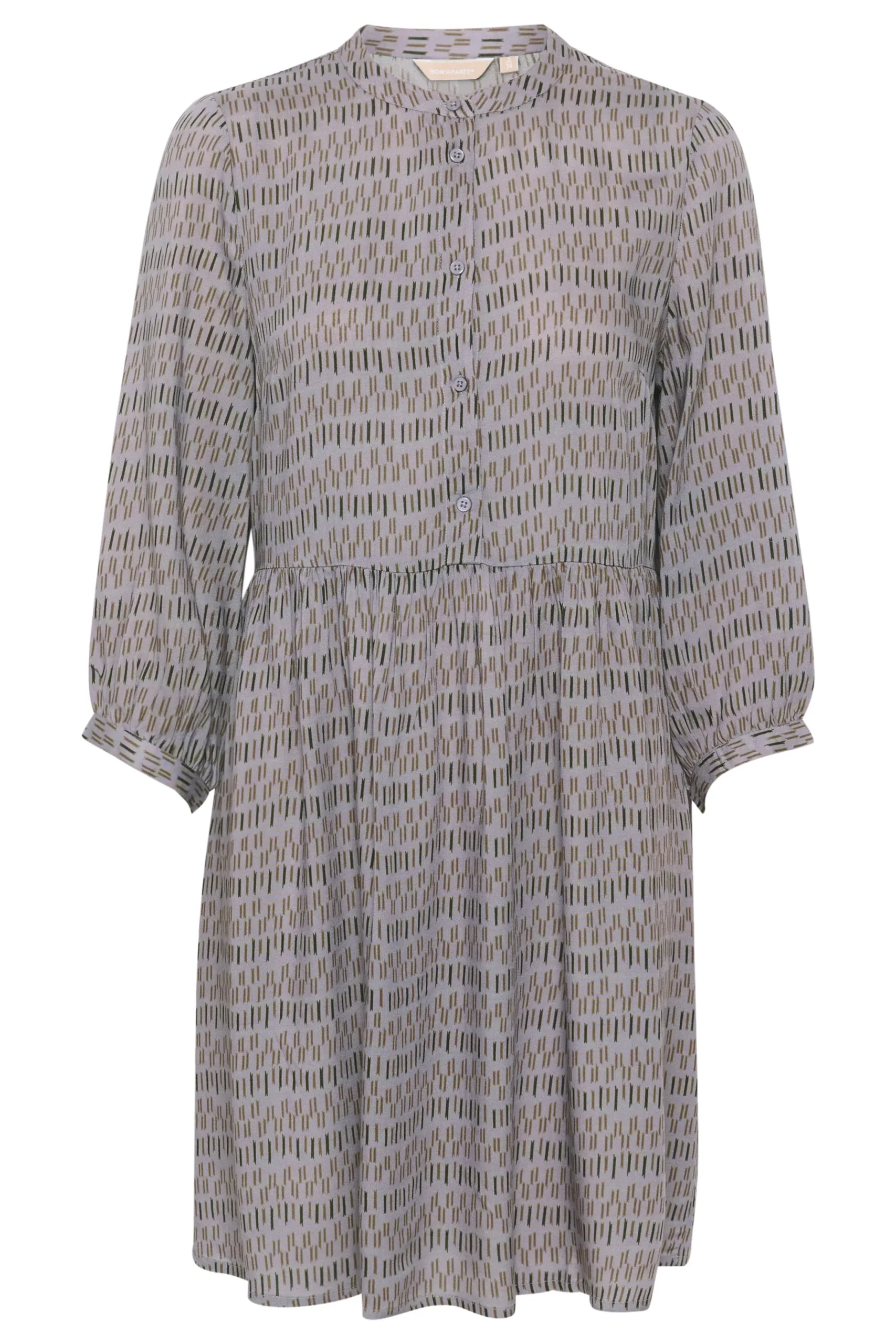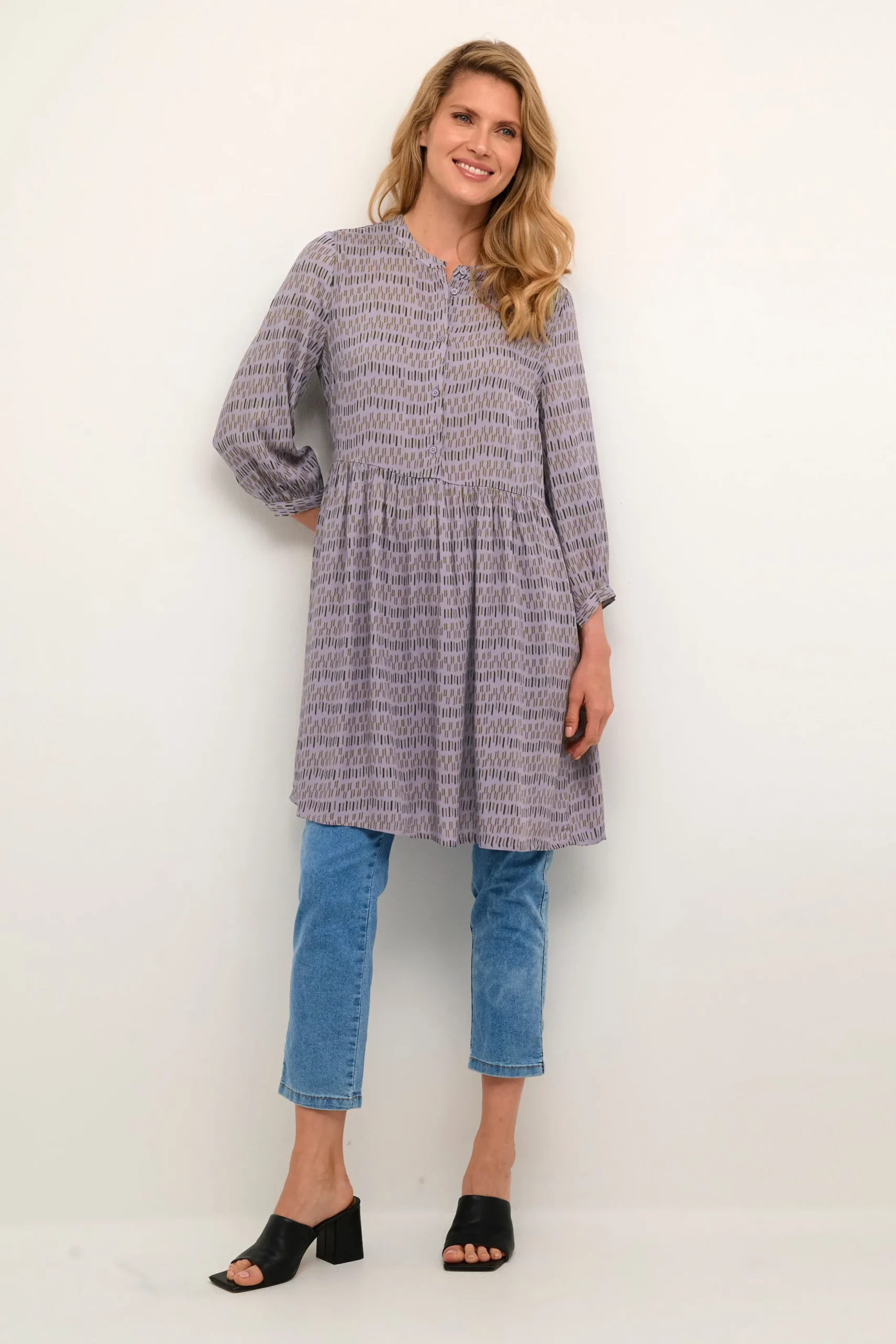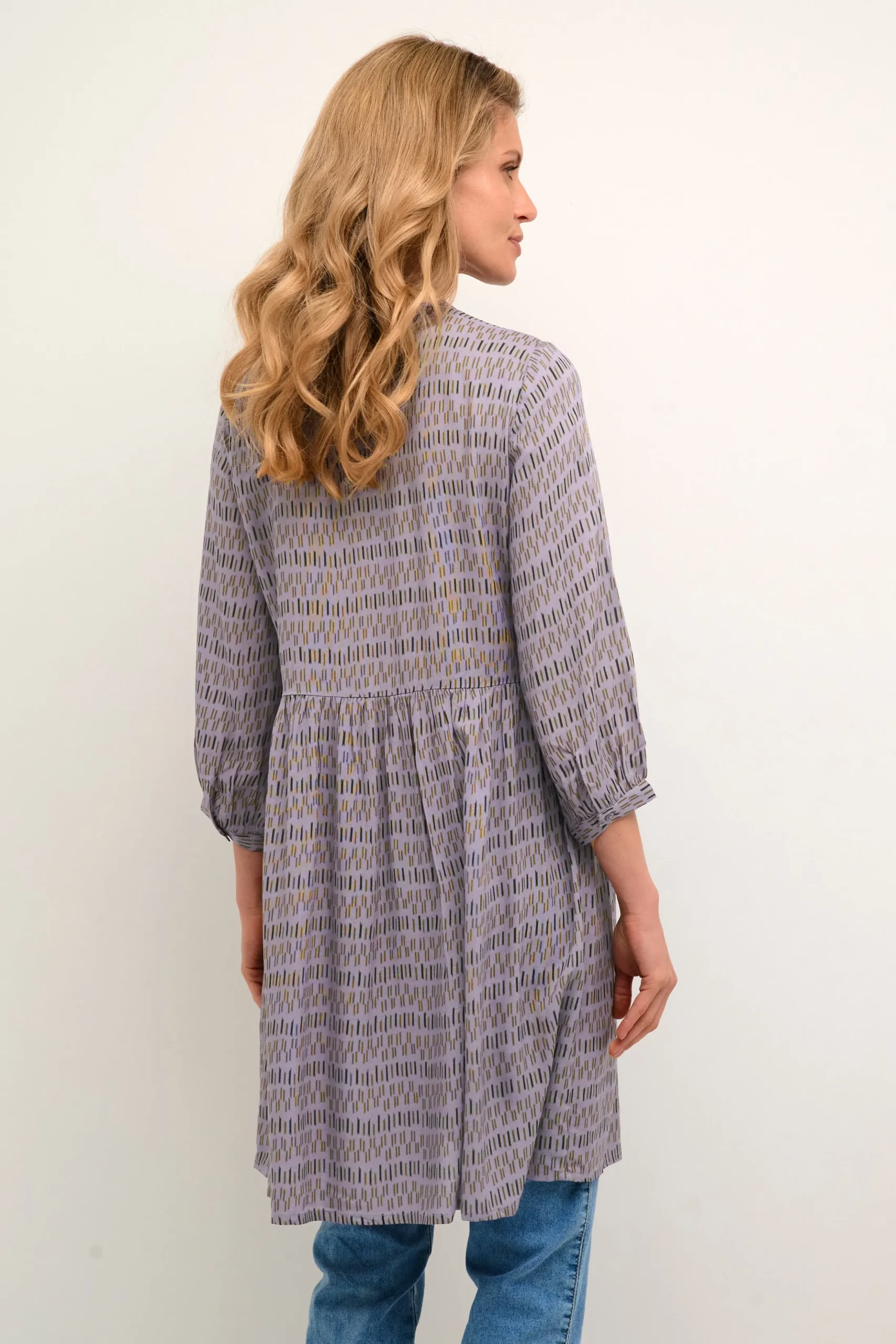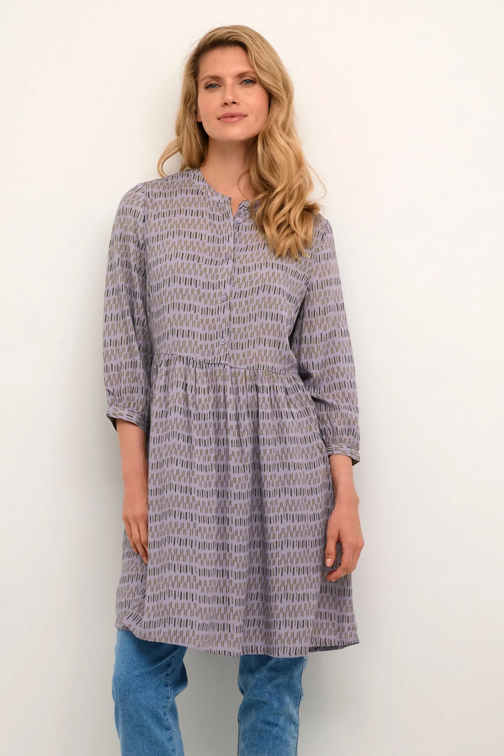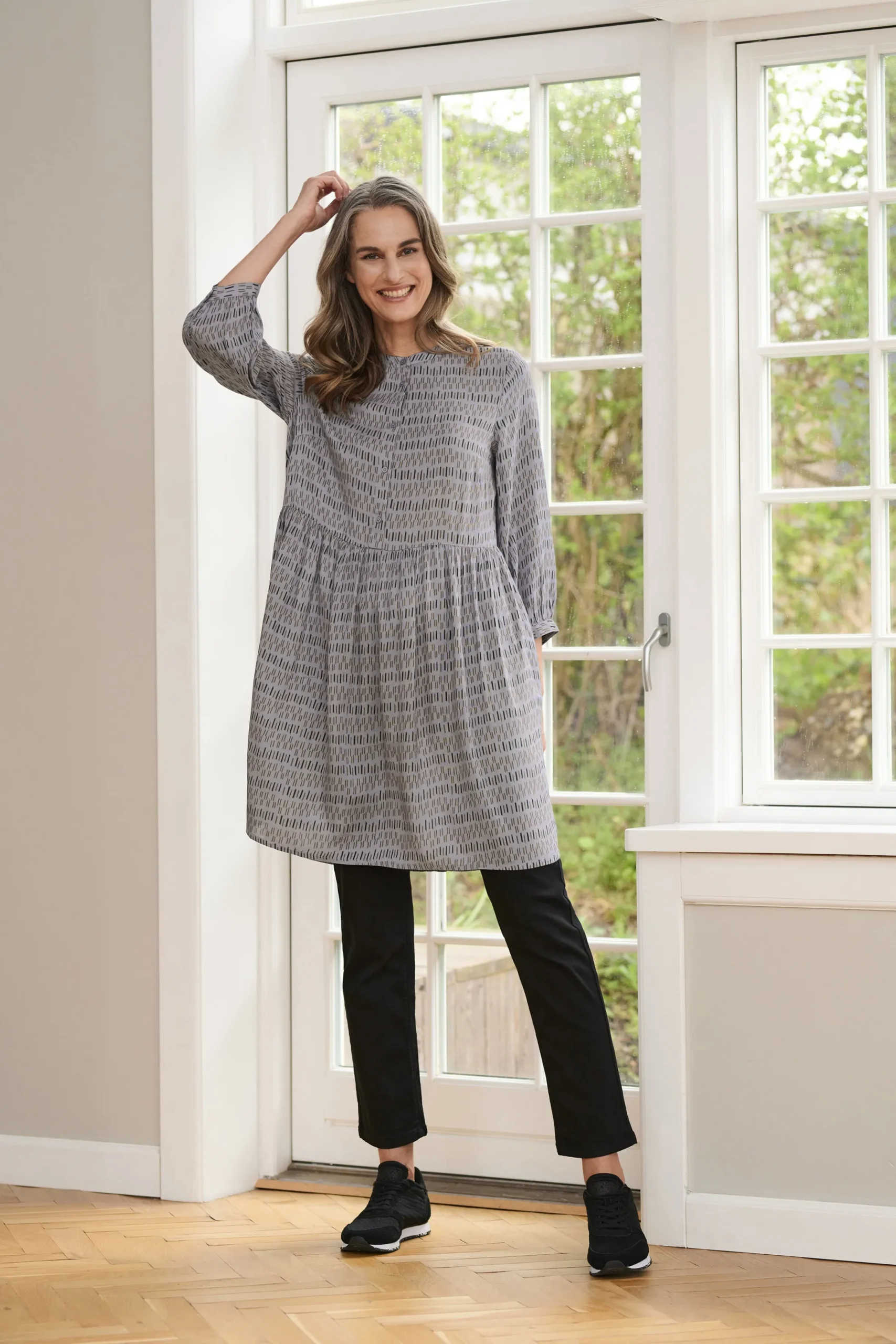 Tunika fra BON’A PARTE med rund hals. 3/4-ærmer. Stolpelukning med knapper. Overskæring i taljen. All-over print. Vævet kvalitet. Normal pasform.\\n