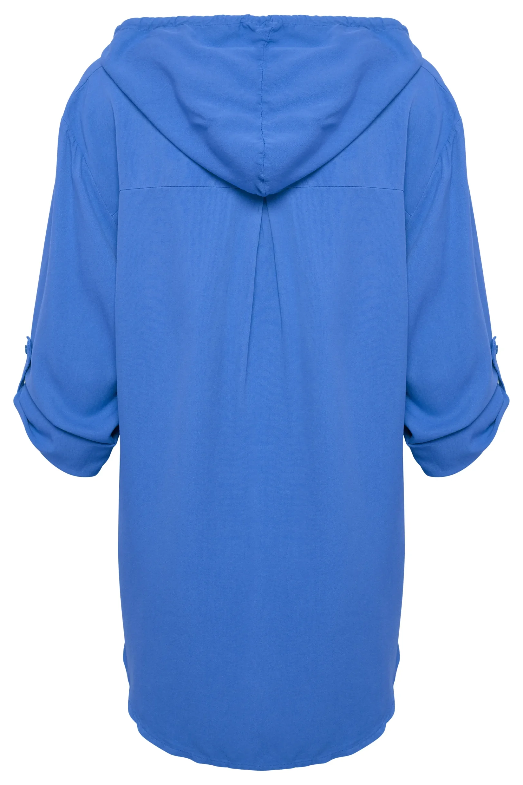 Bluse fra BON’A PARTE med hætte og snøre. Stolpelukning med knapper. Vævet kvalitet. Normal pasform.