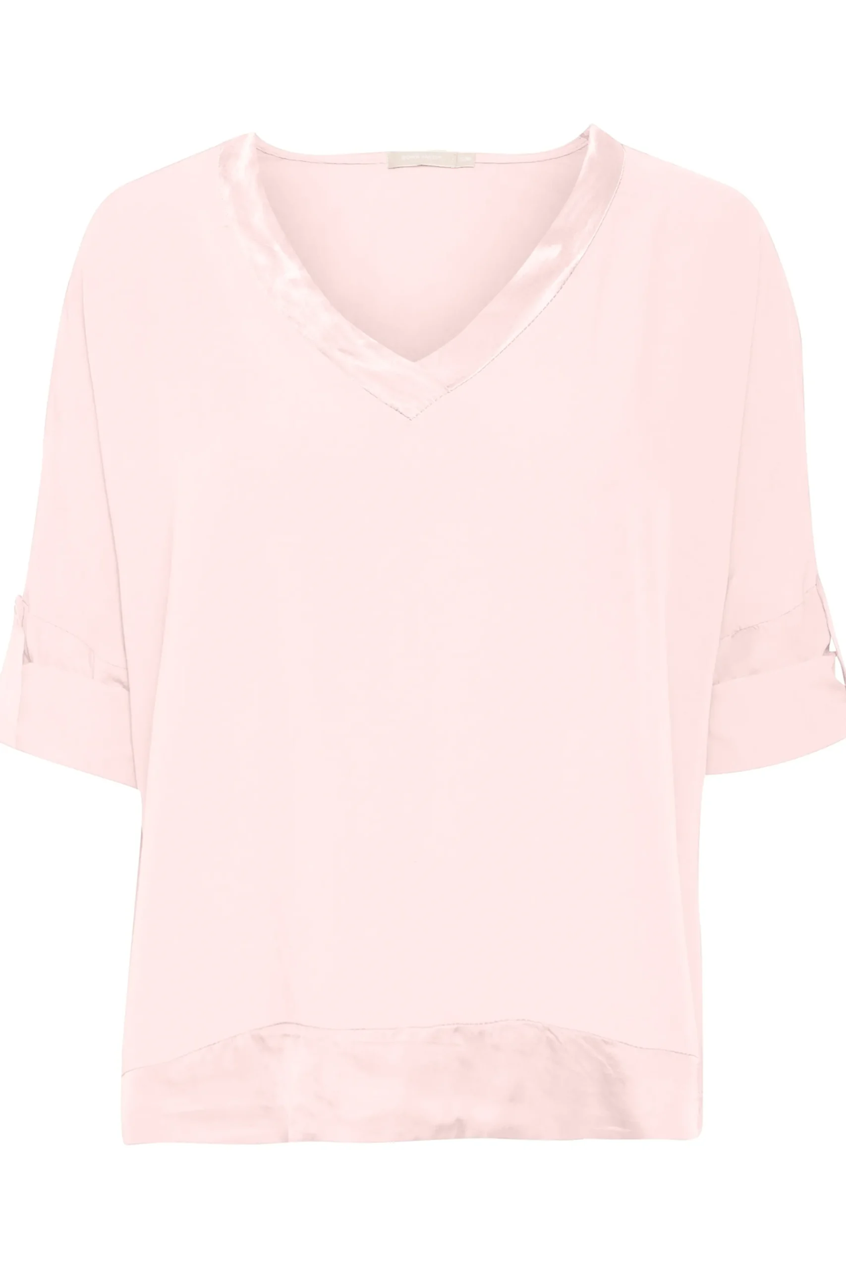 Bluse fra BON’A PARTE med V-hals. Ærmer med strop og knap for opsmøg. Vævet kvalitet. Oversize pasform.