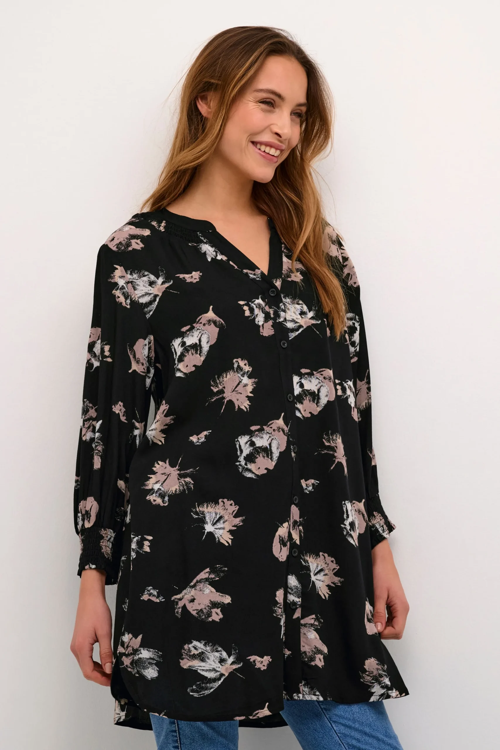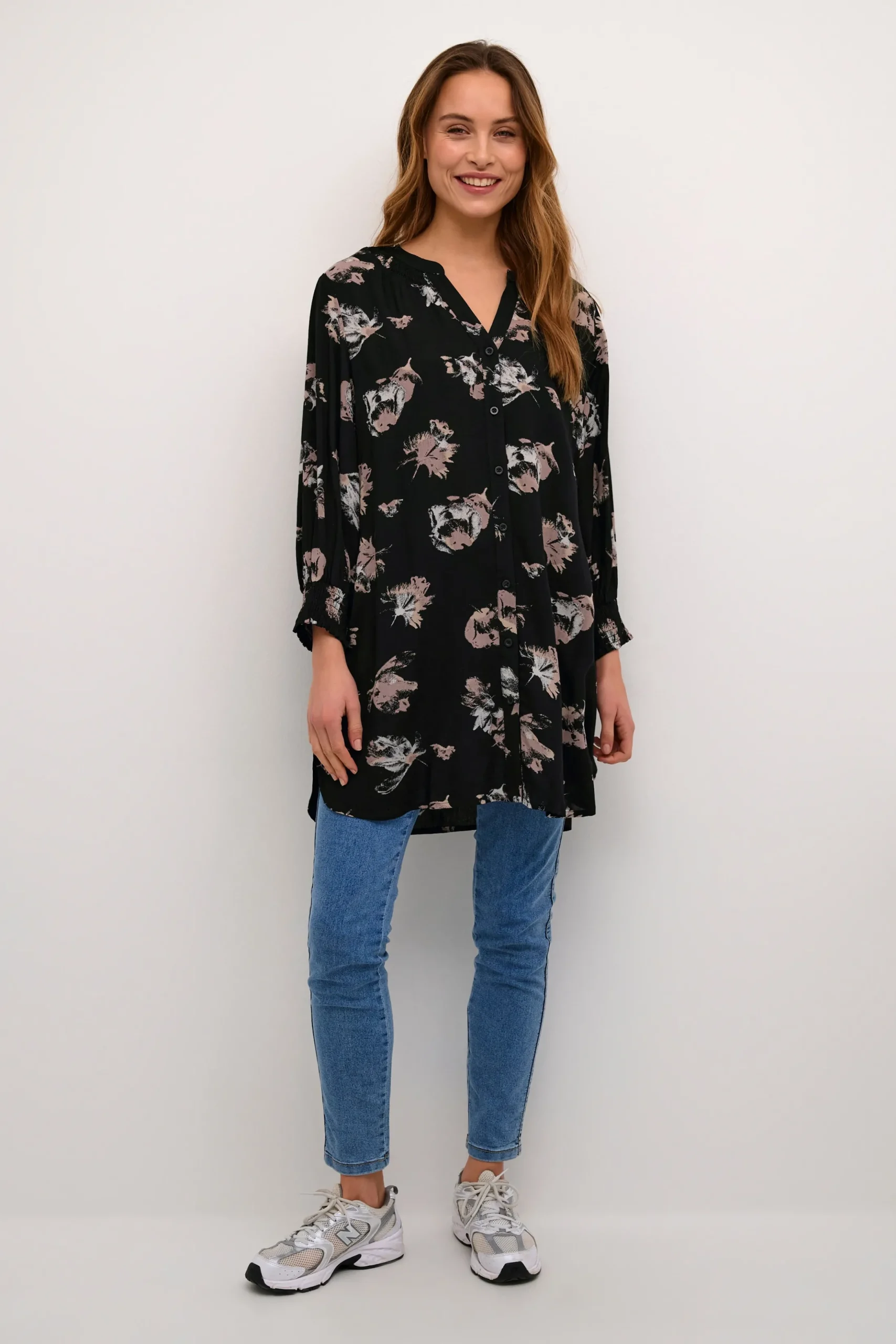 Oplev stil og elegance med denne tunika fra Bon’A Parte. Denne tunika er produceret i høj kvalitet, vævet viskose som sikrer et flatterende og komfortabelt regulært fit. Med et design der rækker til midt på låret og med 3/4 ærmer, vil du både se og føle dig fantastisk uanset lejligheden. De fine blomster detaljer tilføjer et strejf af femininitet og stil. Denne tunika kan være fantastisk at kombinere med et par stramme sorte bukser og et par høje hæle for at skabe en smart og sofistikeret stil. For et mere casual look, kan du kombinere det med dine foretrukne jeans og behagelige flade sko. Med denne Bon’A Parte tunika er mulighederne mange.
