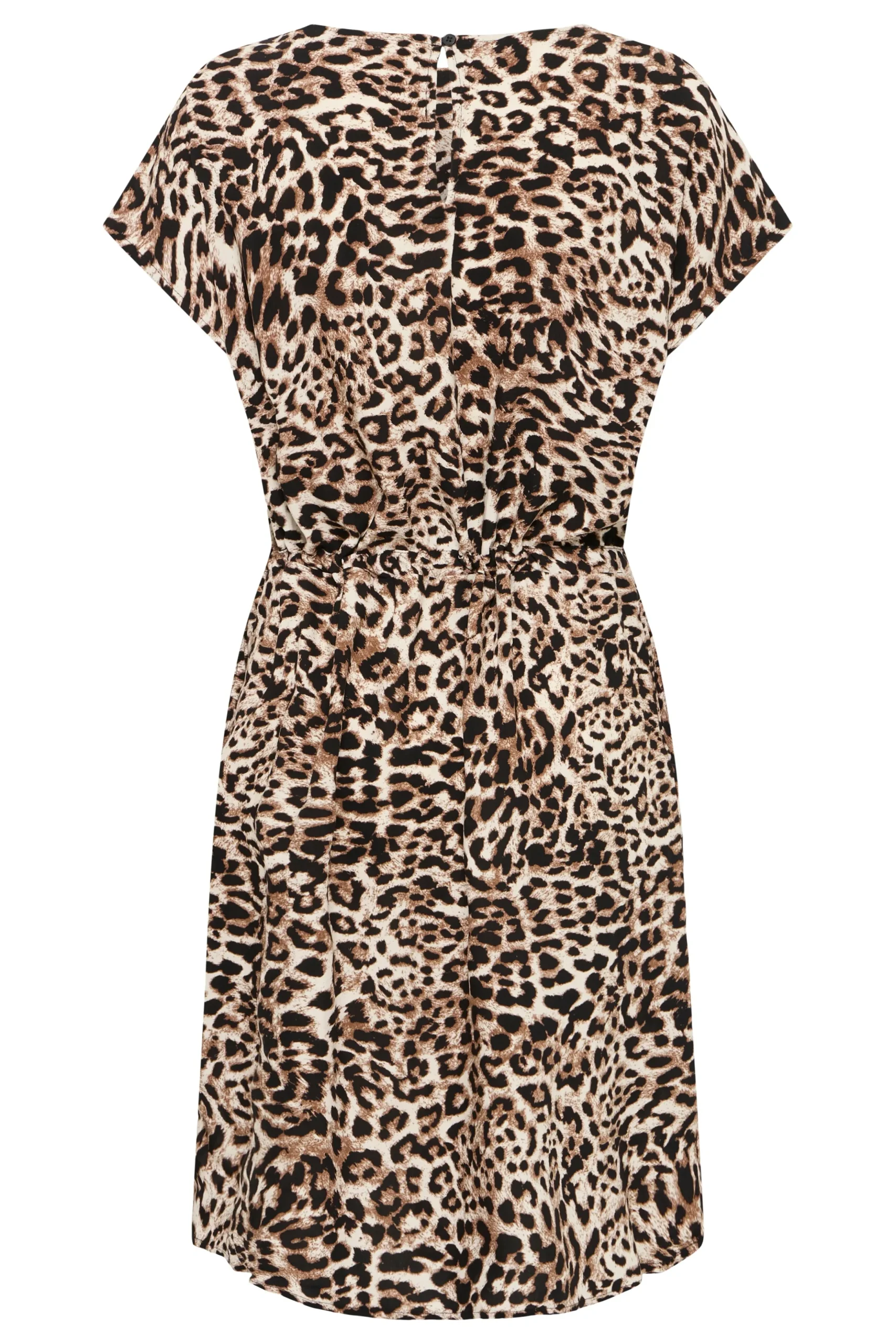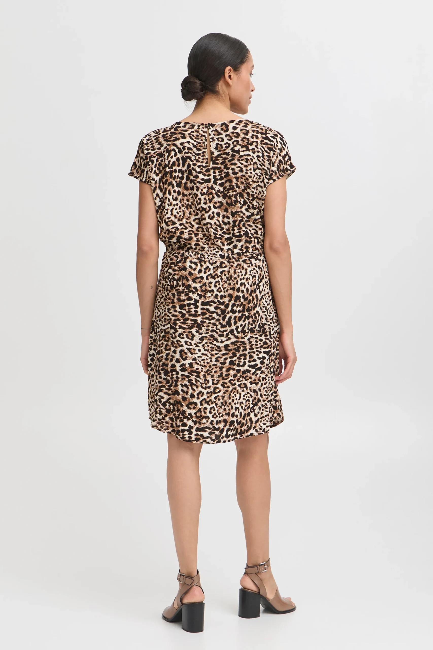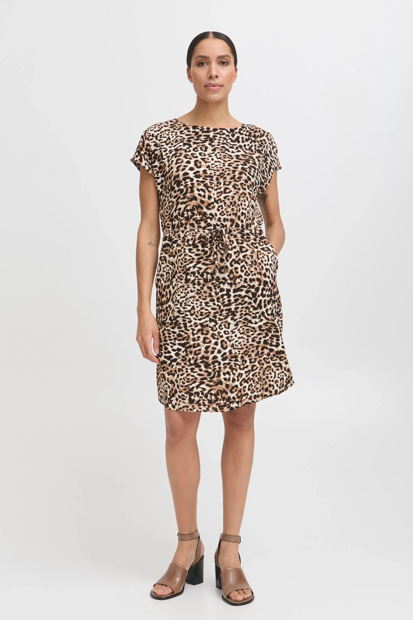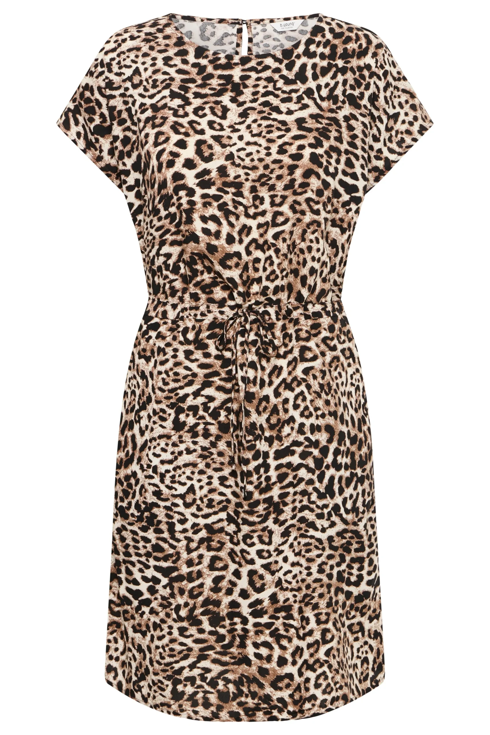Kjole fra b.young med rund hals. Korte vingeærmer. Slids i nakke med knap. Overskæring samt bindebånd i taljen. Sidelommer. Let vævet kvalitet. Kjolen fra b.young har normal pasform.