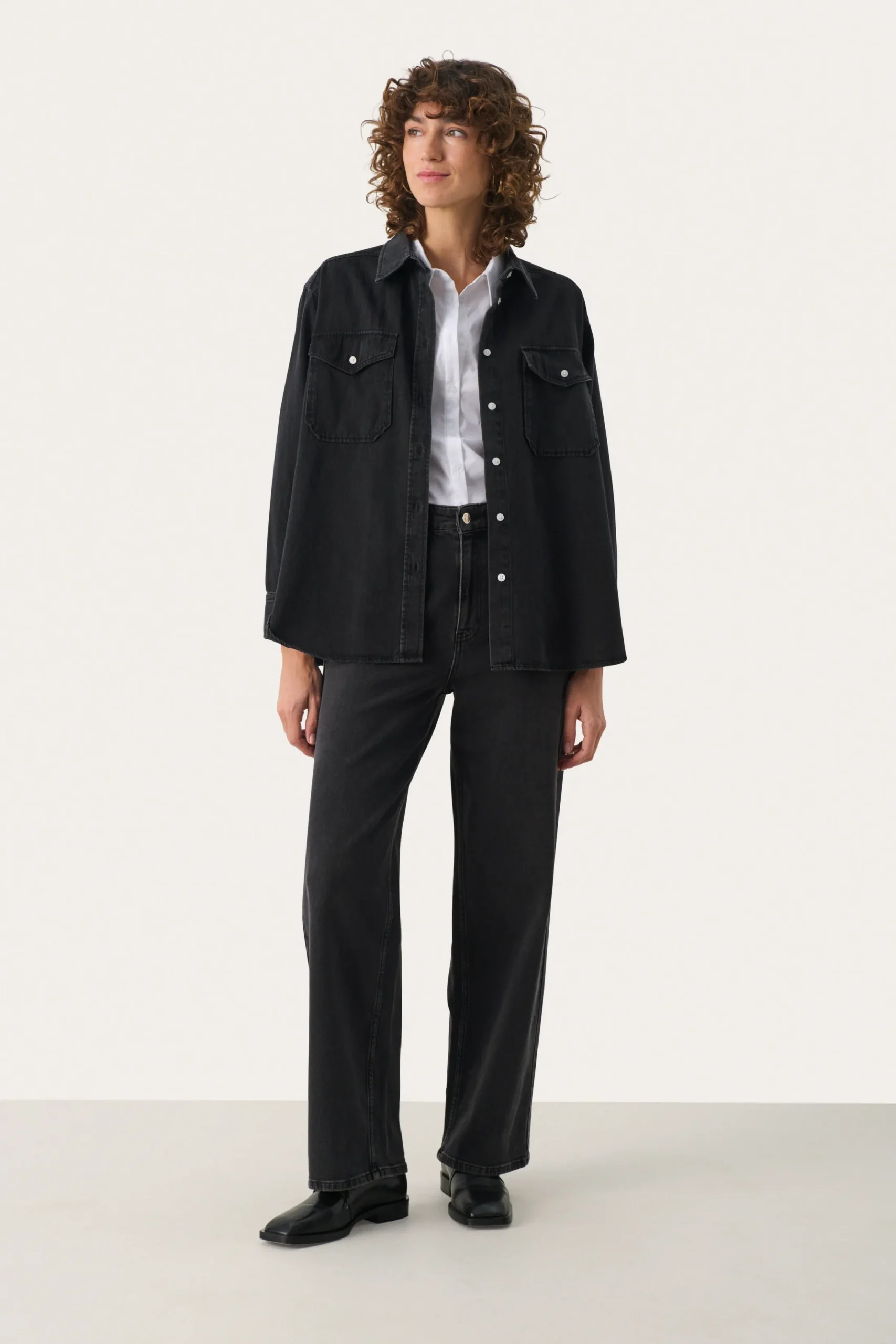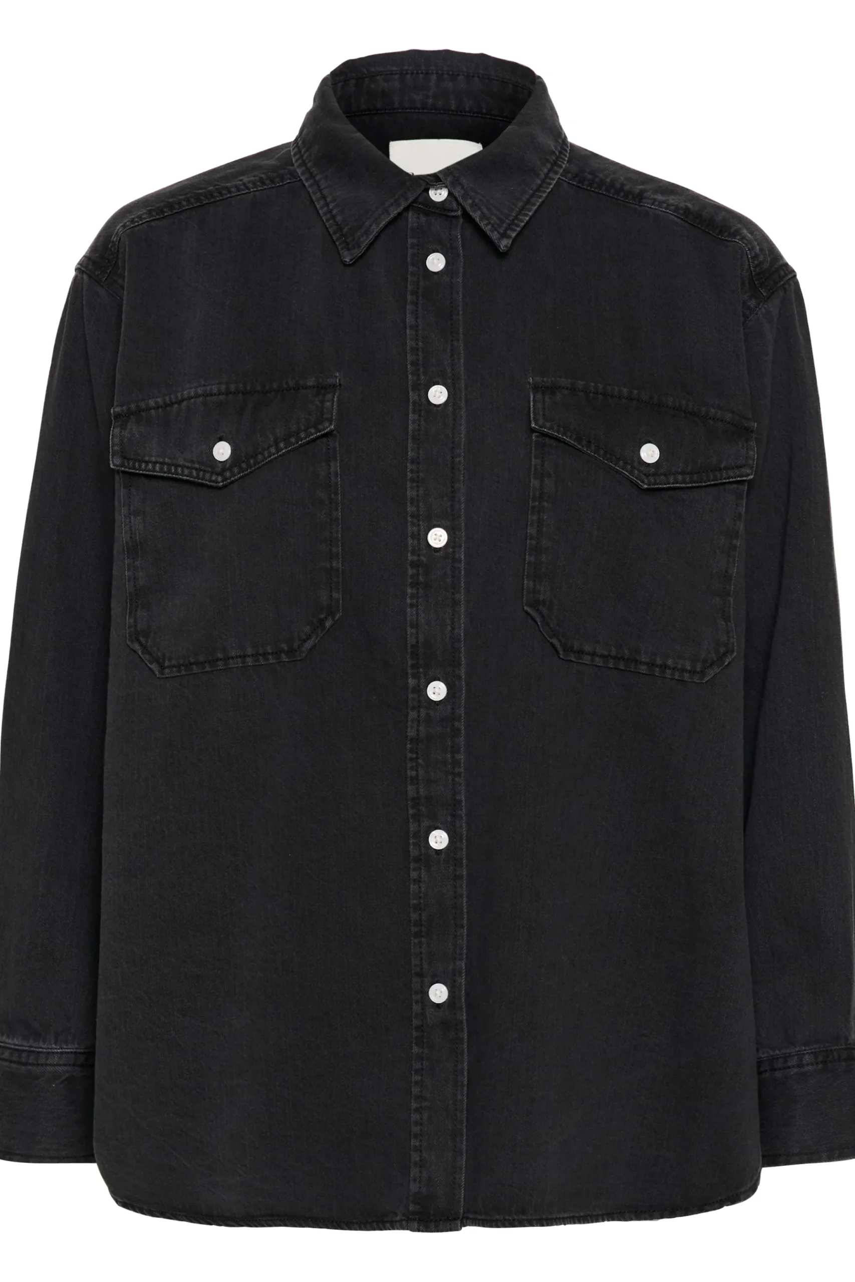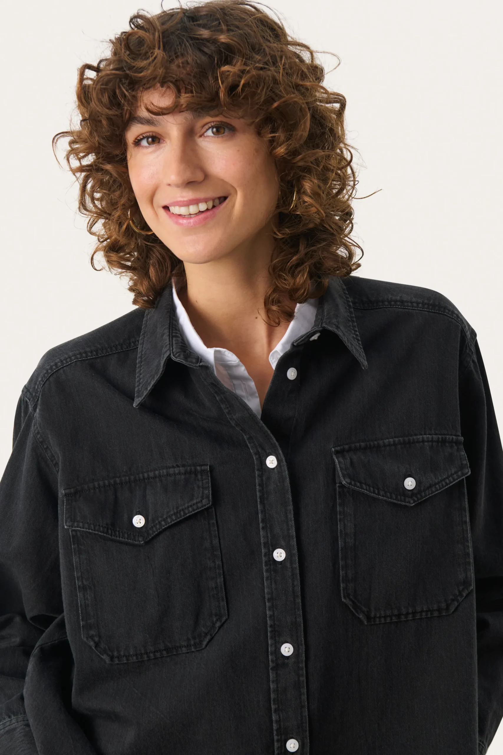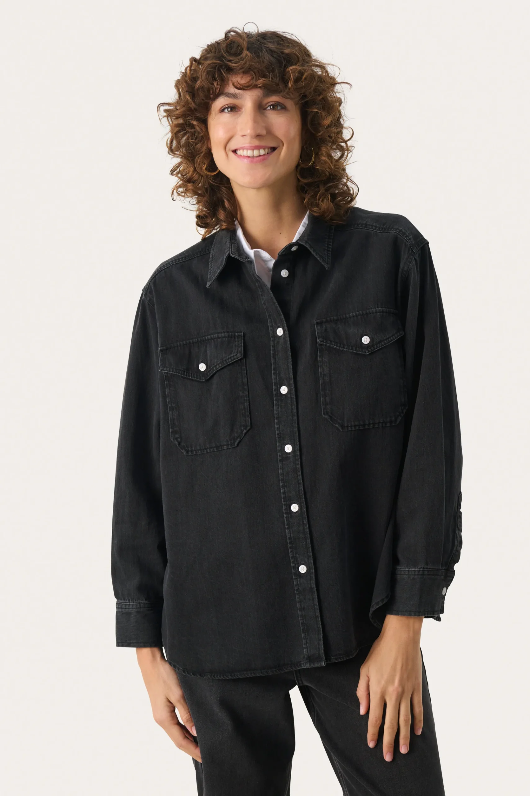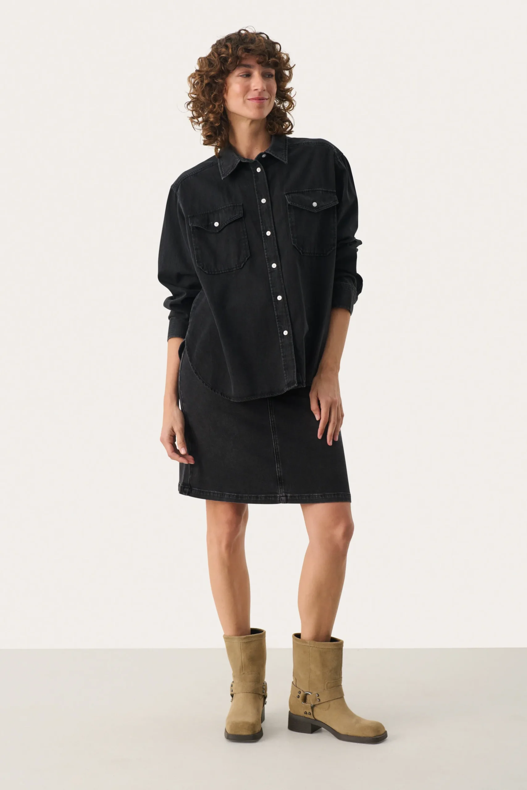 Modellen er 178 cm høj og er iført en størrelse 36.\\n\\nOpgrader din garderobe med denne alsidige denimskjorte. Med en afslappet pasform, knaplukning foran og praktiske brystlommer, er den ideel til lag-på-lag eller alene. Lavet af holdbart denim, kan den styles med en matchende nederdel eller dine yndlingsjeans for et chikt, koordineret look.