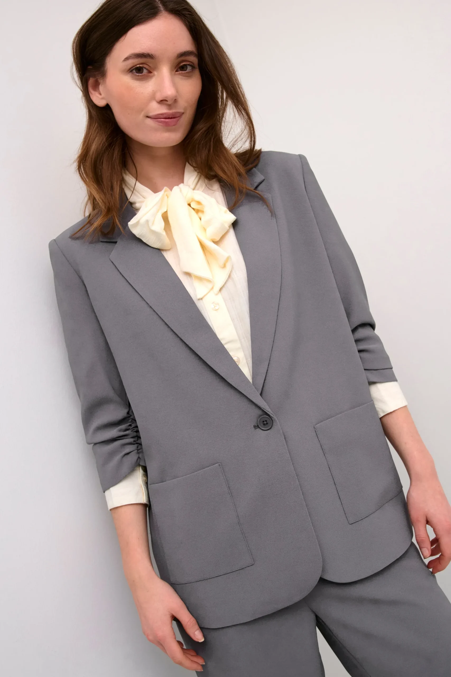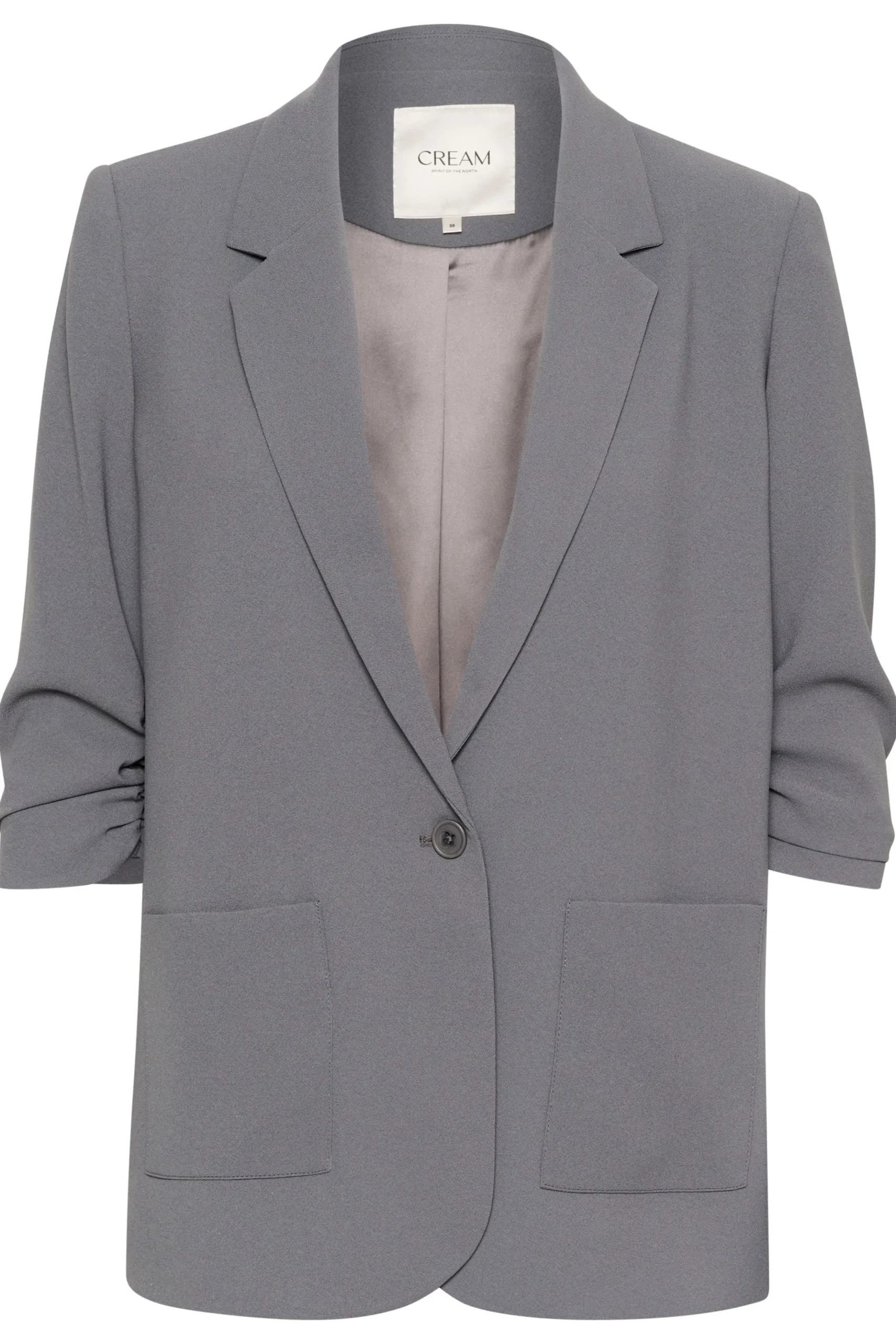 Denne blazer fra Cream skiller sig ud med sin flotte kvalitet og feminine design. Med hip længde og 3/4 ærmer, er denne stil både praktisk og flot. Bær den over en kjole for en aften ud, eller par den med jeans for en mere afslappet look. Enkel, men stilfuld, det er et tidløst stykke til enhver kvindes garderobe.
