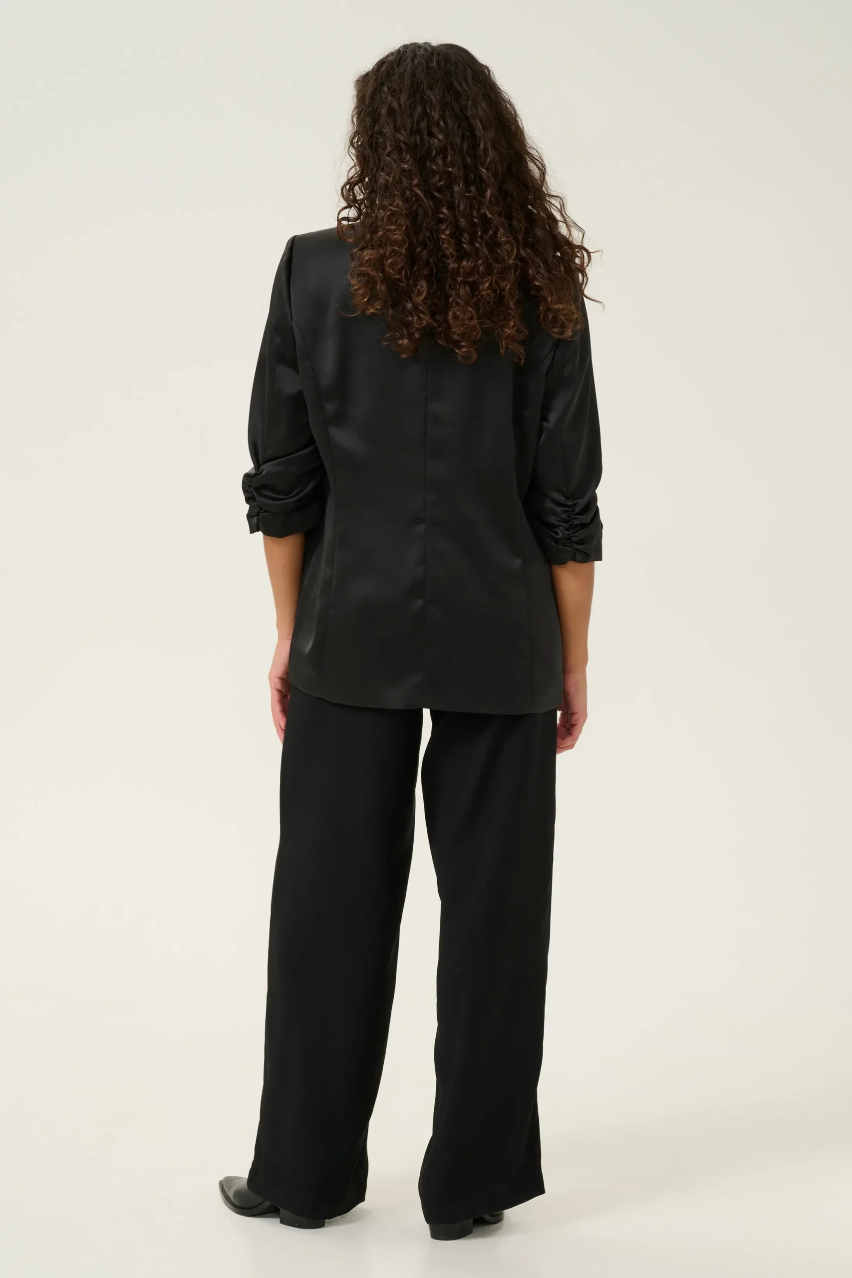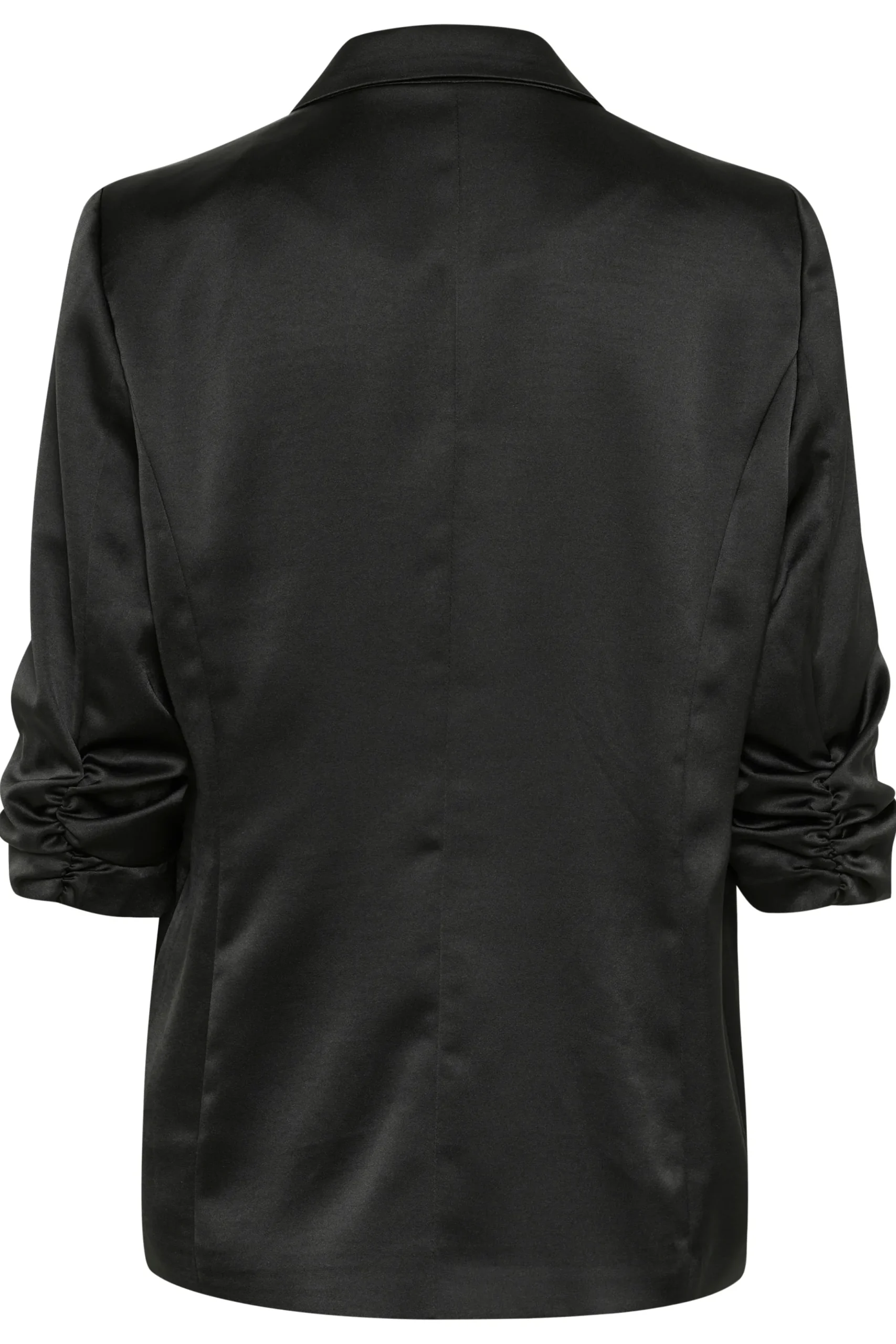 Denne blazer er vævet i høj kvalitet og har et feminint snit, der falder til hoften. Den har trekvart ærmer og er perfekt til enhver lejlighed. Blazeren er lavet af 100% polyester, hvilket giver den holdbarhed og komfort. Denne blazer kan med fordel matches med en skjorte og et par jeans for et afslappet, men stilfuldt look. Til en mere formel anledning kan den styles med en buksedragt og høje hæle for et sofistikeret udtryk.
