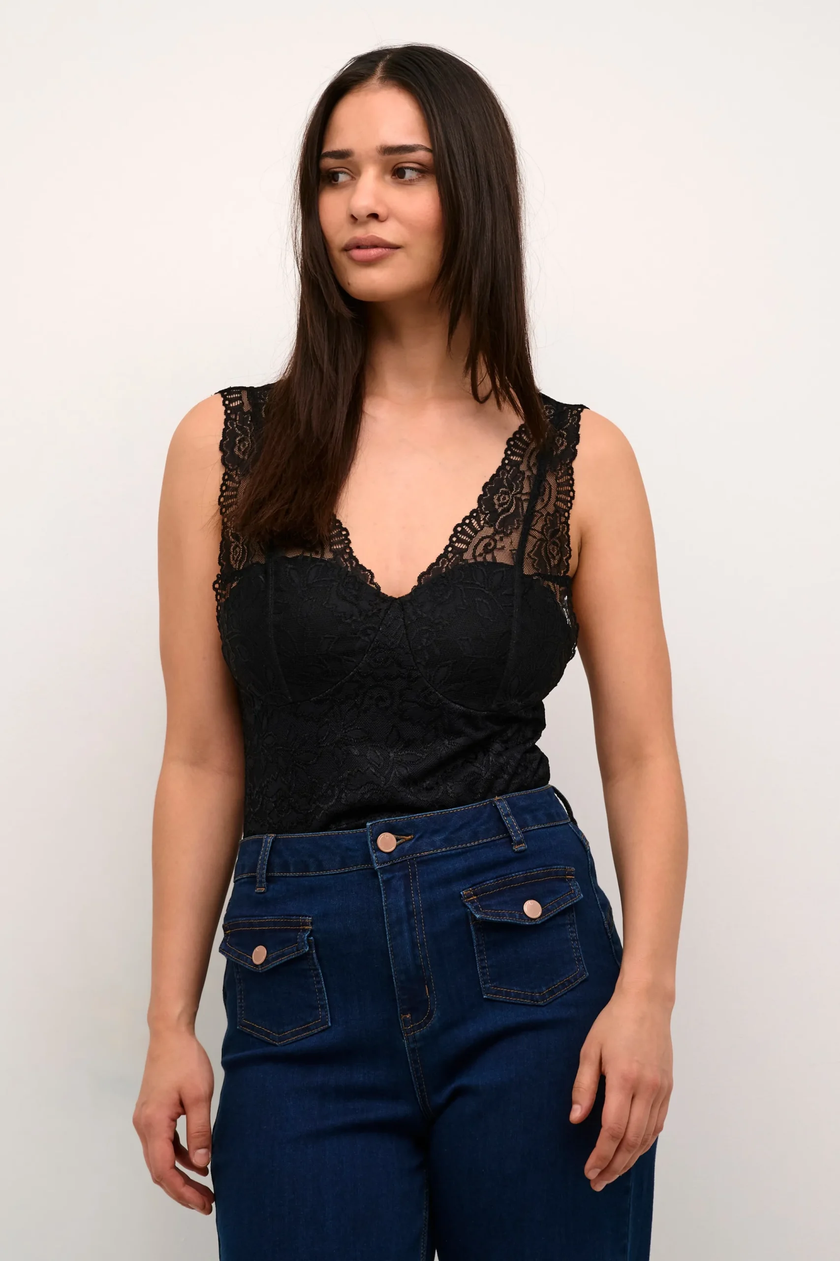 Denne jersey top er fremstillet i en lækker strikket kvalitet. Med et tætsiddende design, hofte længde og uden ærmer, bliver toppen en stilfuld og funktionel del af garderoben. \\n\\nModellen er 181 cm høj og er iført en størrelse 38.