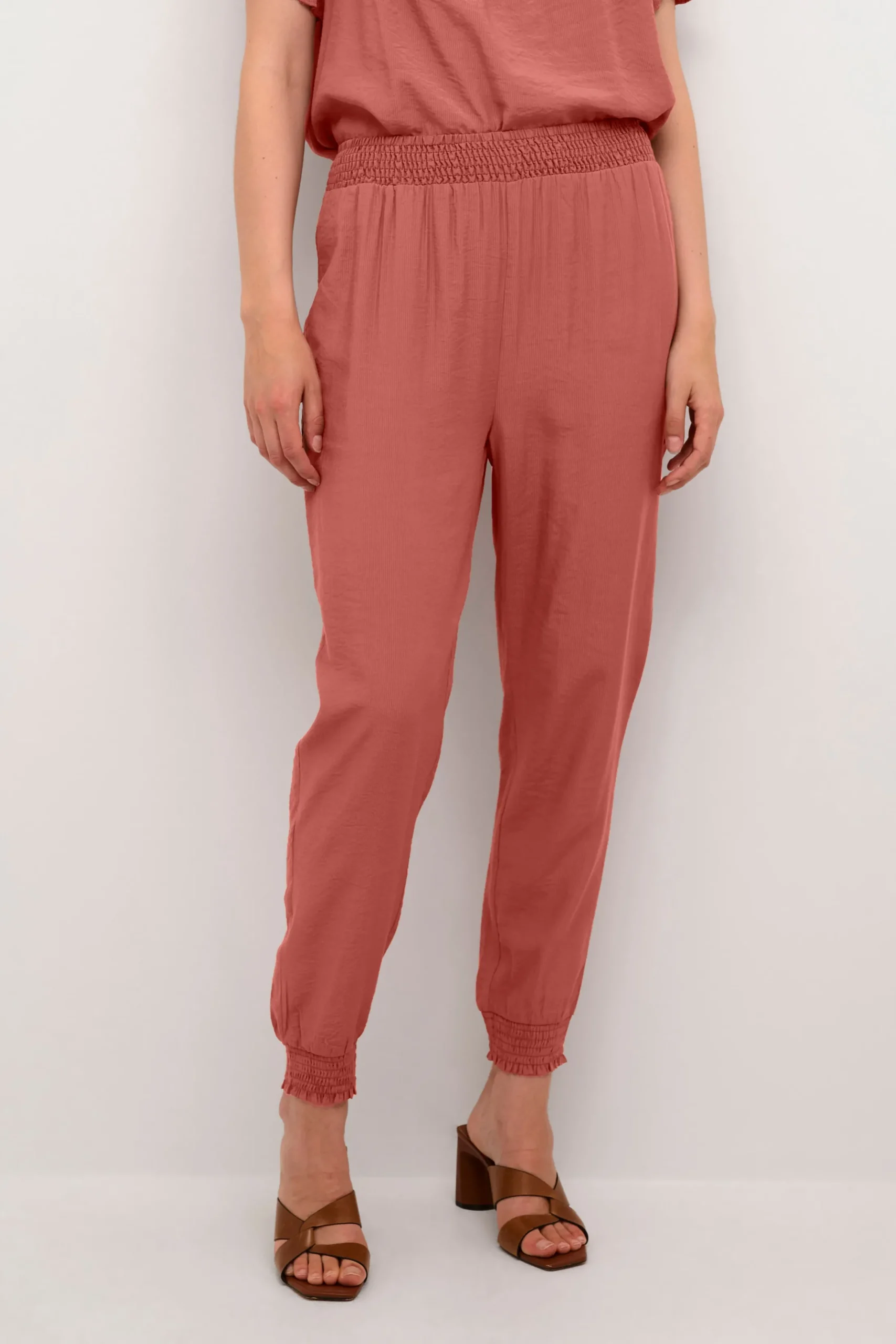 Disse afslappede bukser er i en løs pasform, med elastisk talje og ankellængde. Lavet i en vævet kvalitet, de er behagelige og stilfulde. Kan styles med en enkel sort top og flade sko.