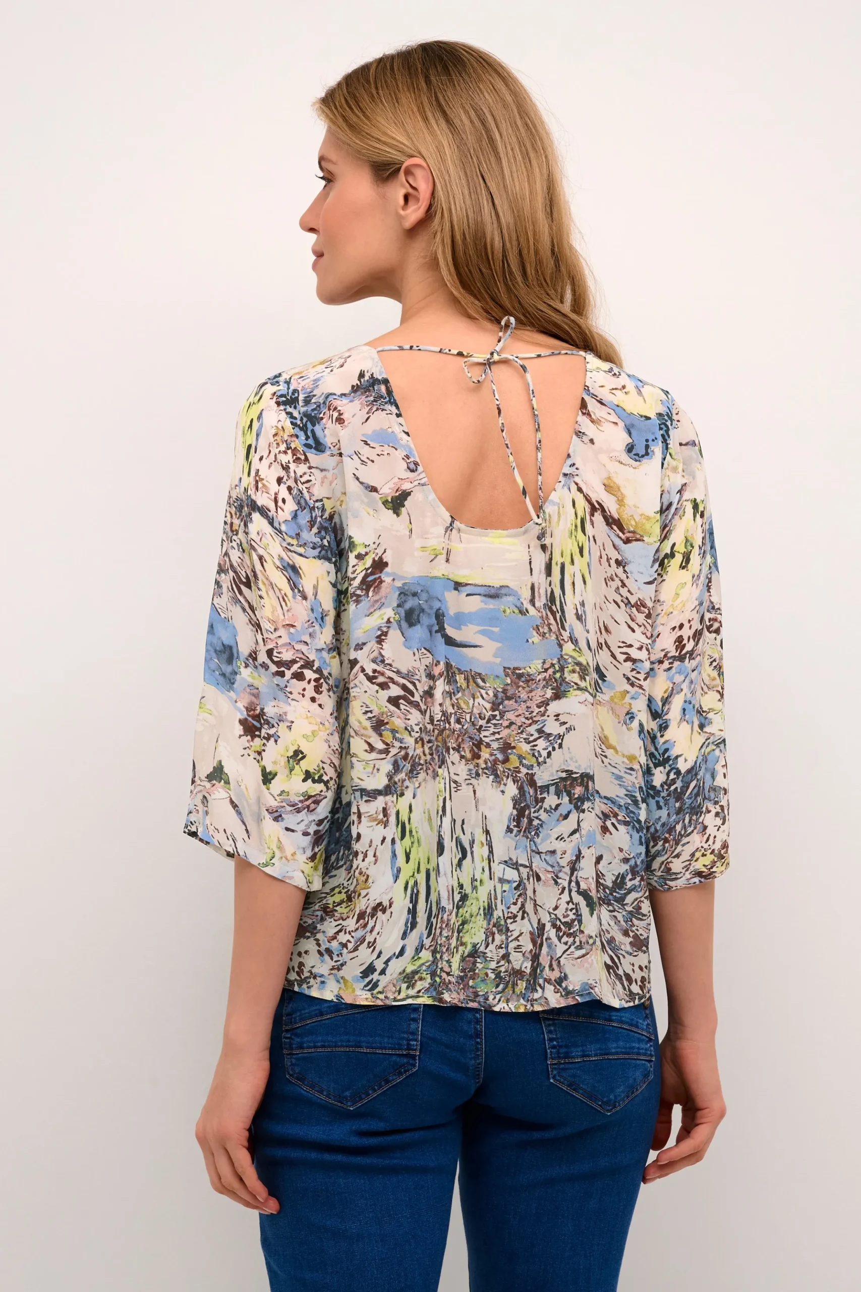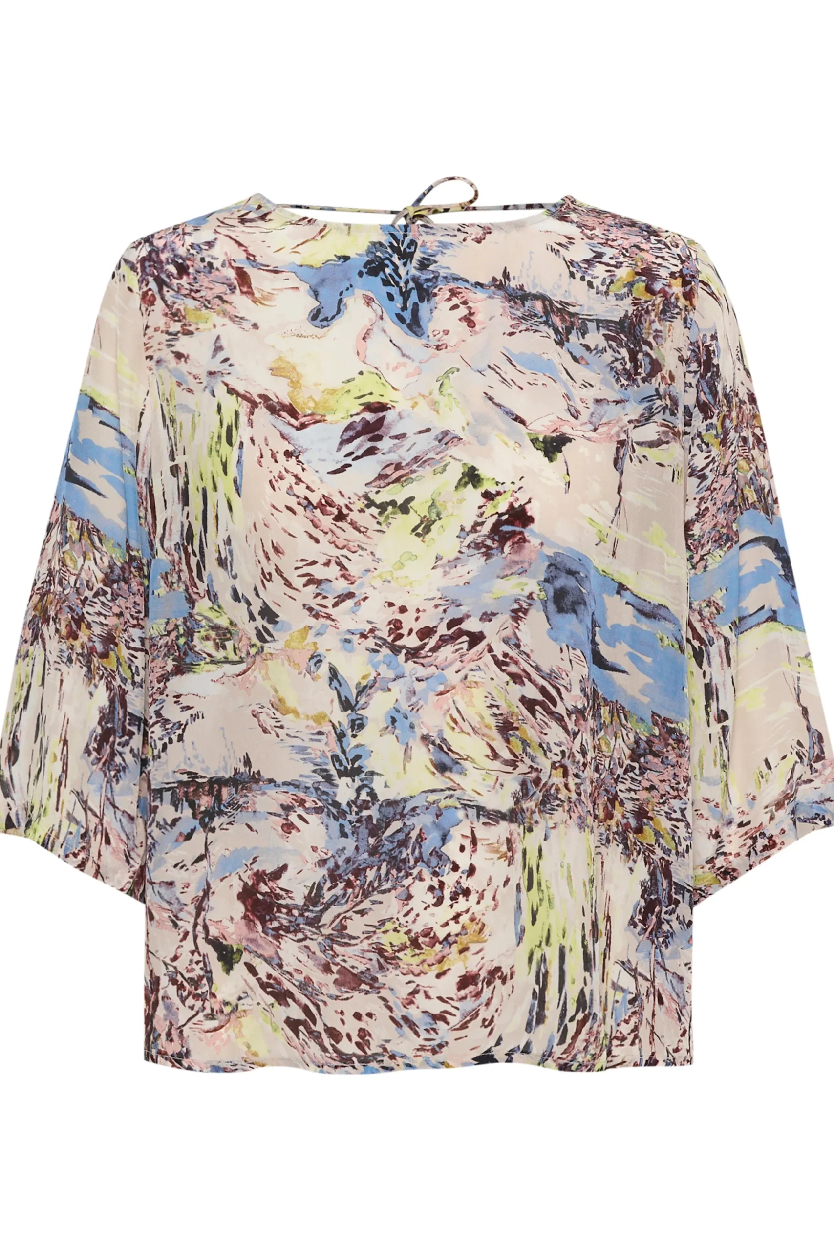 Denne bluse er karakteriseret ved et lige snit og hofte længde. Dens korte 3/4 ærmer og vævede kvalitet giver et stilfuldt samt praktisk valg for hverdagsbeklædning. Fremstillet af 100% viskose, sikrer en let og flydende pasform.\\n\\nModellen er 177 cm høj og er iført en størrelse 36.