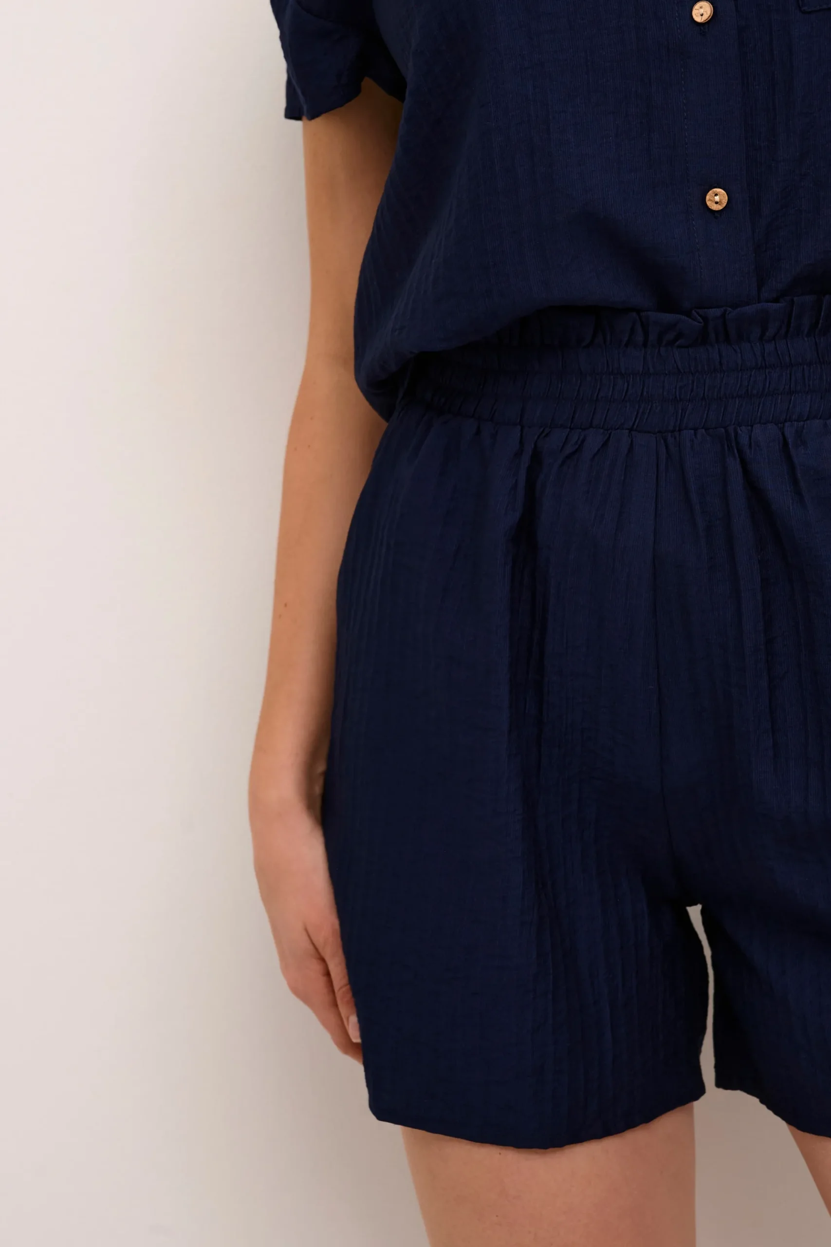 Disse afslappede shorts har elastisk talje. De er kortere end knælængde. De vil passe perfekt med en let sommerbluse eller en skjorte.\\n\\nModellen er 177 cm høj og er iført en størrelse 38/M.