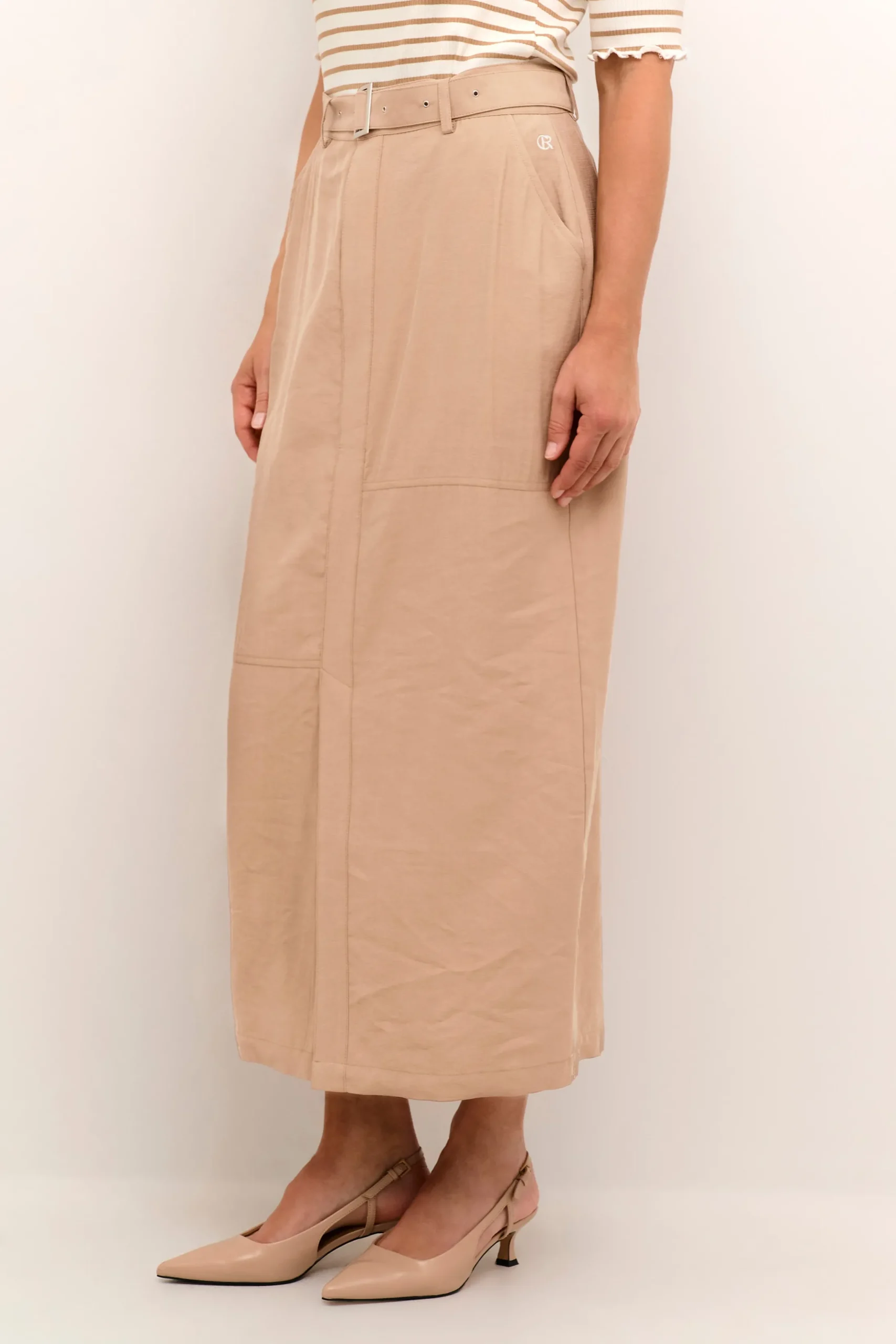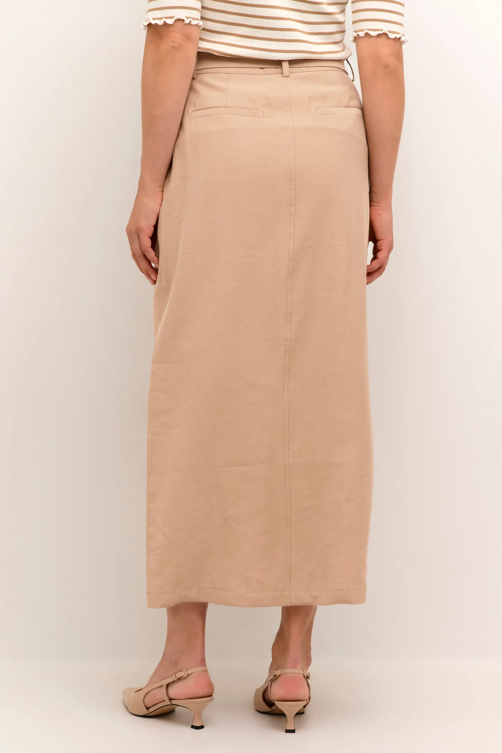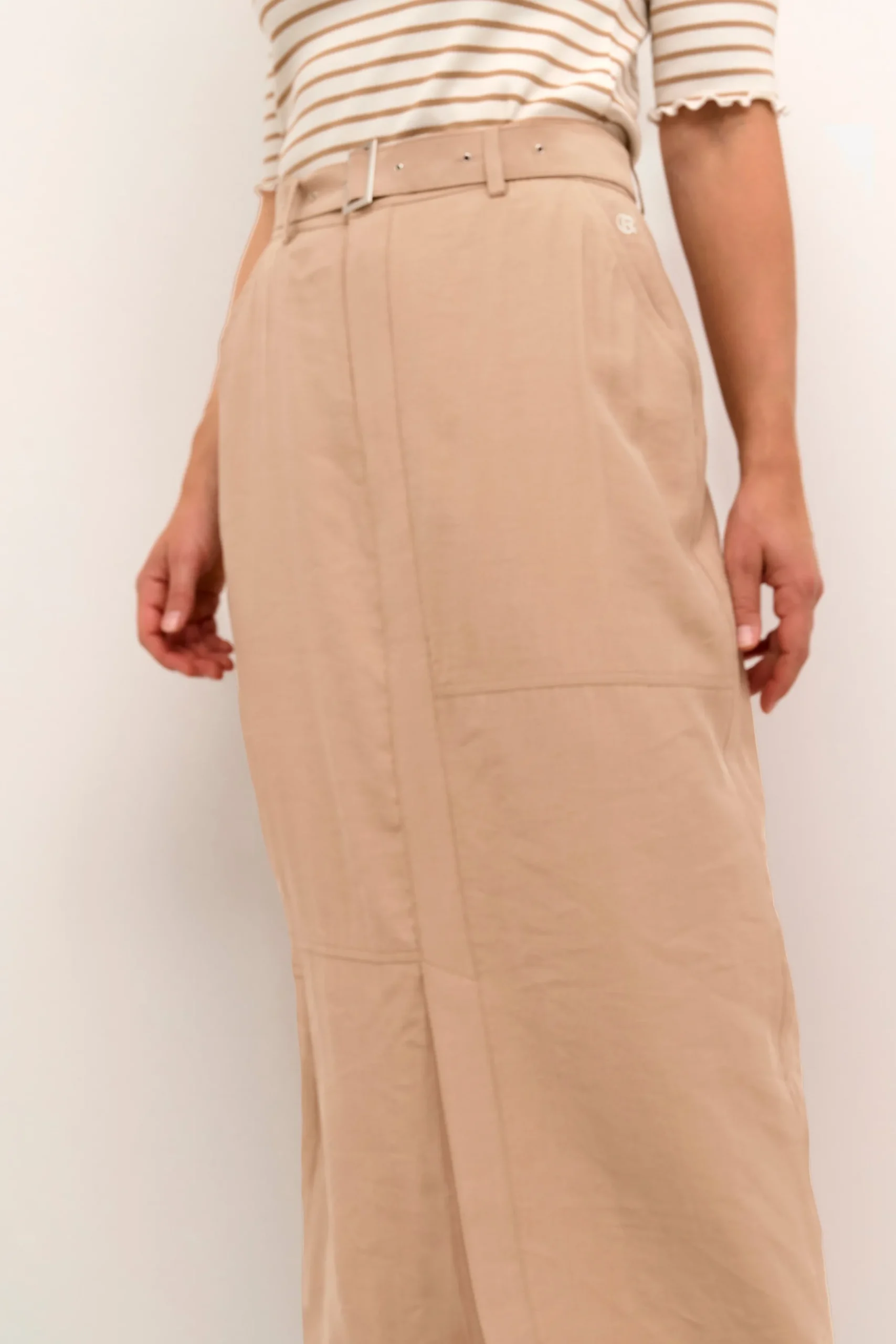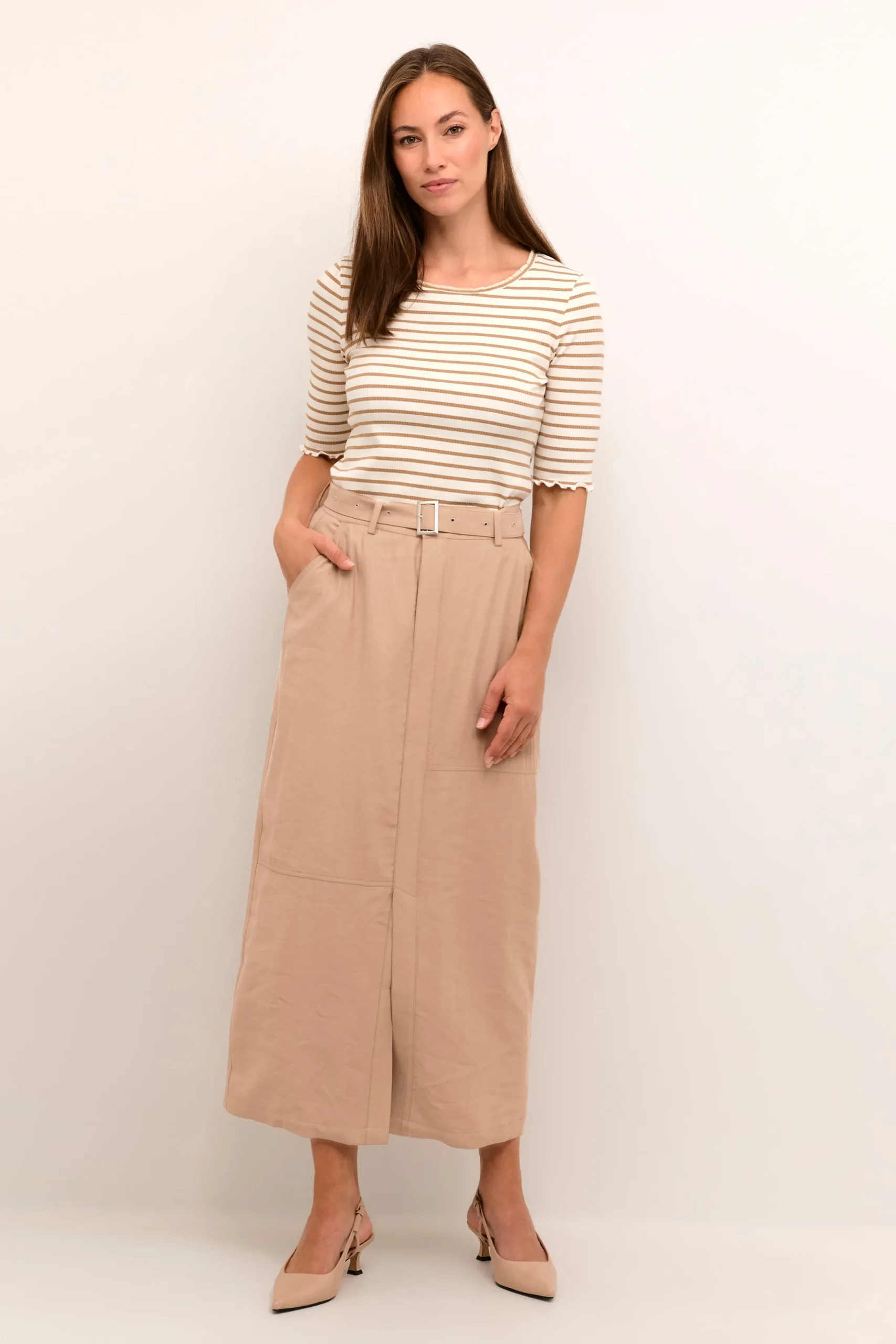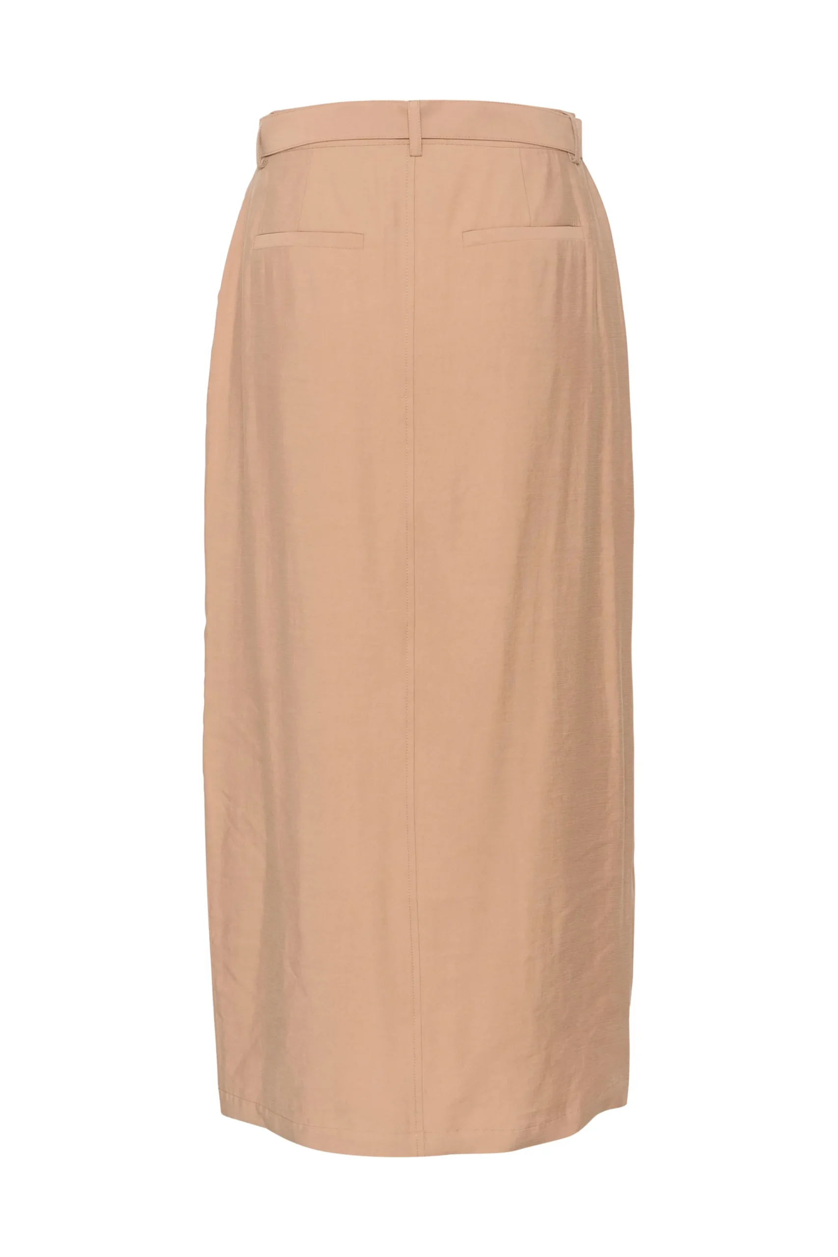 Denne nederdel er et must-have i enhver garderobe. Det vævede design, den høje talje og den regulære pasform gør denne 7/8 længde nederdel både trendy og behagelig at have på. Kan styles med en hvid skjorte eller en let strik.
