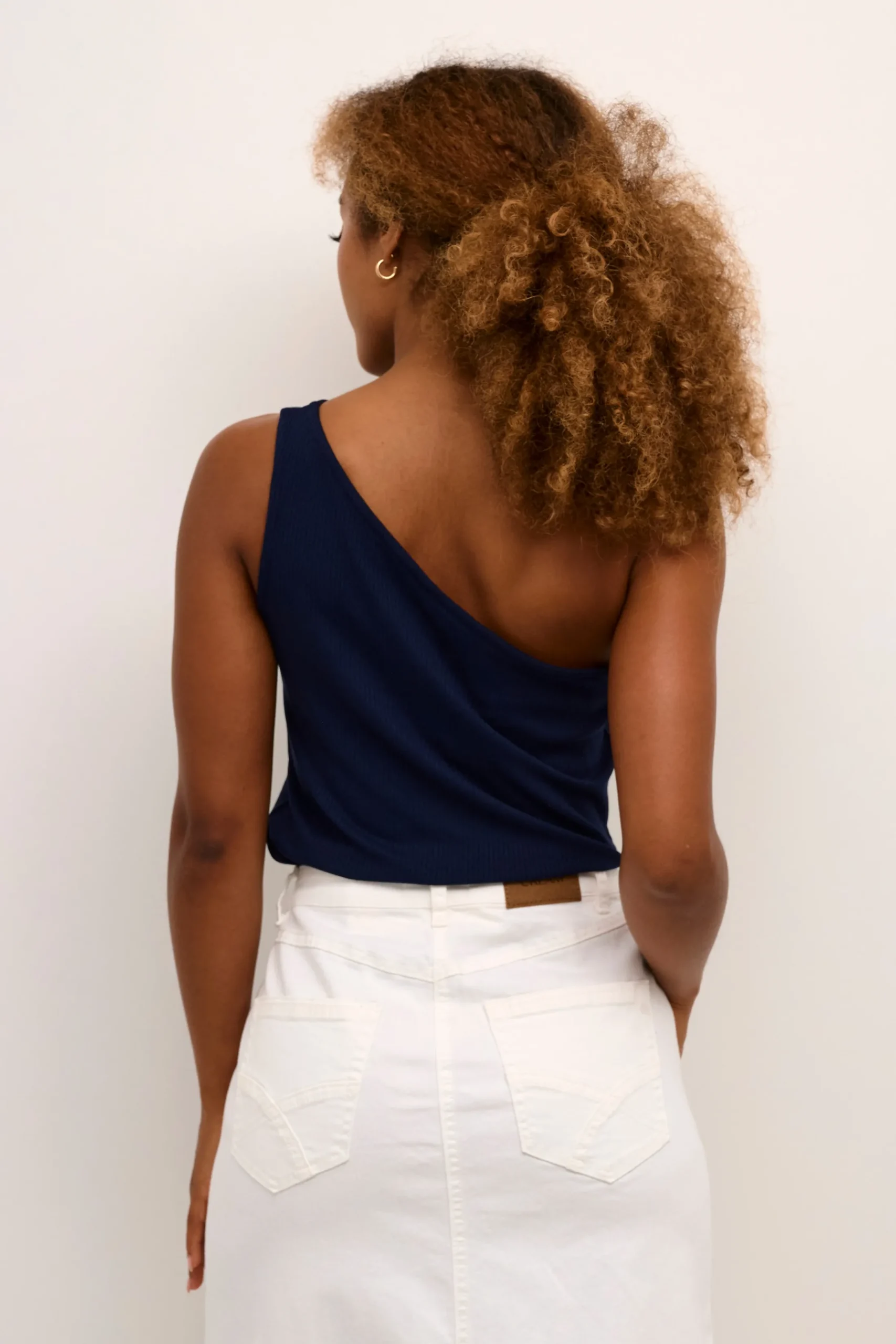 Denne slanke, hofte lange jersey top er perfekt til lag-på-lag outfits. Uden ærmer og i en smuk strikket kvalitet, er det en must-have til hverdagsbrug. Style den med en blazer og jeans til et trendy look.\\n\\nModellen er 173 cm høj og er iført en størrelse 38/M.\\n
