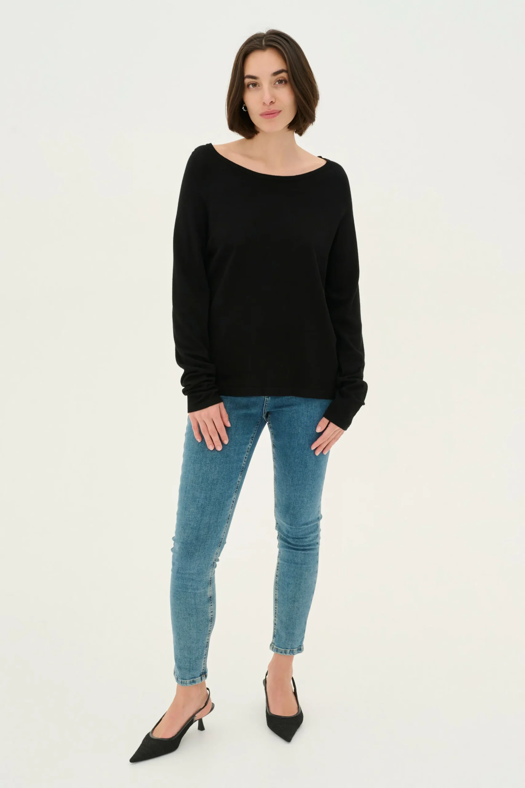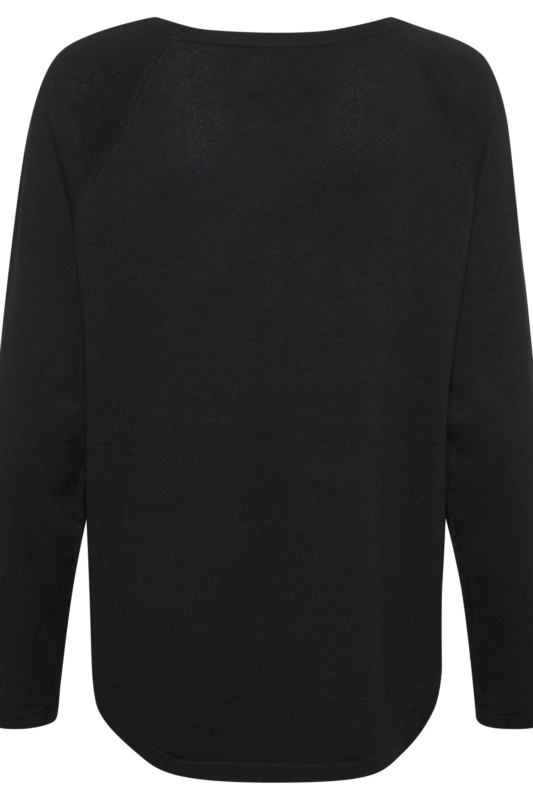Strikbluse fra CULTURE med rund hals. Lange ærmer. Afrundet bagtil. Længere bagpå end foran. Løstsiddende pasform.