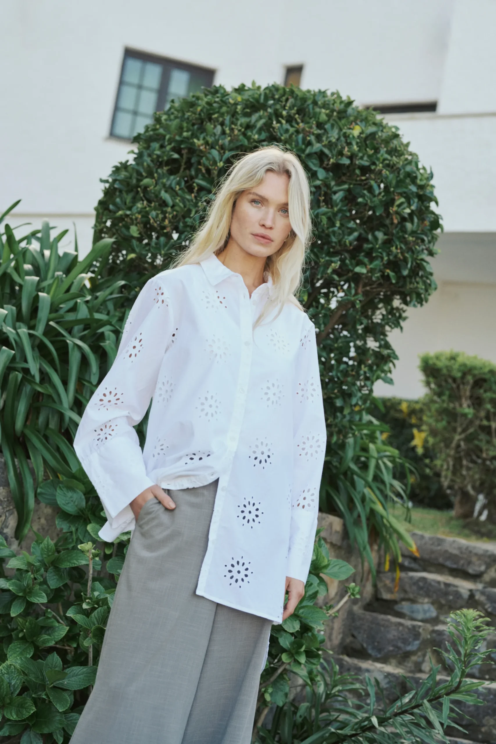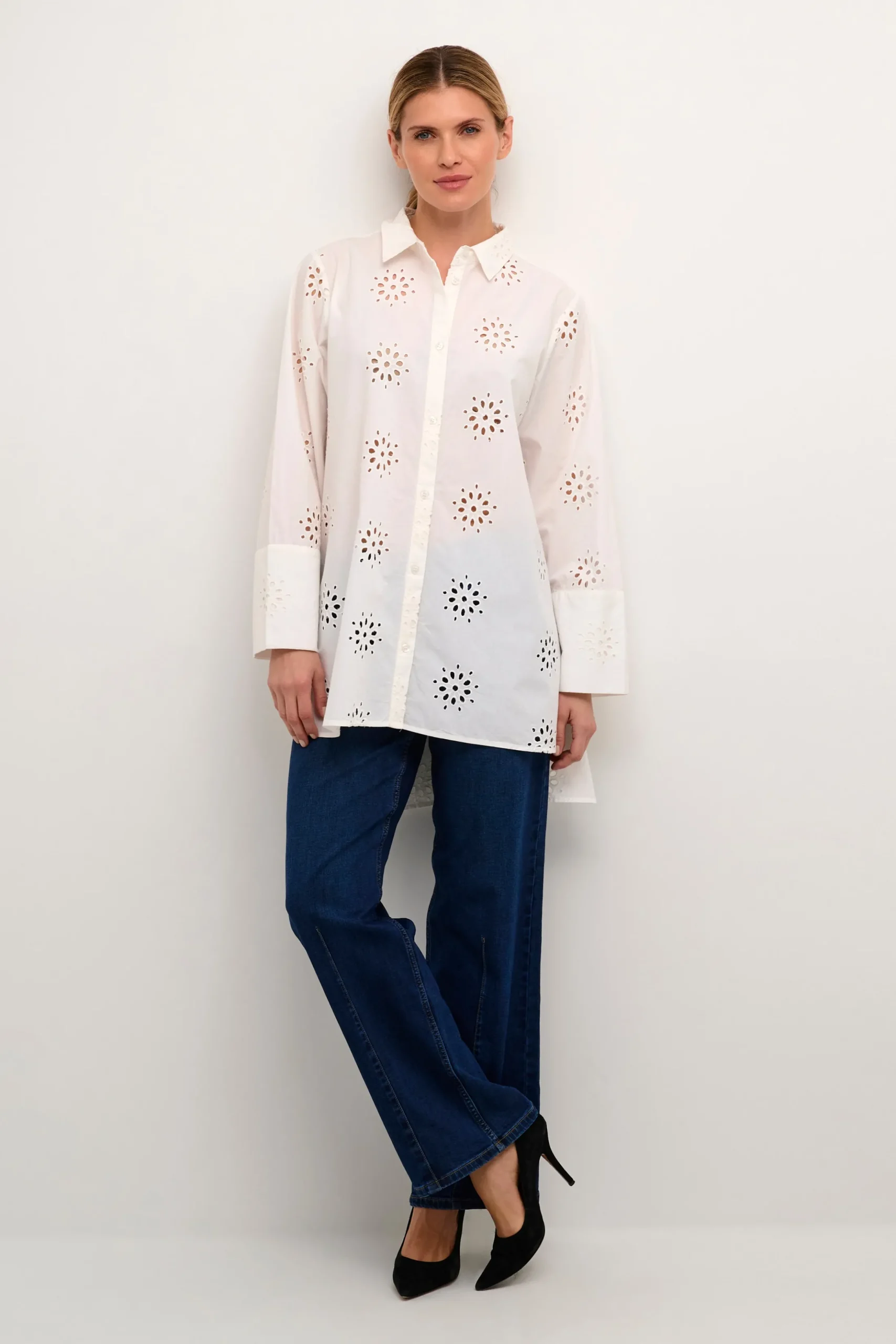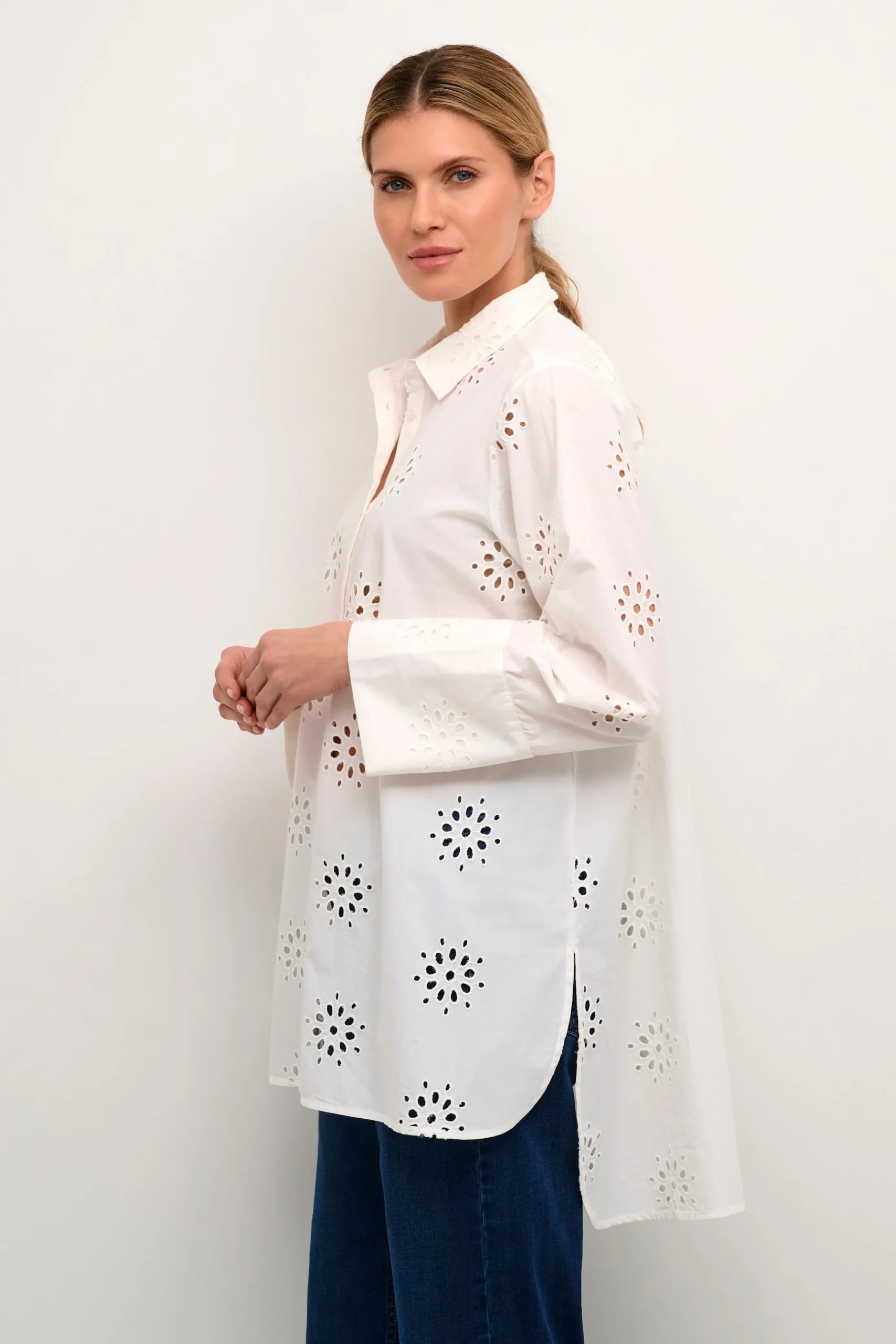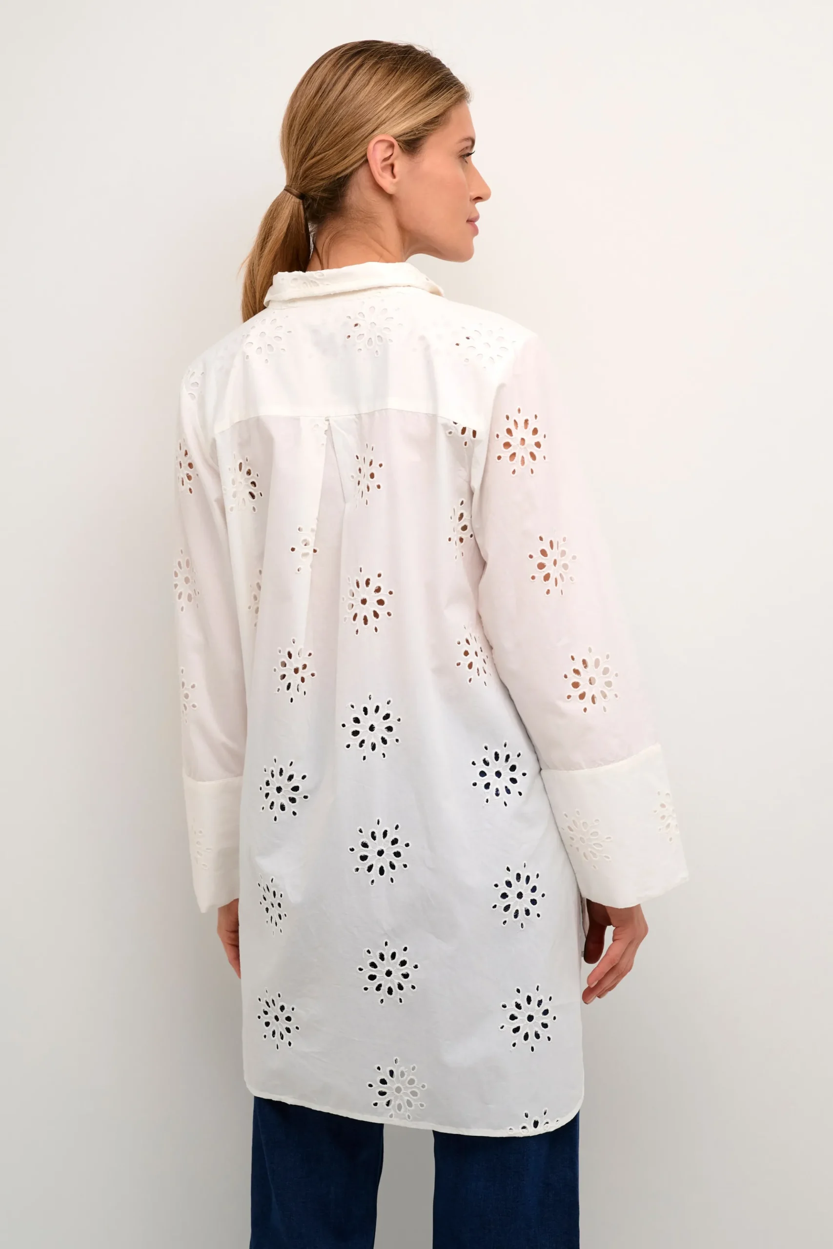 Denne skjorte er løstsiddende og når til midt på låret, hvilket gør den både stilet og praktisk. Skjorten er fremstillet af 100% bomuld.