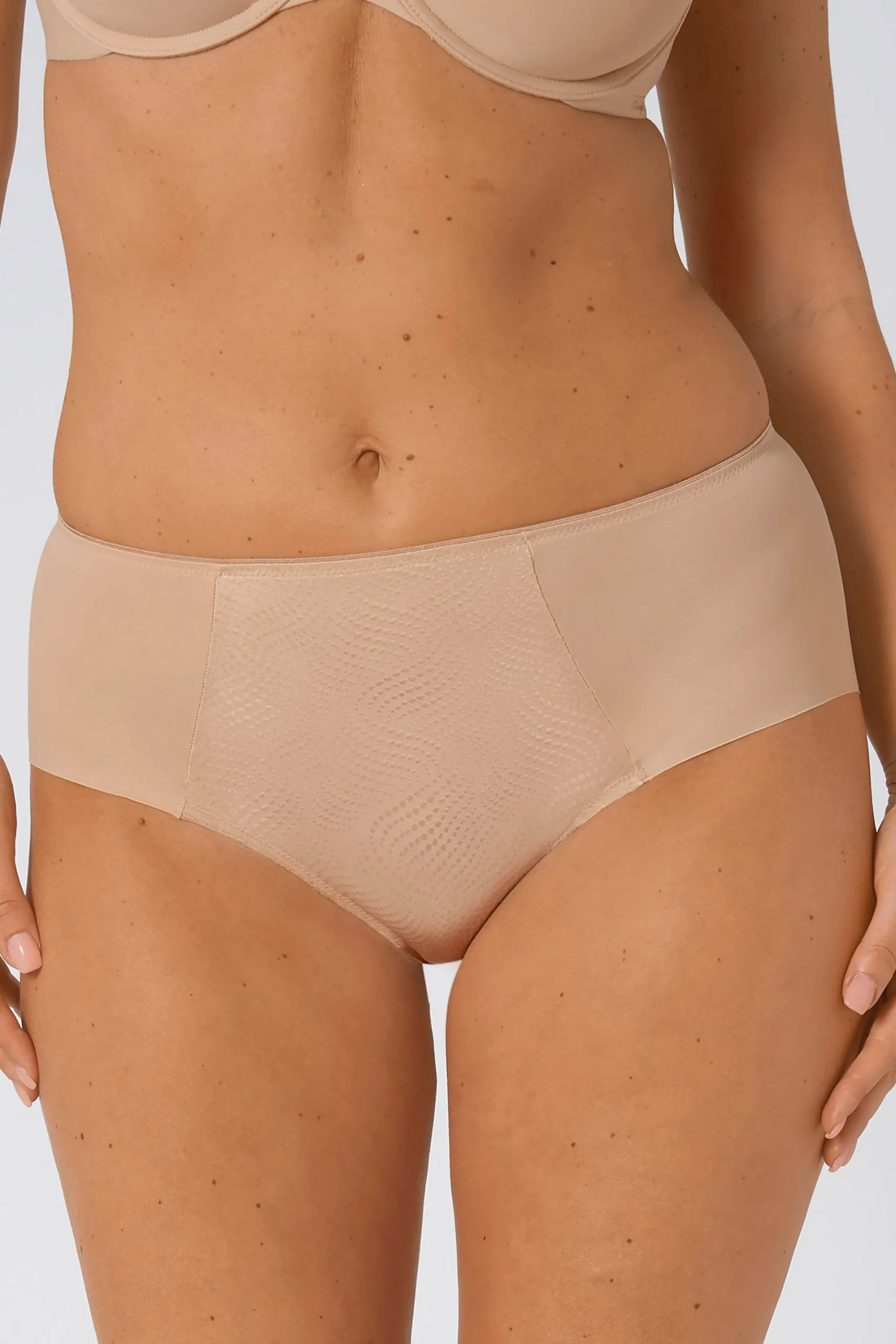 Hipster trusser fra Triumph. Trussen har sømløse kanter og jaquardmønster foran. Brede sider. Lavtaljede. Den bløde mikrofiberkvalitet og Lycra¸ gør trussen behagelig at have på.