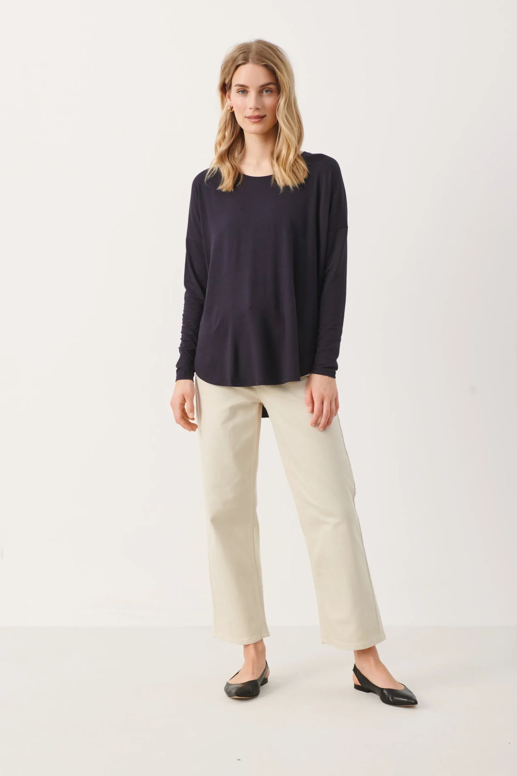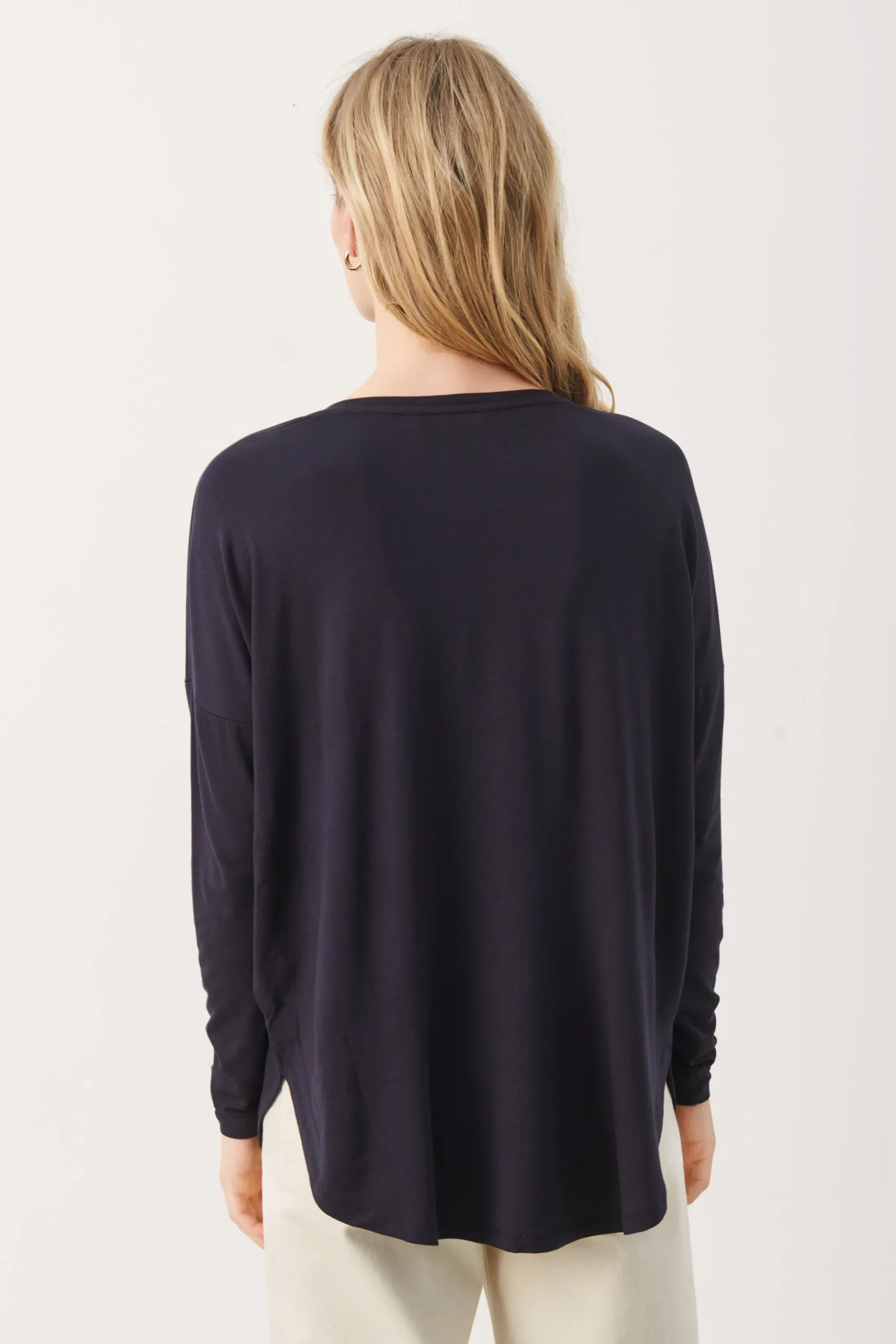 Opdag komfort og stil på en ny måde med denne lækre langærmet T-shirt fra Part Two. Med sit afslappede, løse fit er denne skjorte skøn at have på og ideel til en casual hverdagsstil. Den strikkede kvalitet og de lange ærmer sørger for god varme og komfort på køligere dage. T-shirtens naturlige og åndbare materialer gør det til et oplagt valg, hvis du søger stil uden at gå på kompromis med komfort. Denne T-shirt ville passe perfekt sammen med et par slim fit jeans og et par smarte sneakers for at opnå en afslappet, men stadig stilfuld udseende.