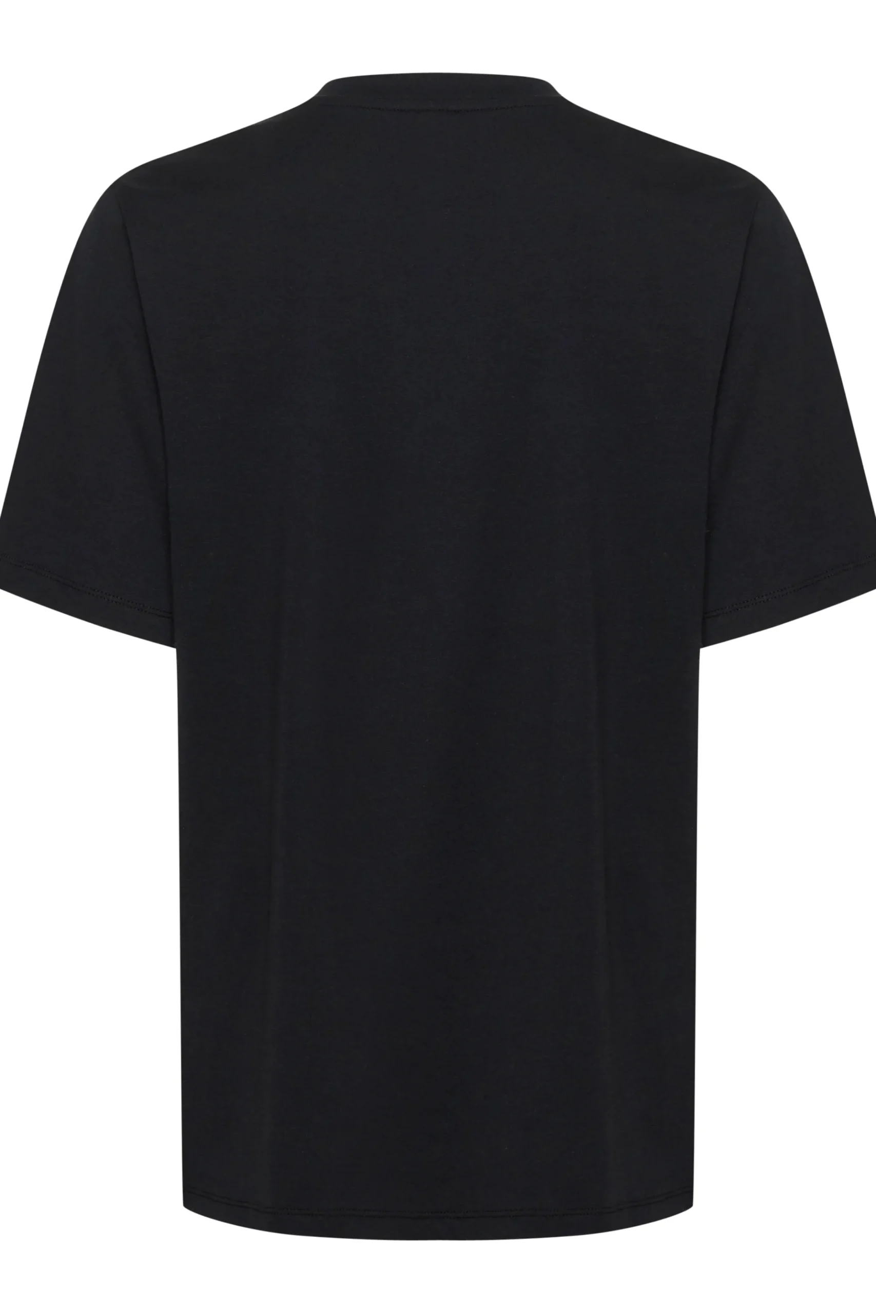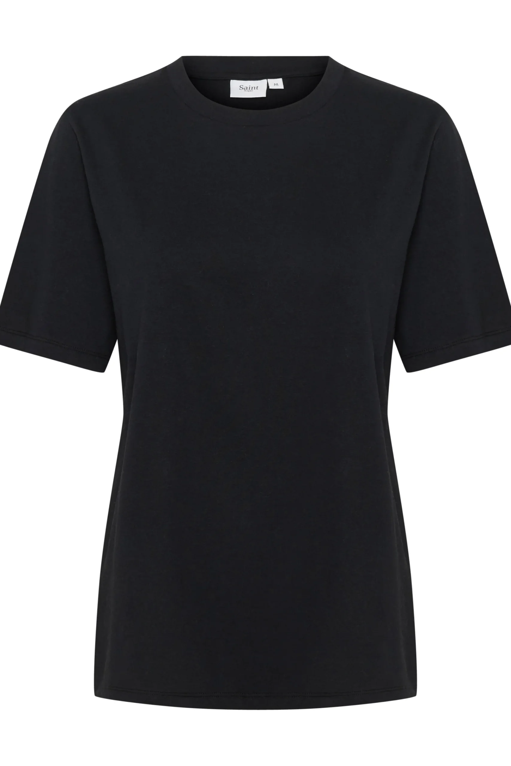Sort tidløs t-shirt med rundhals, korte ærmer samt i afslappet pasform. \\n\\nModellen er 176 cm høj og iført størrelse M