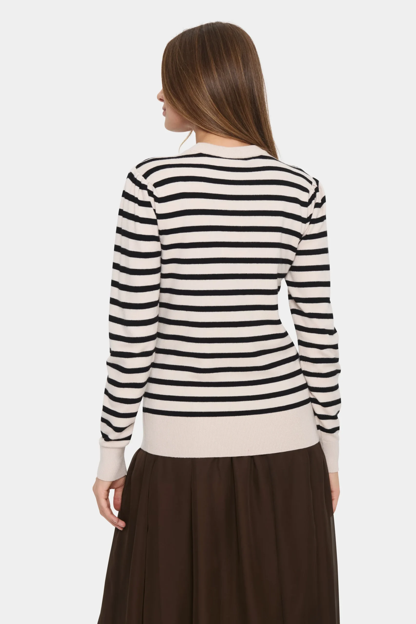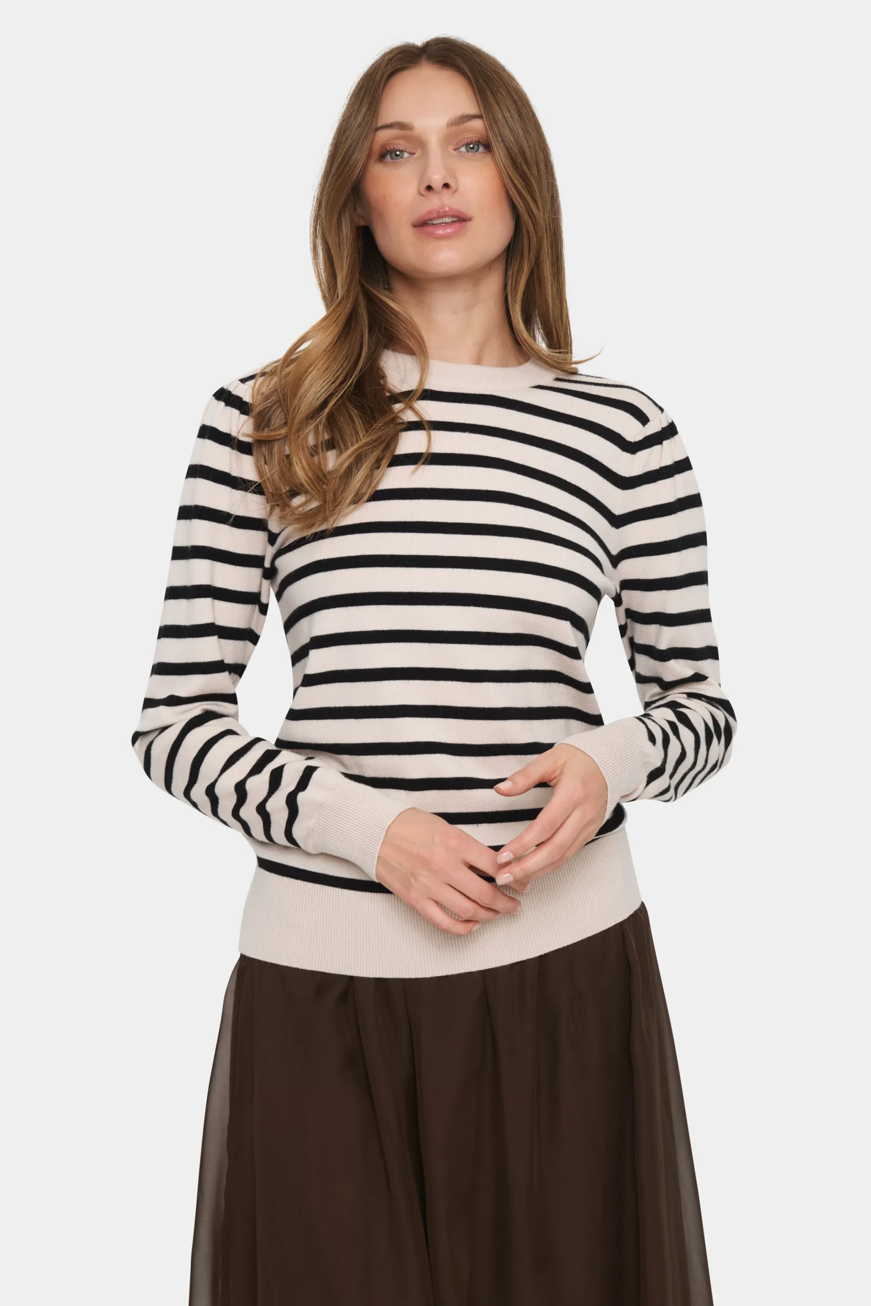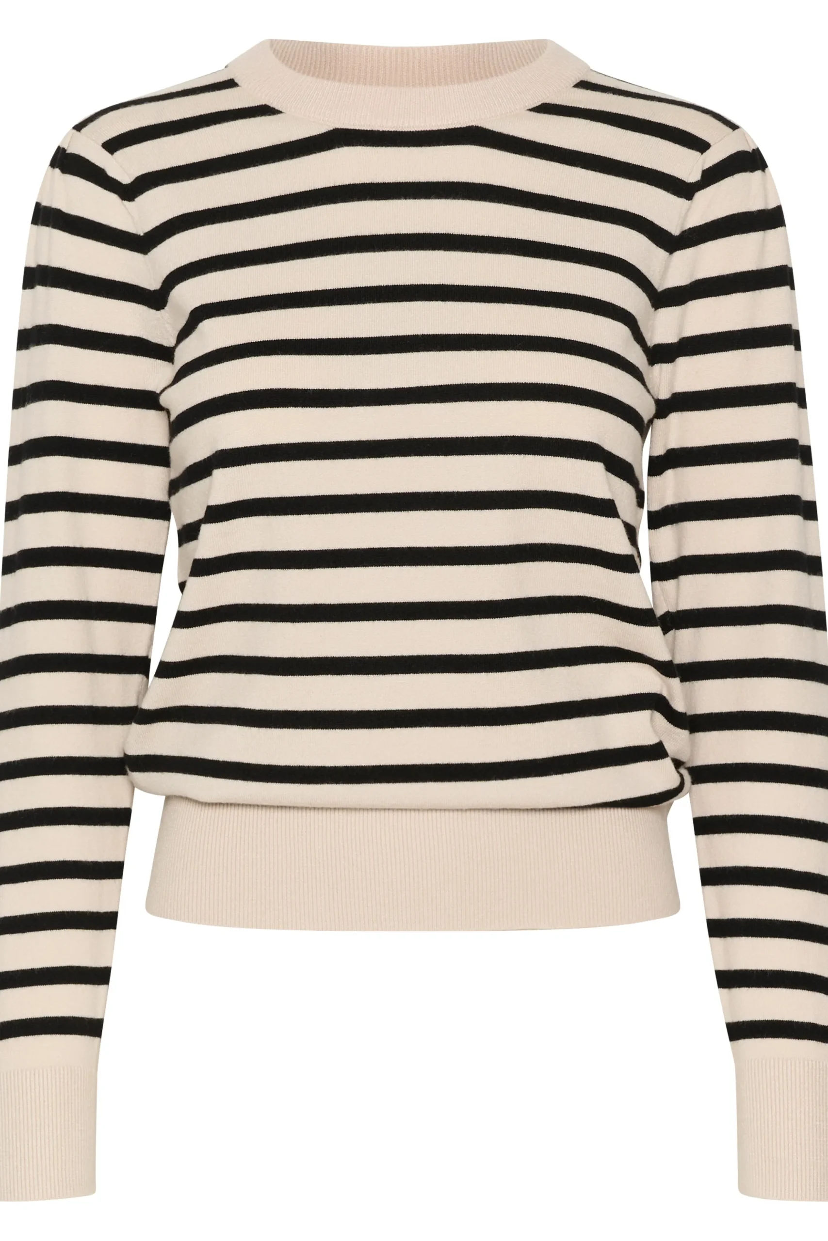 Stribet pullover med rund hals, rib forneden og ved ærmerne. \\n\\nModellen er 176 cm høj og er iført en str. M \\n