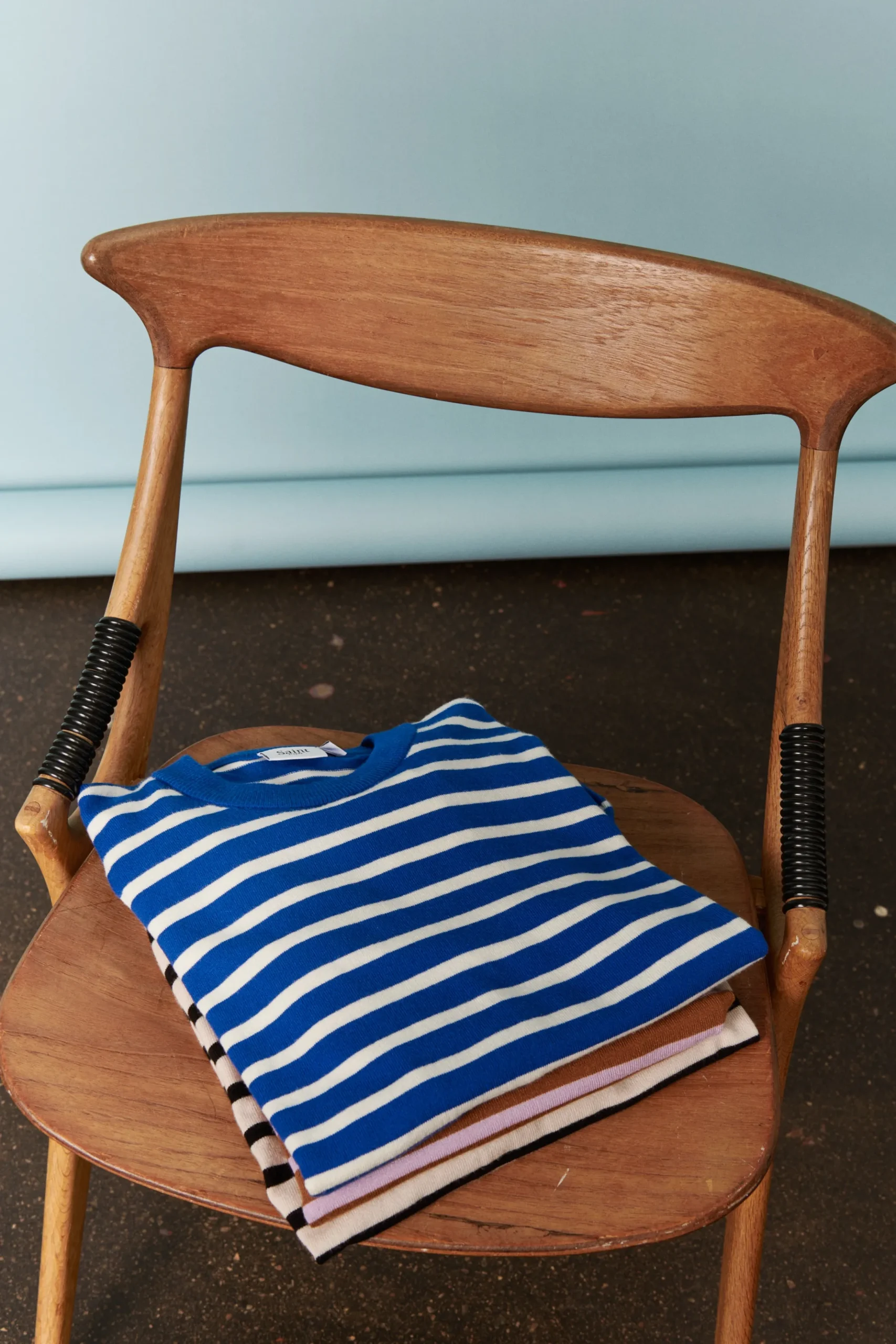Stribet pullover med rund hals, rib forneden og ved ærmerne. \\n\\nModellen er 176 cm høj og er iført en str. M