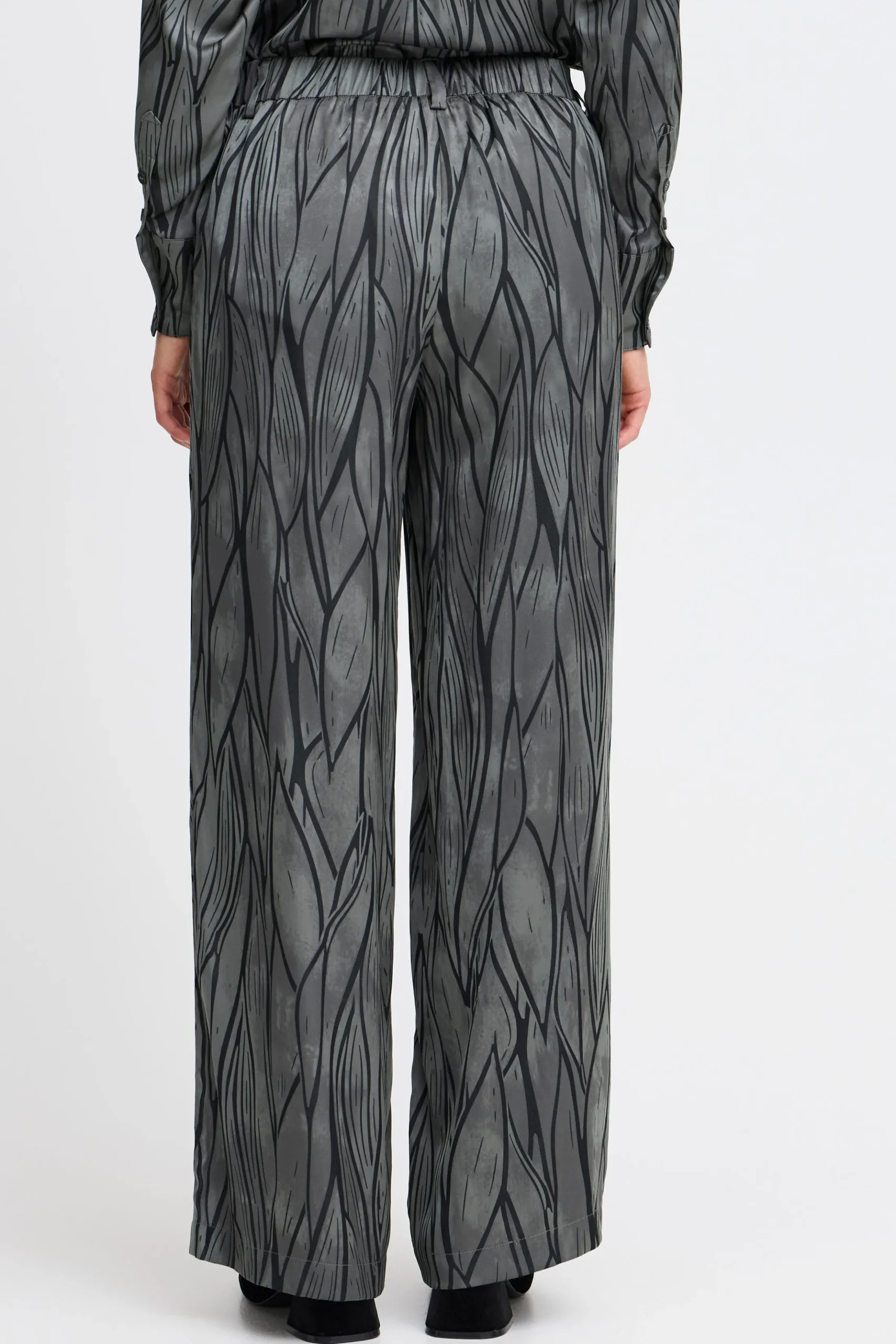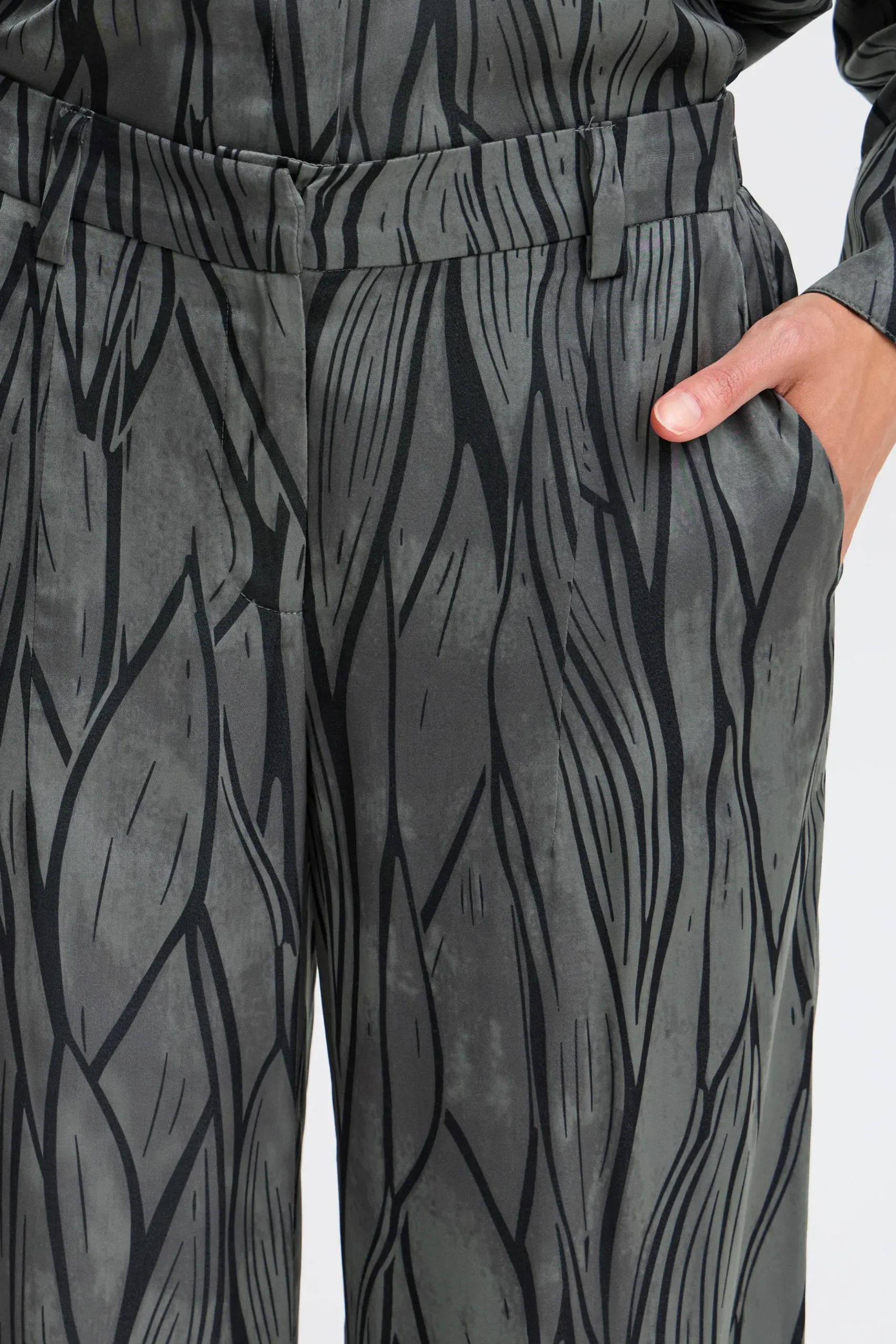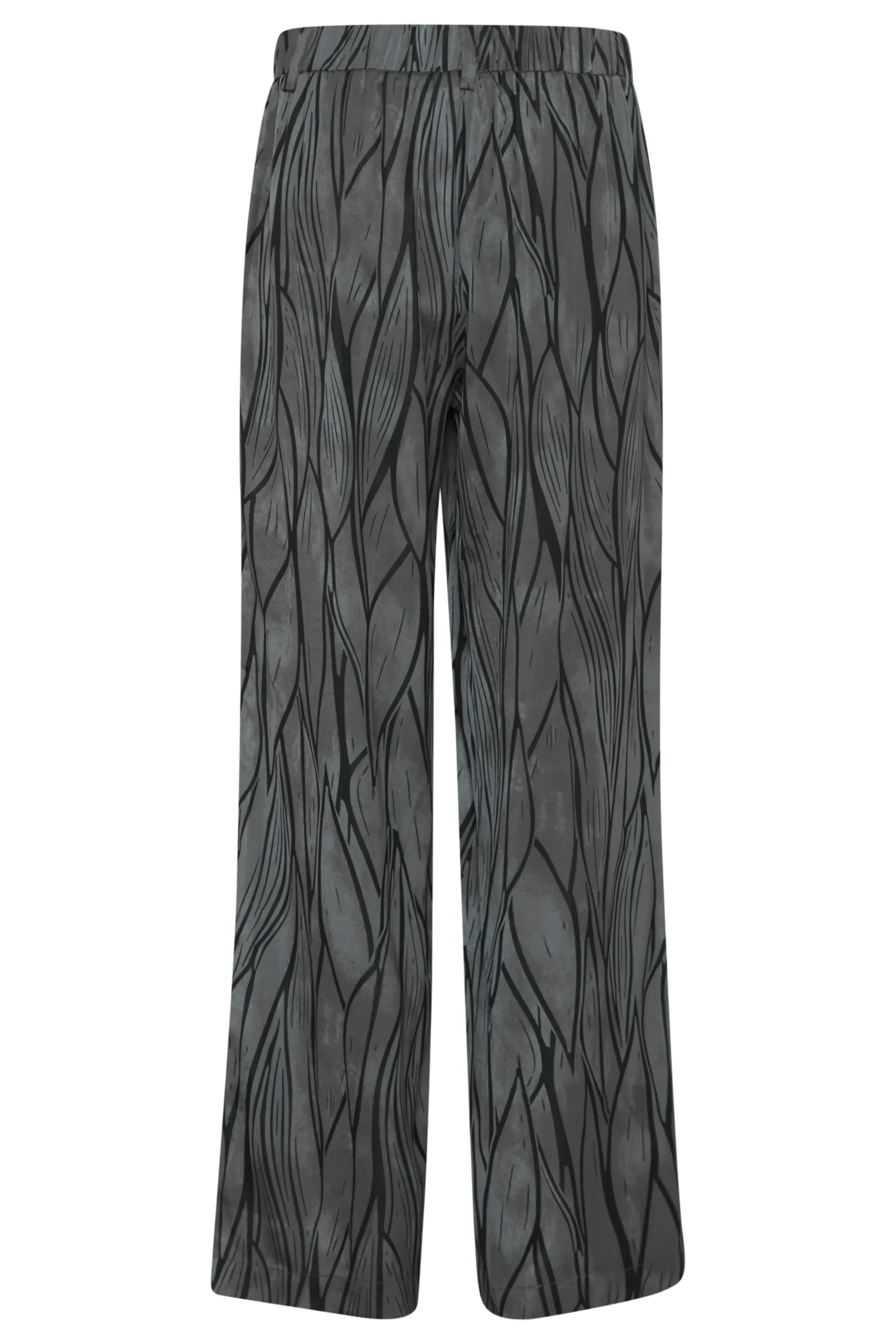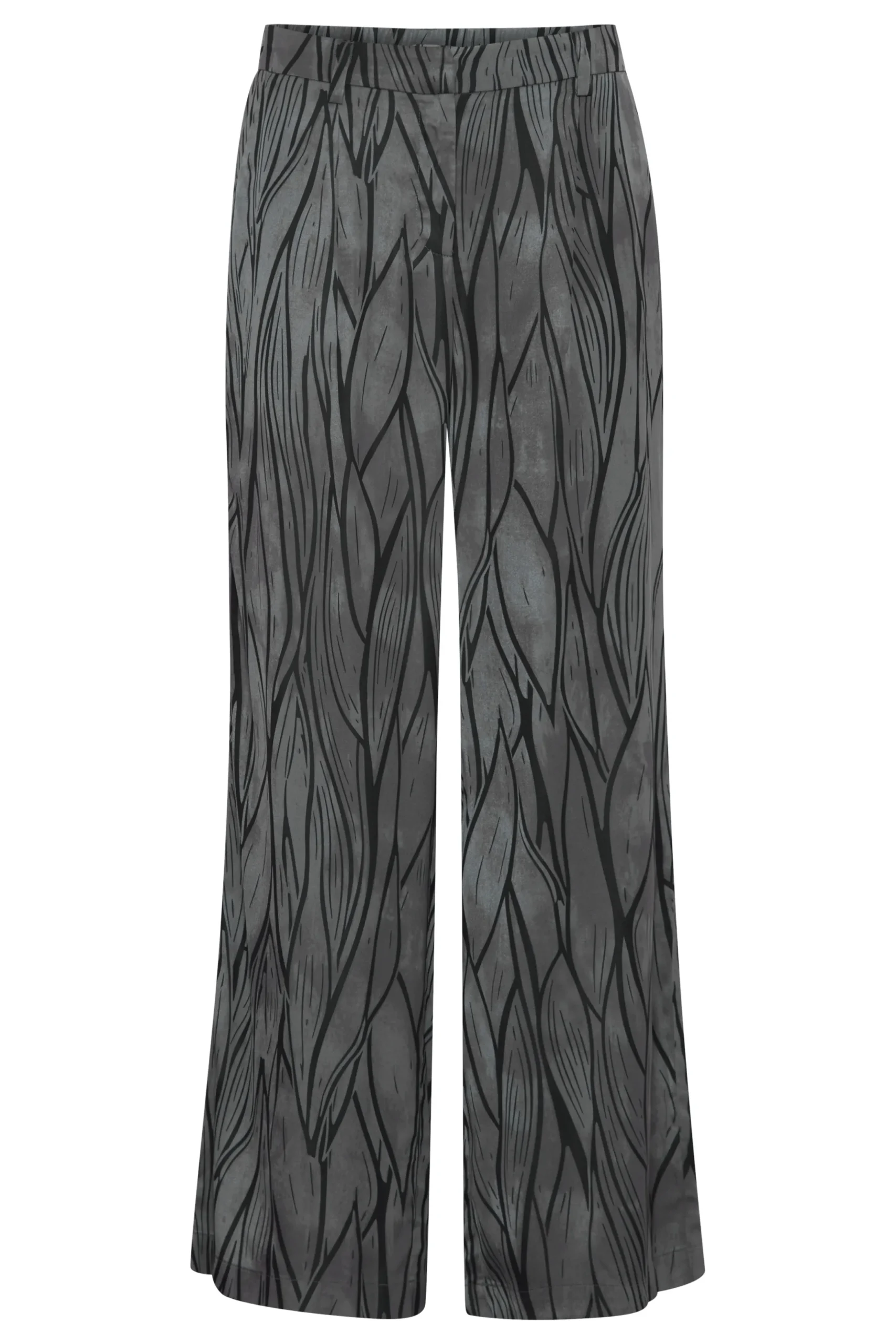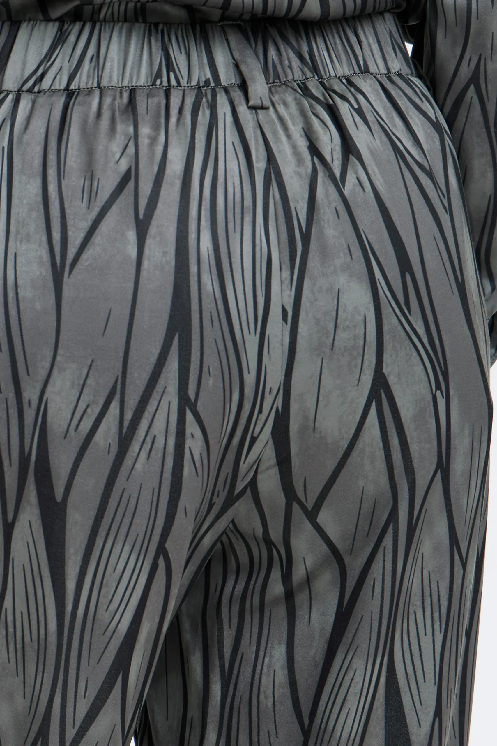 Modellen er 178 cm høj og bruger str. S/36.\\n\\nDisse afslappede bukser med fuld længde i vævet kvalitet er ideelle til hverdagsbrug, med et design, der skaber en afslappet pasform. Materialet får bukserne til at føles let og behagelige, perfekt til enhver begivenhed. Bukserne giver dig et simpelt, men stilfuldt udseende. Det smukke og unikke print er lavet i samarbejde med kunstneren Karin Harboe.