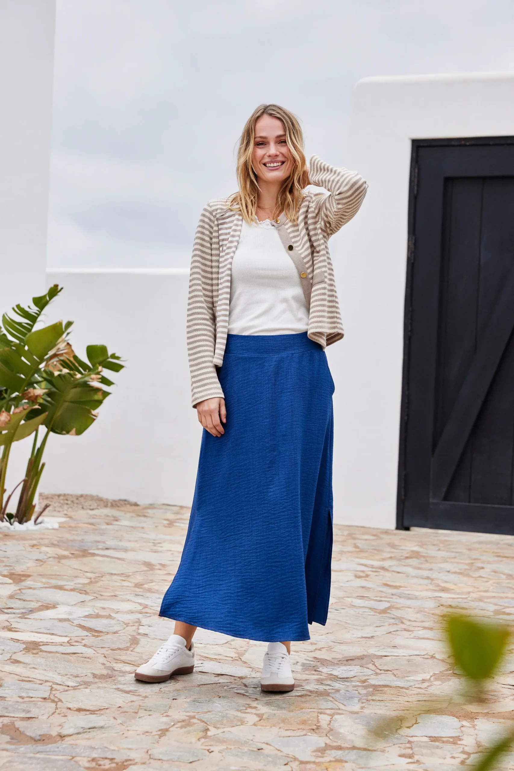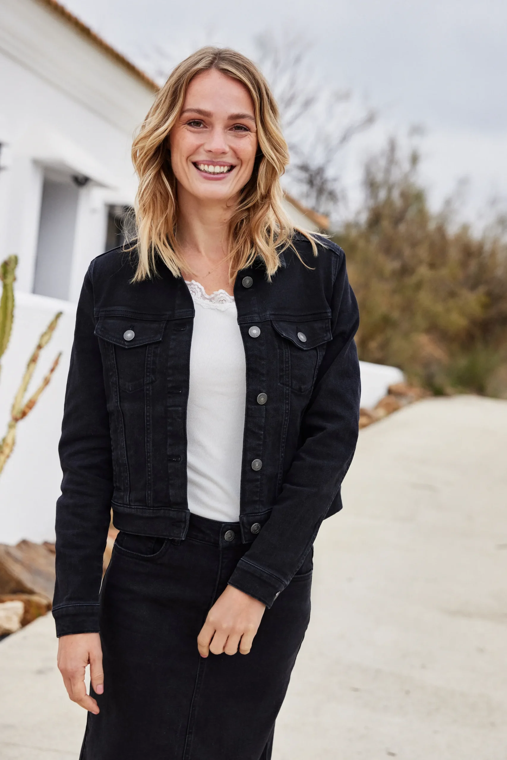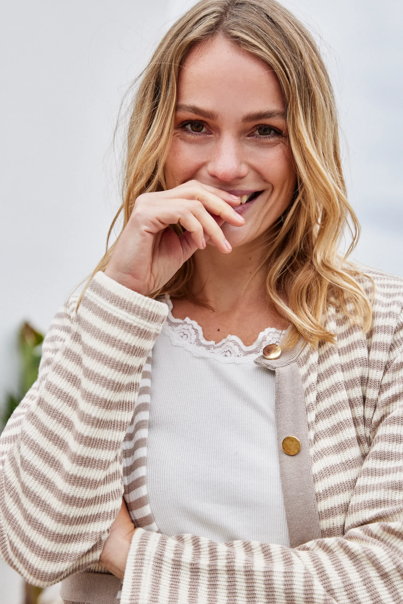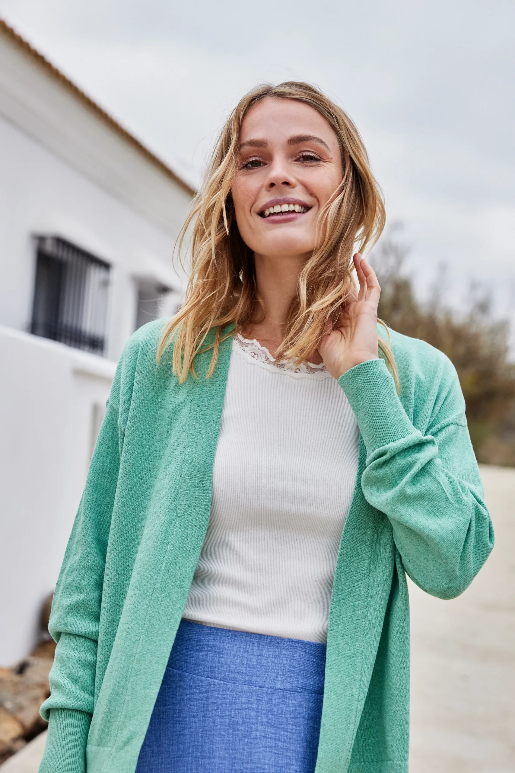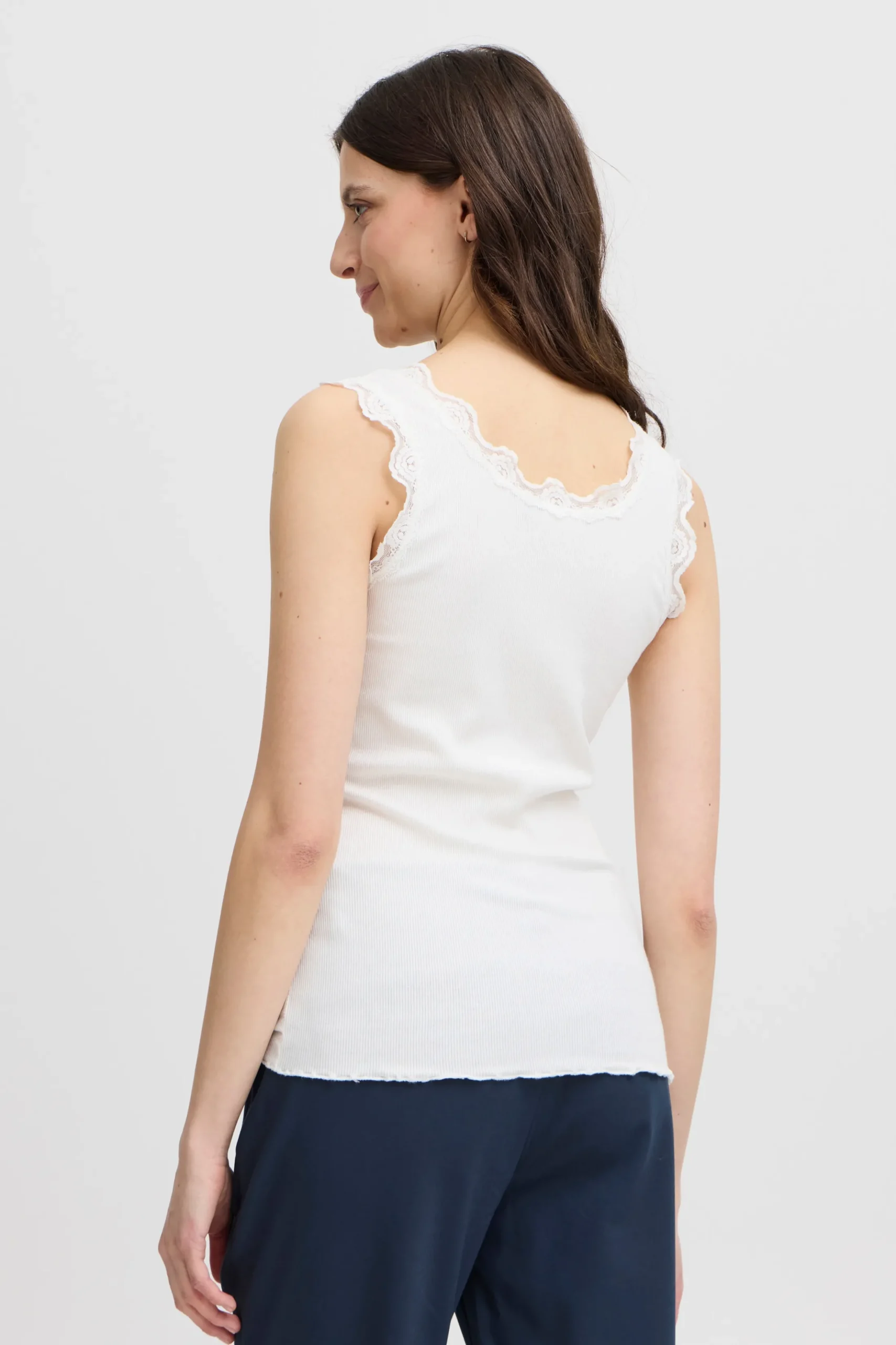 Top fra Fransa med rund hals. Blondebånd i hals og ærmegab. Jerseykvalitet. Tætsiddende pasform.