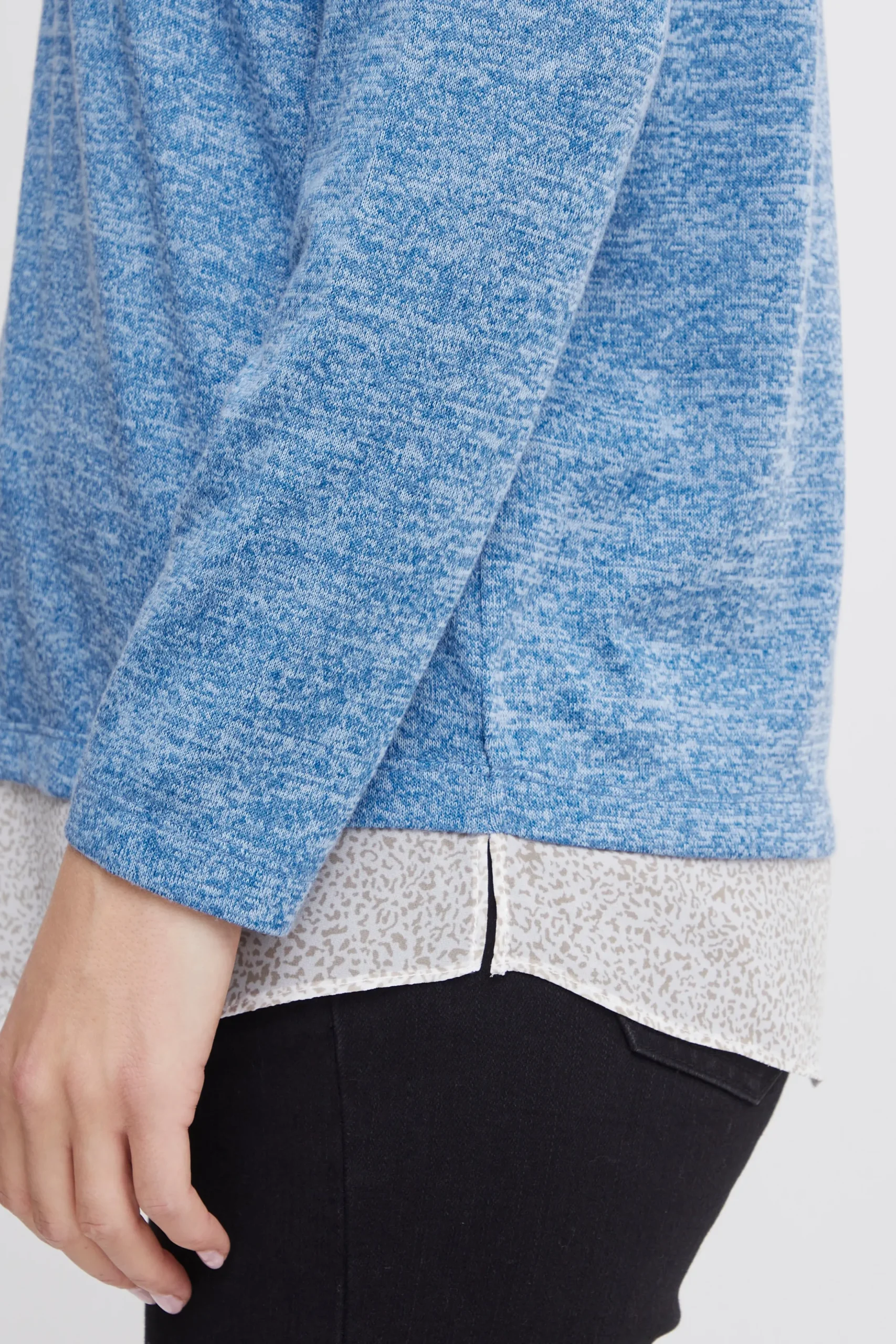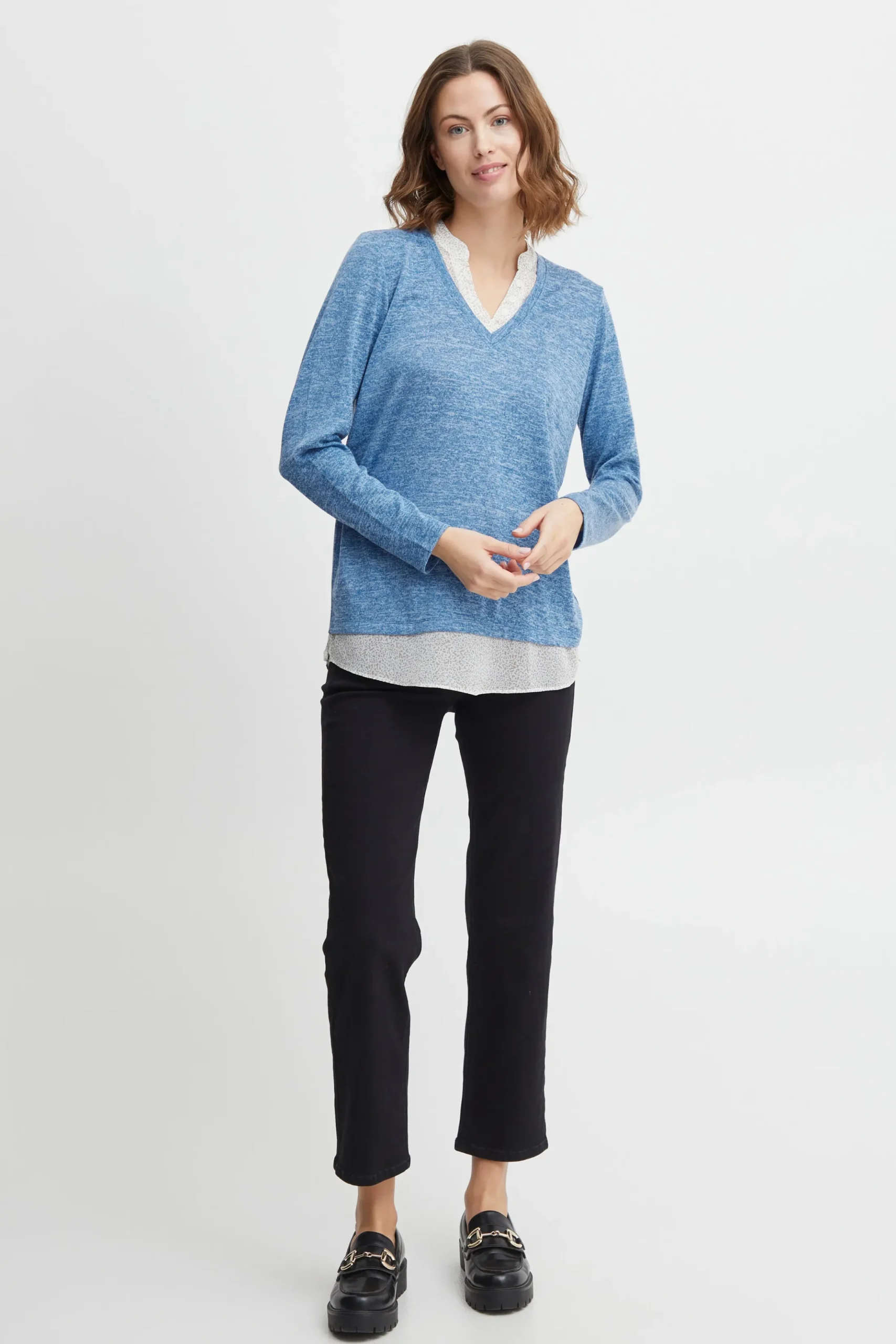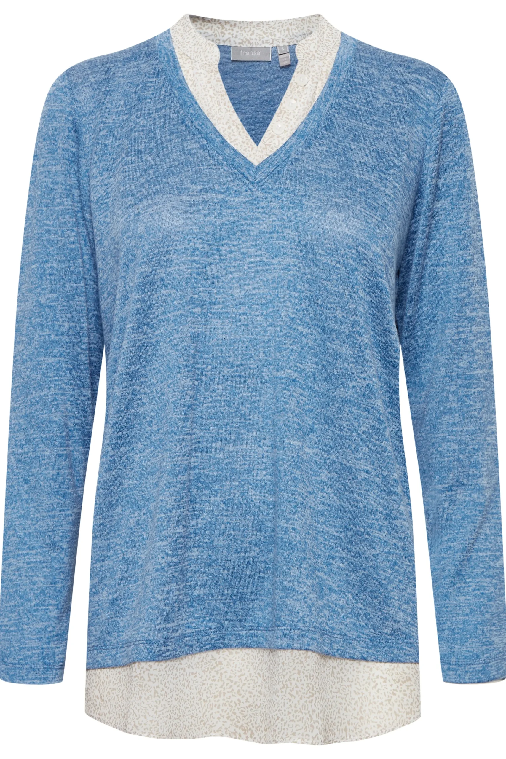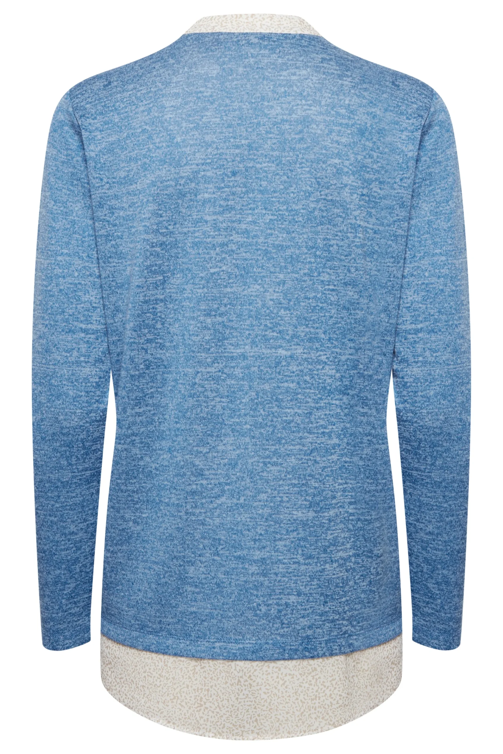 Strikbluse fra Fransa med V-hals. Lange ærmer. Skjorteeffekt i hals samt forneden. Normal pasform.