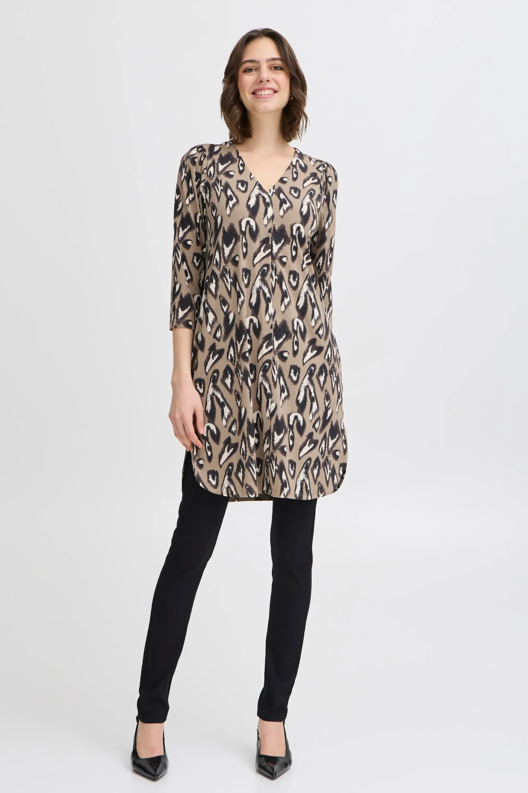 Tunika fra Fransa med V-hals. 3/4-ærmer. Slids i siden. Afrundet forneden. Printet jerseykvalitet. Løstsiddende pasform.