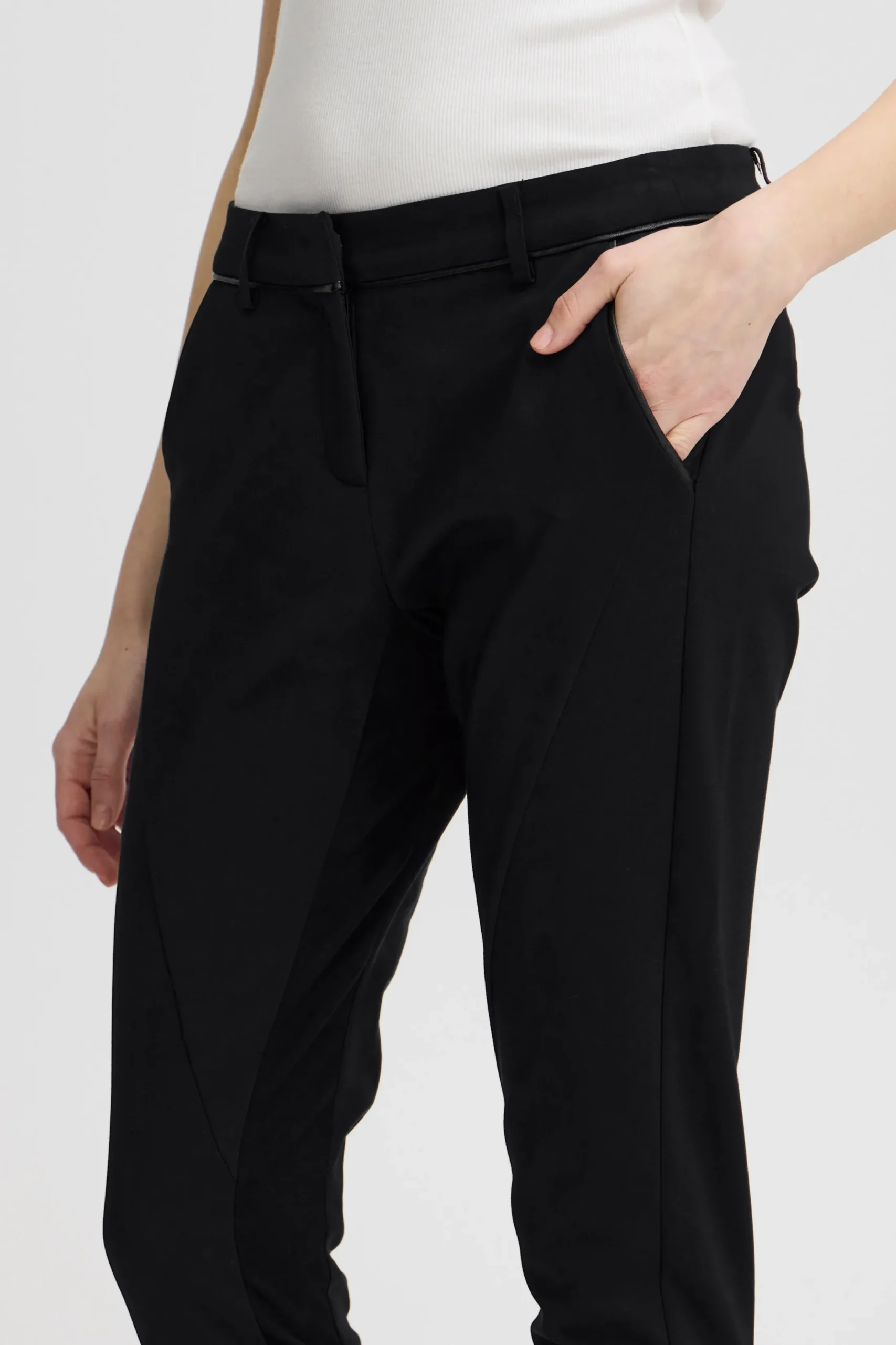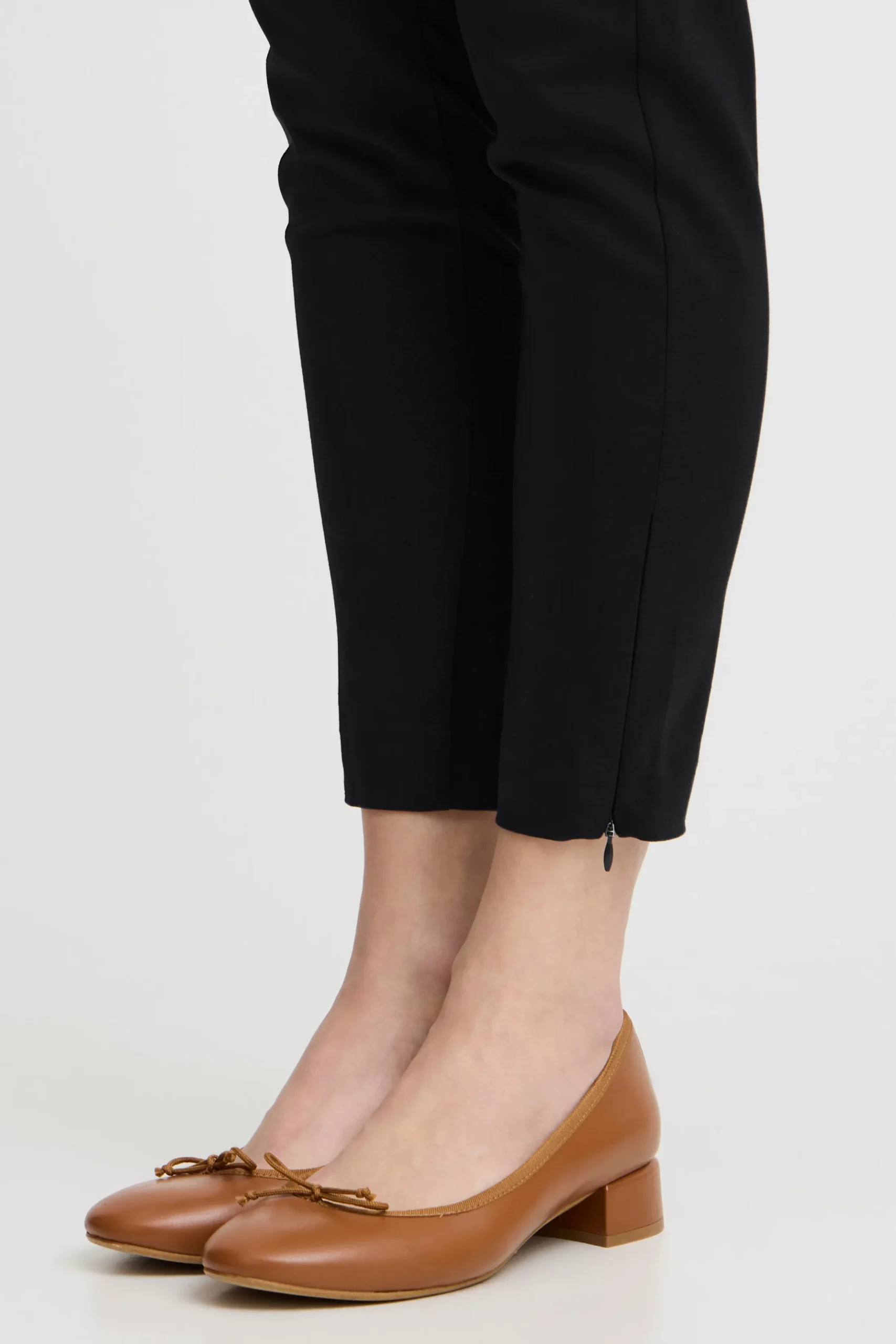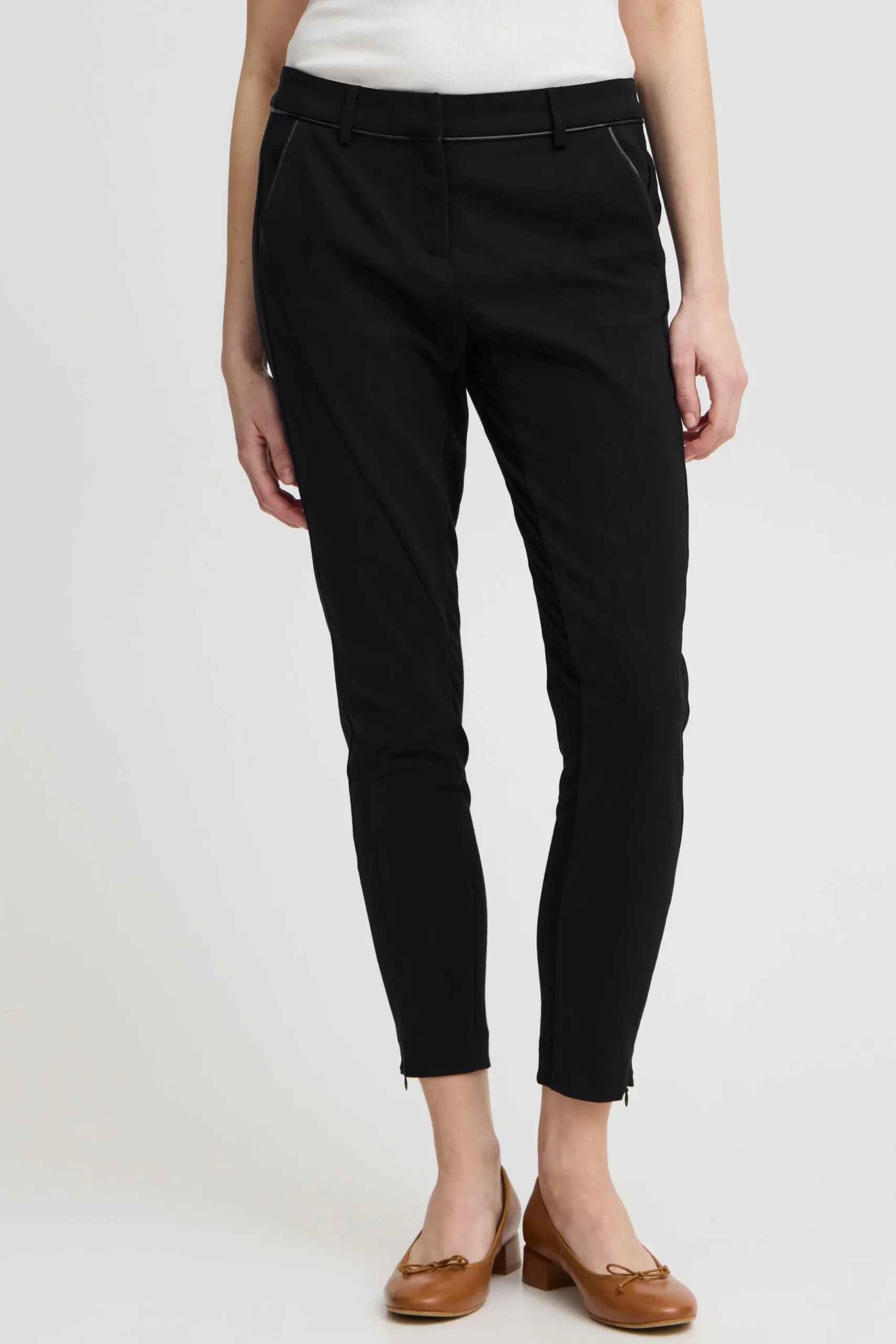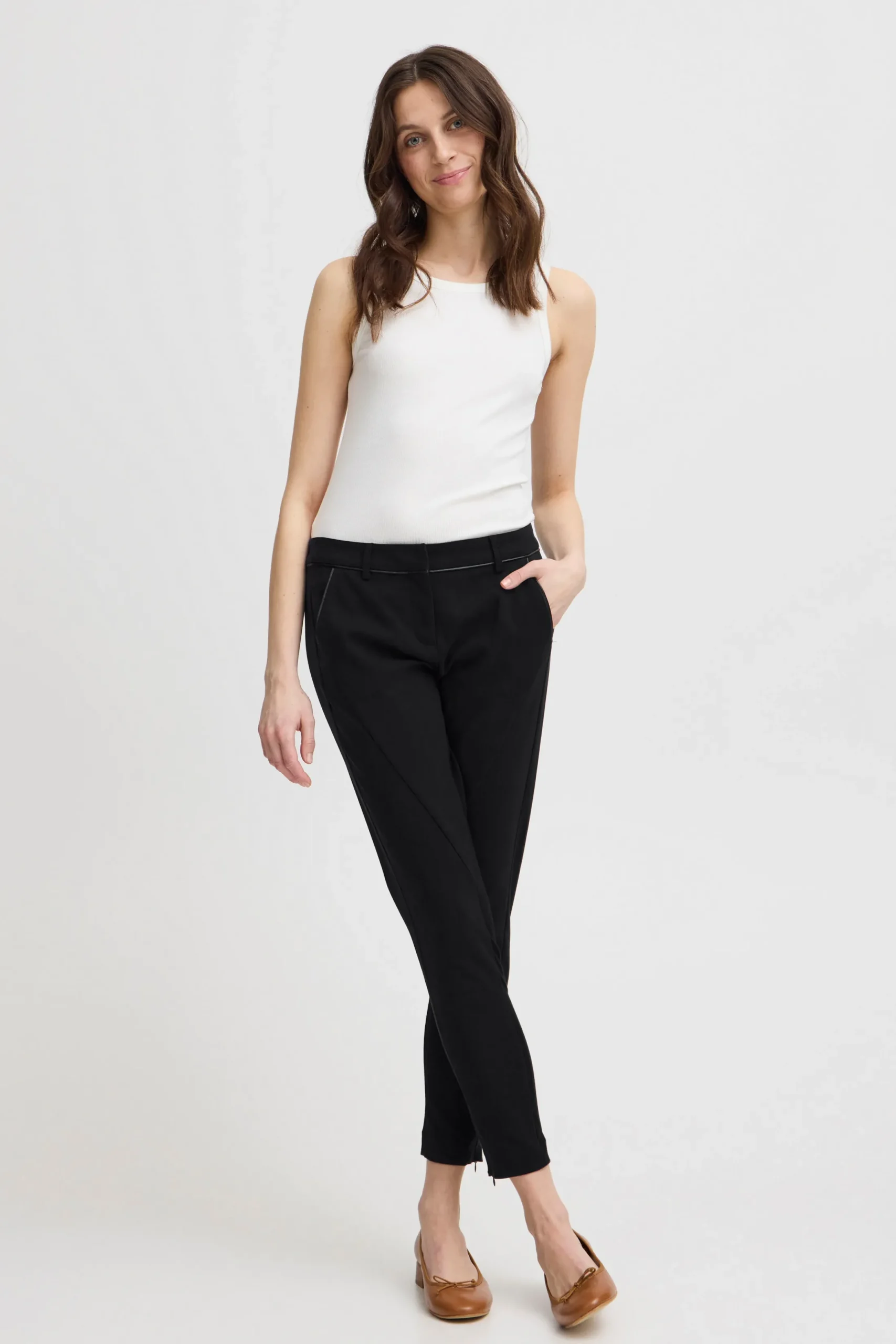Ankelbuks Fra Fransa med fast linning og bæltestropper. Skjult hægte og lynlåslukning. Overskæring på lår. Kraftig vævet kvalitet. Ankelbukserne fra Fransa har ribkant på inderside af ben. Normal pasform og talje. Tætsiddende ben.