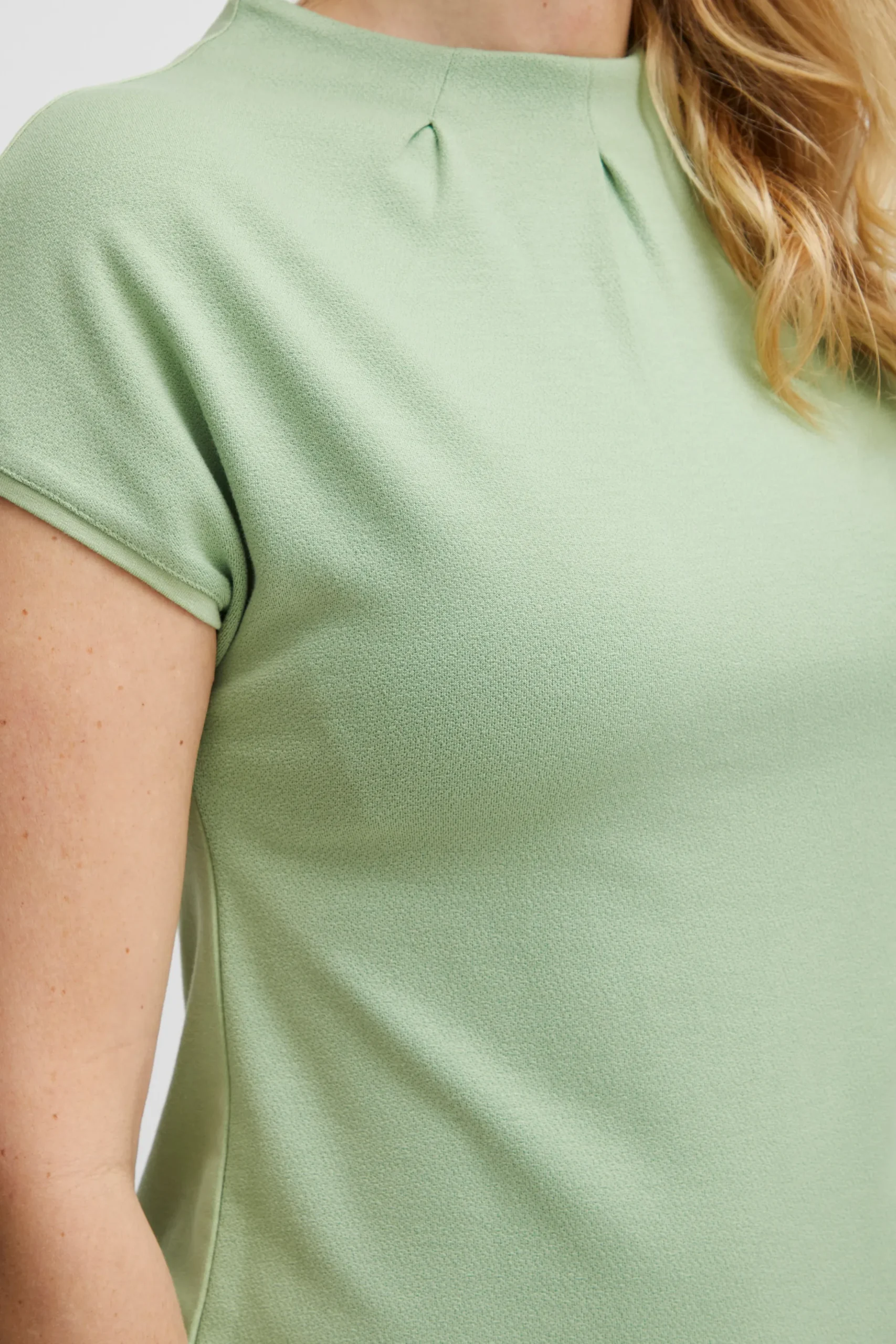 Bluse fra Fransa med rund hals. Korte ærmer. Forstykke i crepe/jersey kvalitet. Jerseykvalitet. Blusen fra Fransa har tætsiddende pasform.