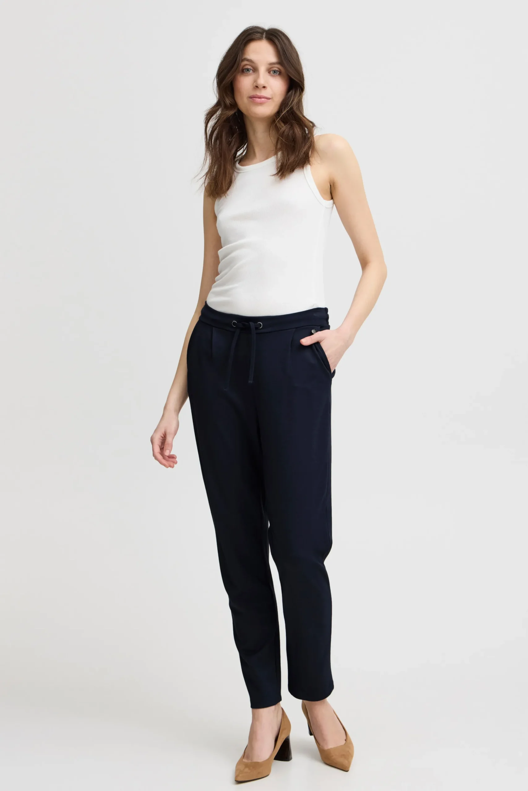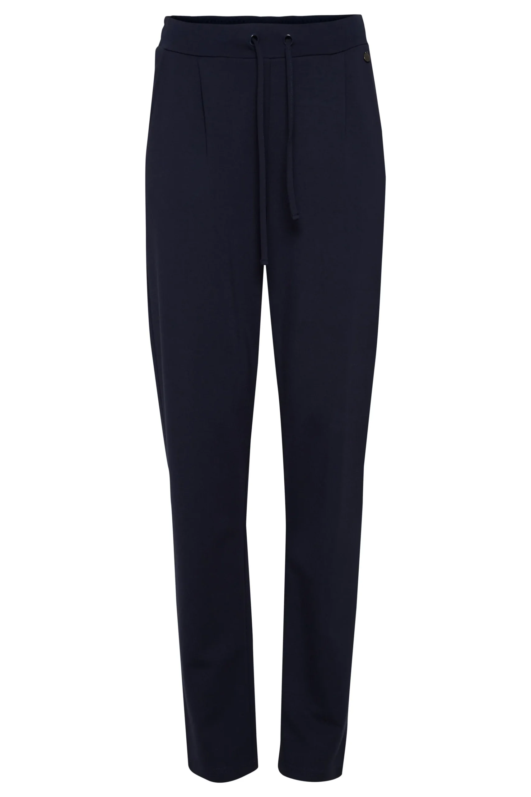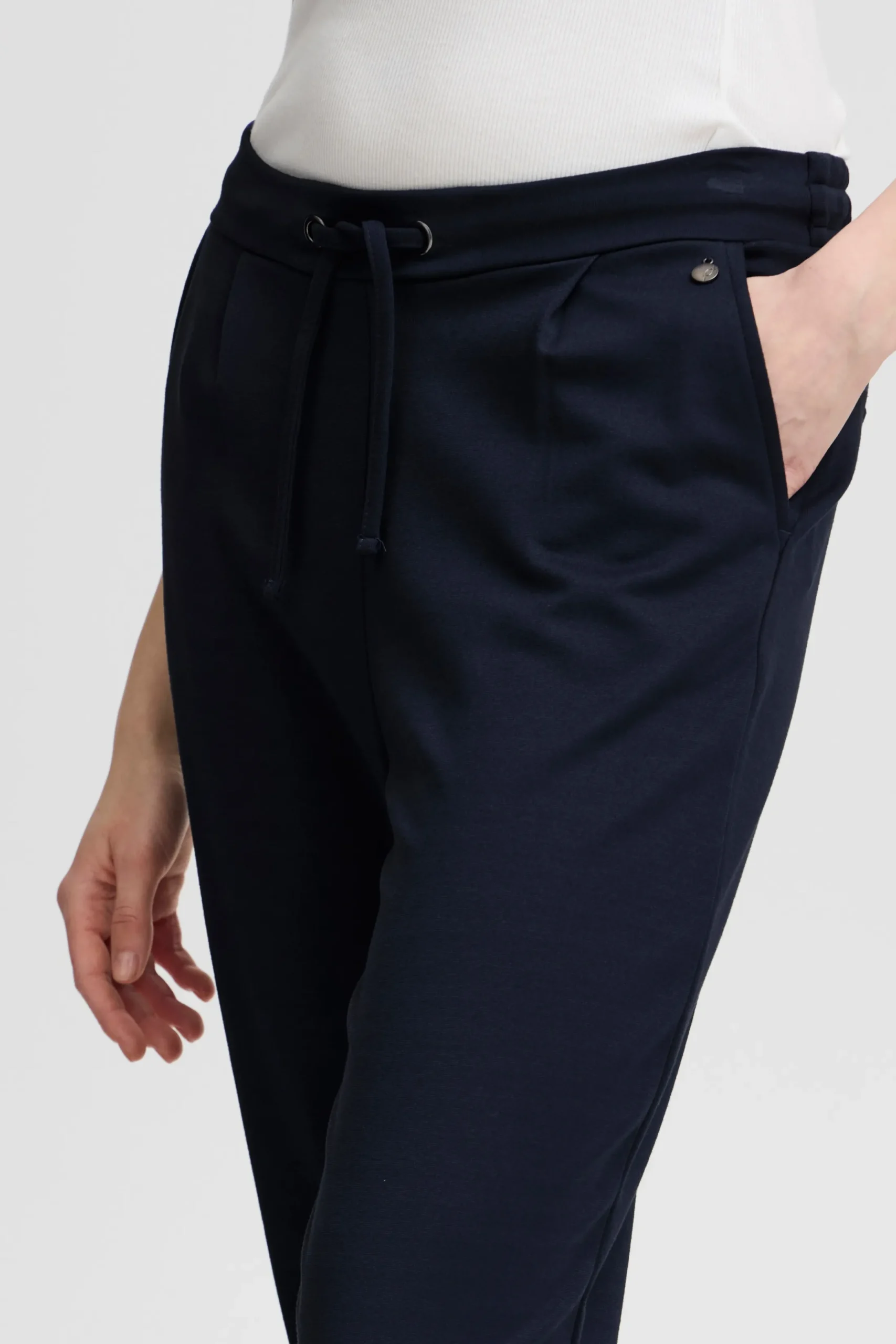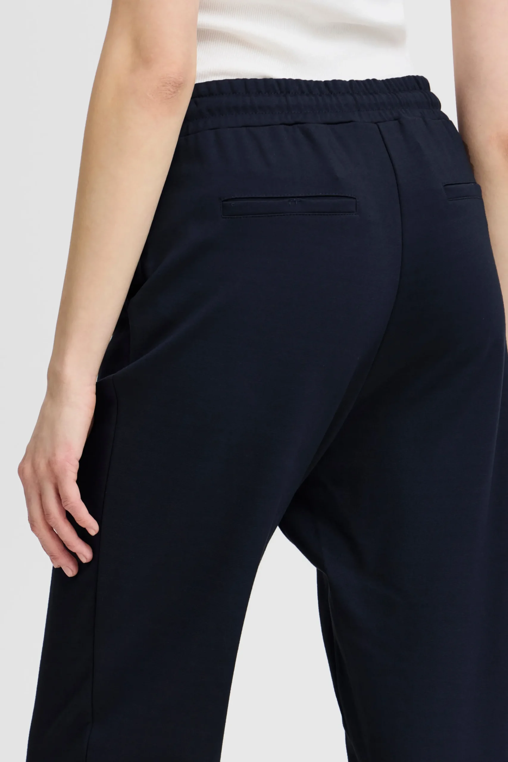 Strikket bukser med normal pasform og med elastik og snøre i taljen. Smalle ben. Stiklommer foran og paspolerede lommer bagpå.