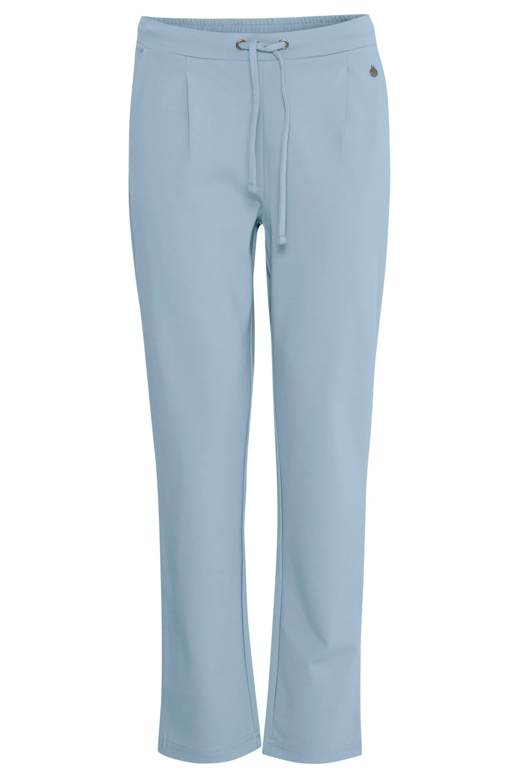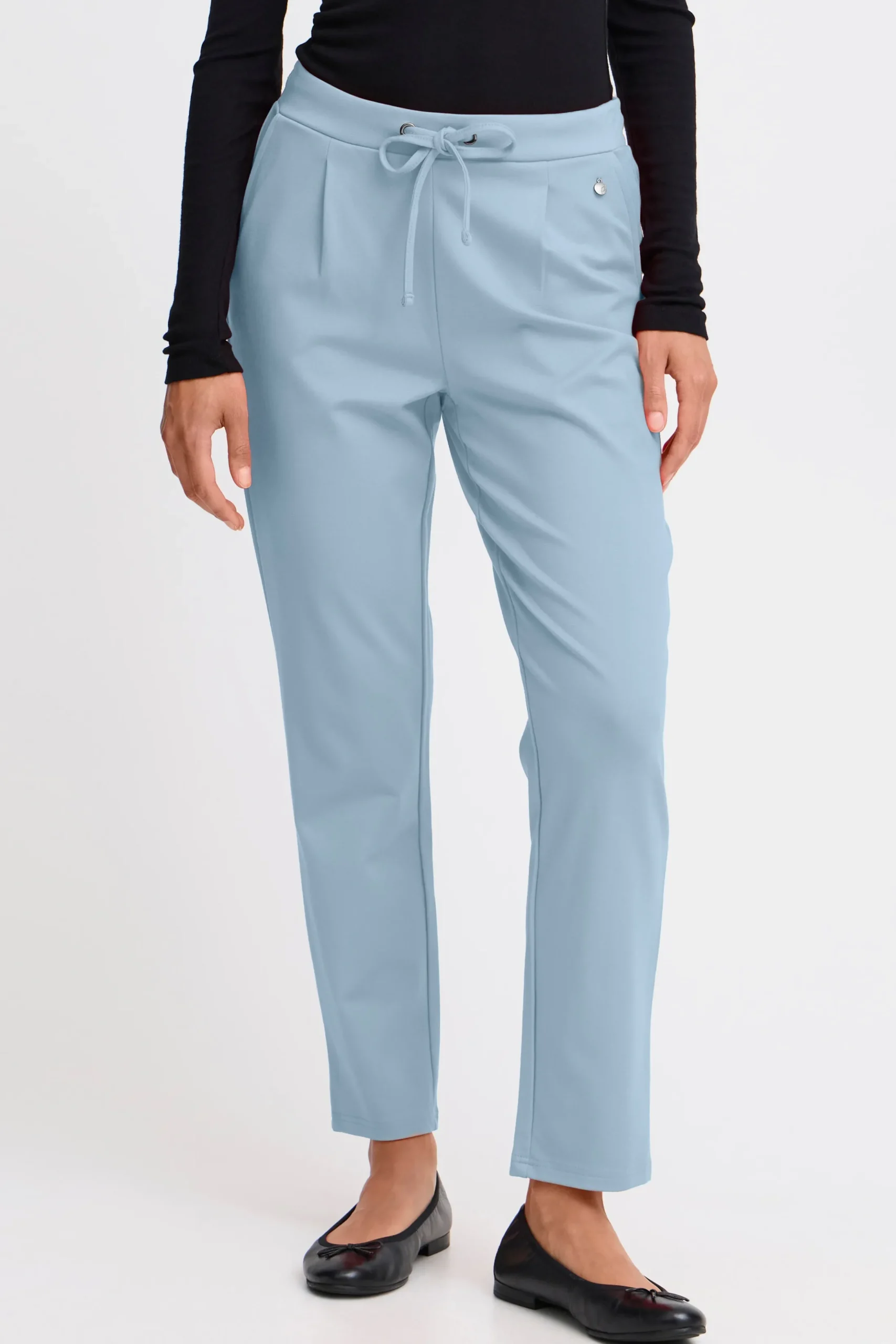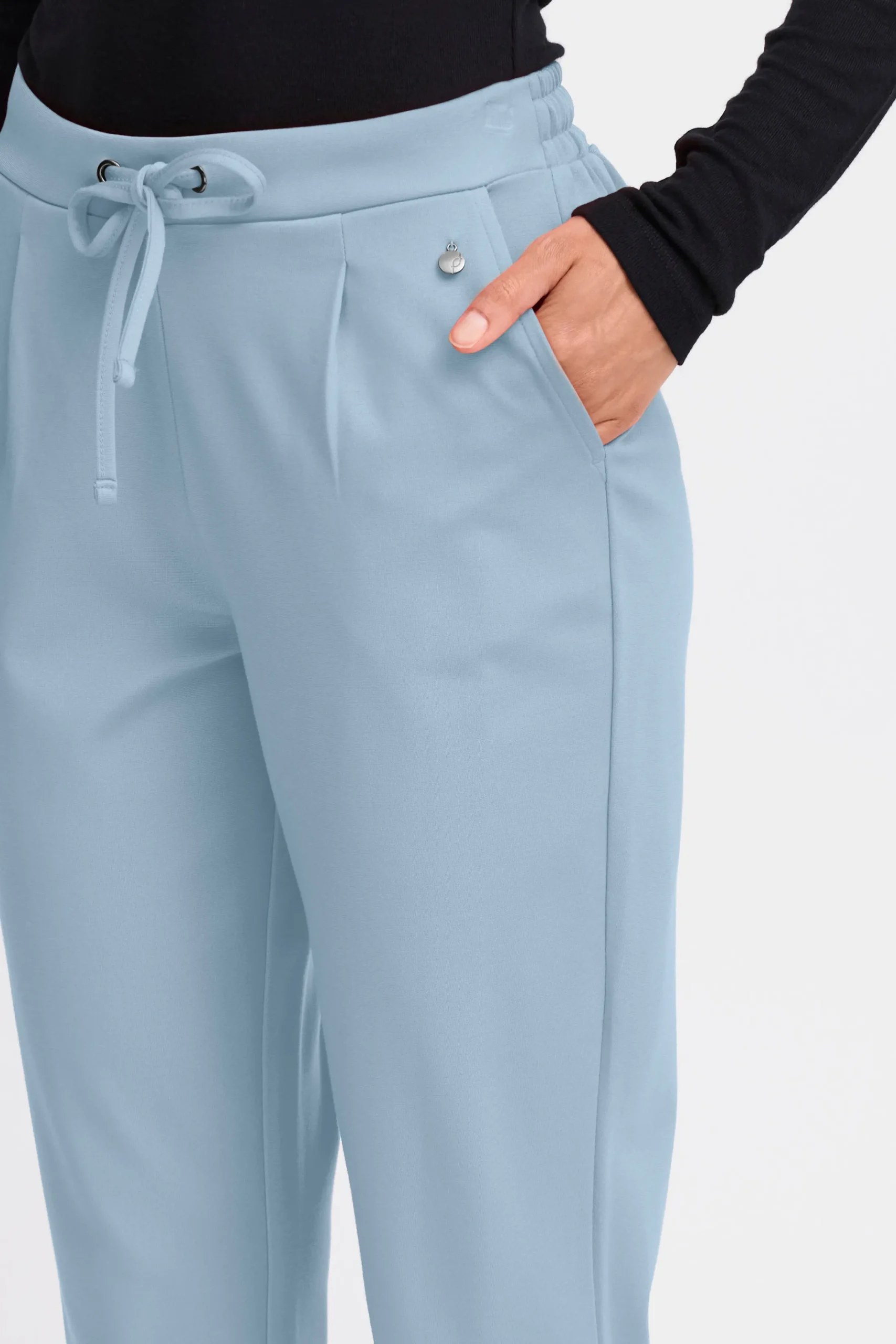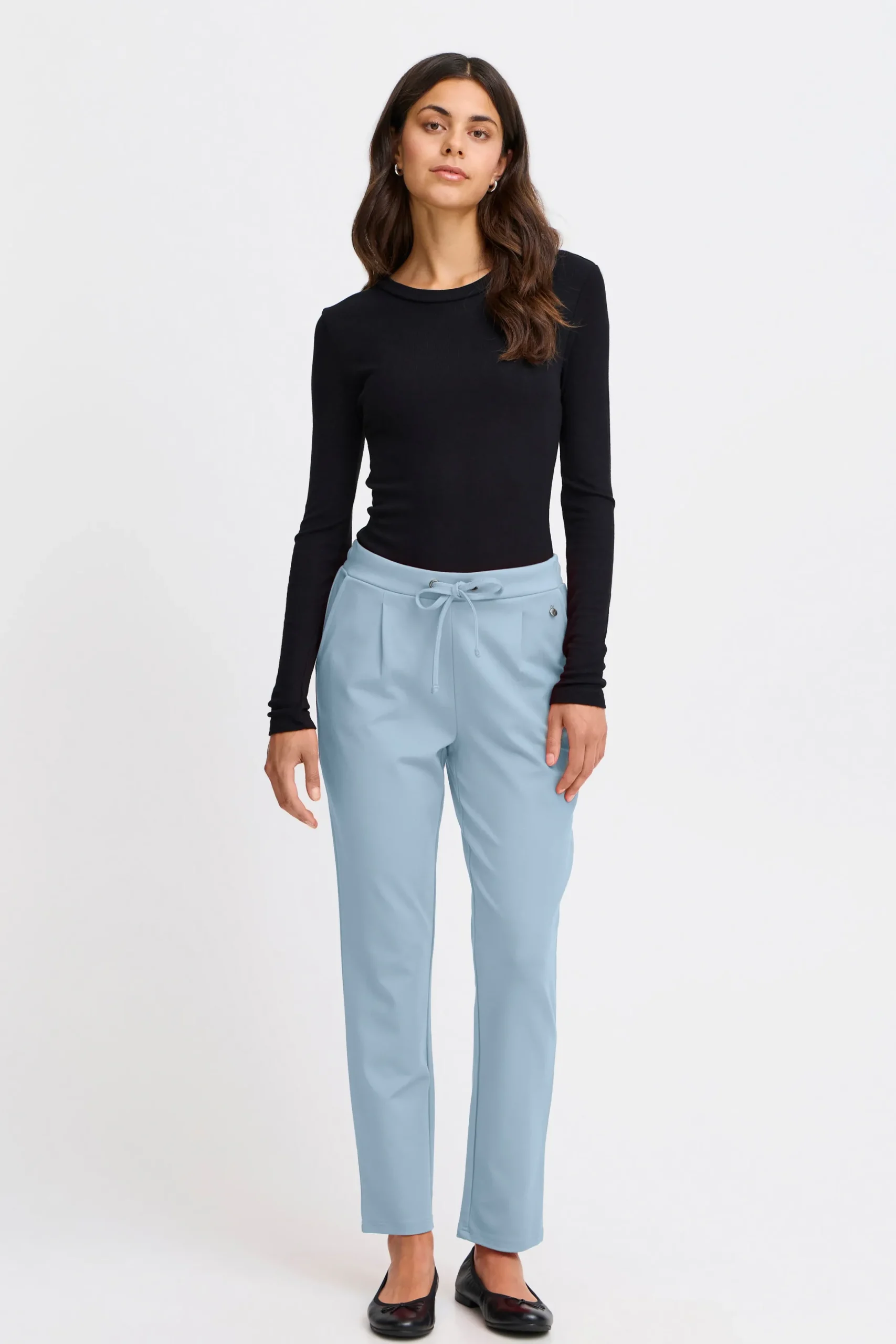 Strikket bukser med normal pasform og med elastik og snøre i taljen. Smalle ben. Stiklommer foran og paspolerede lommer bagpå.