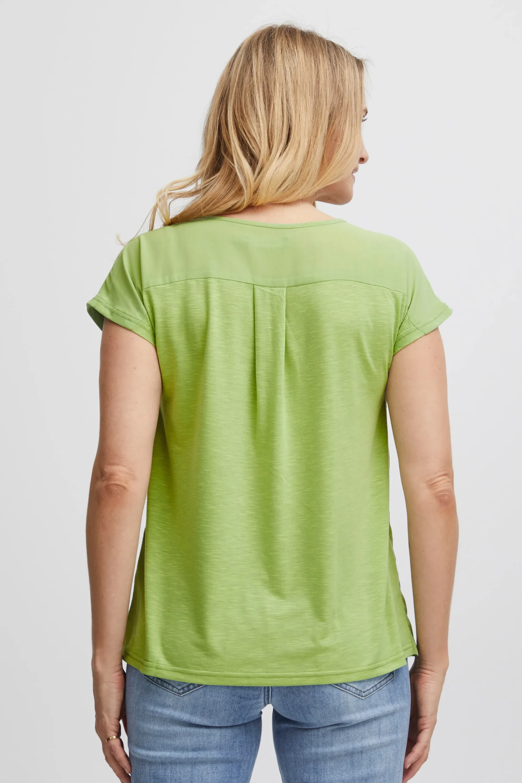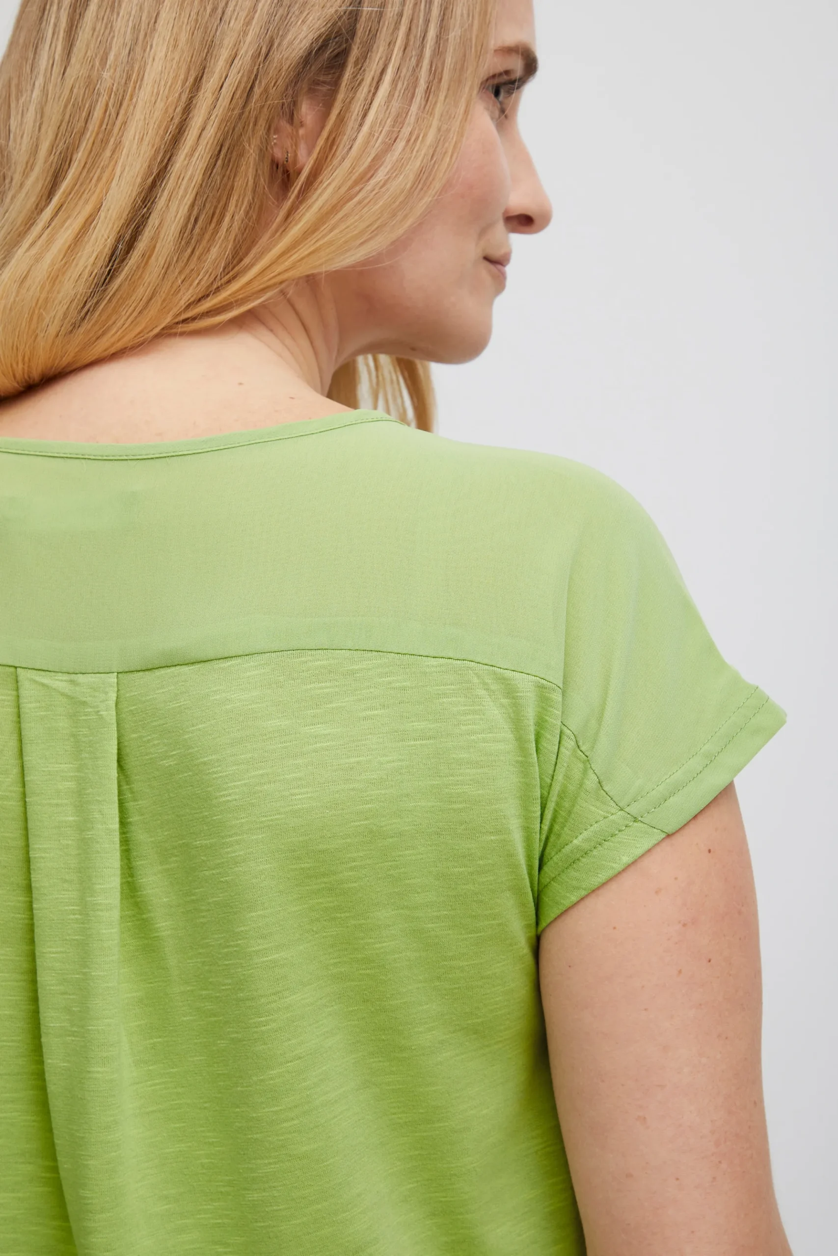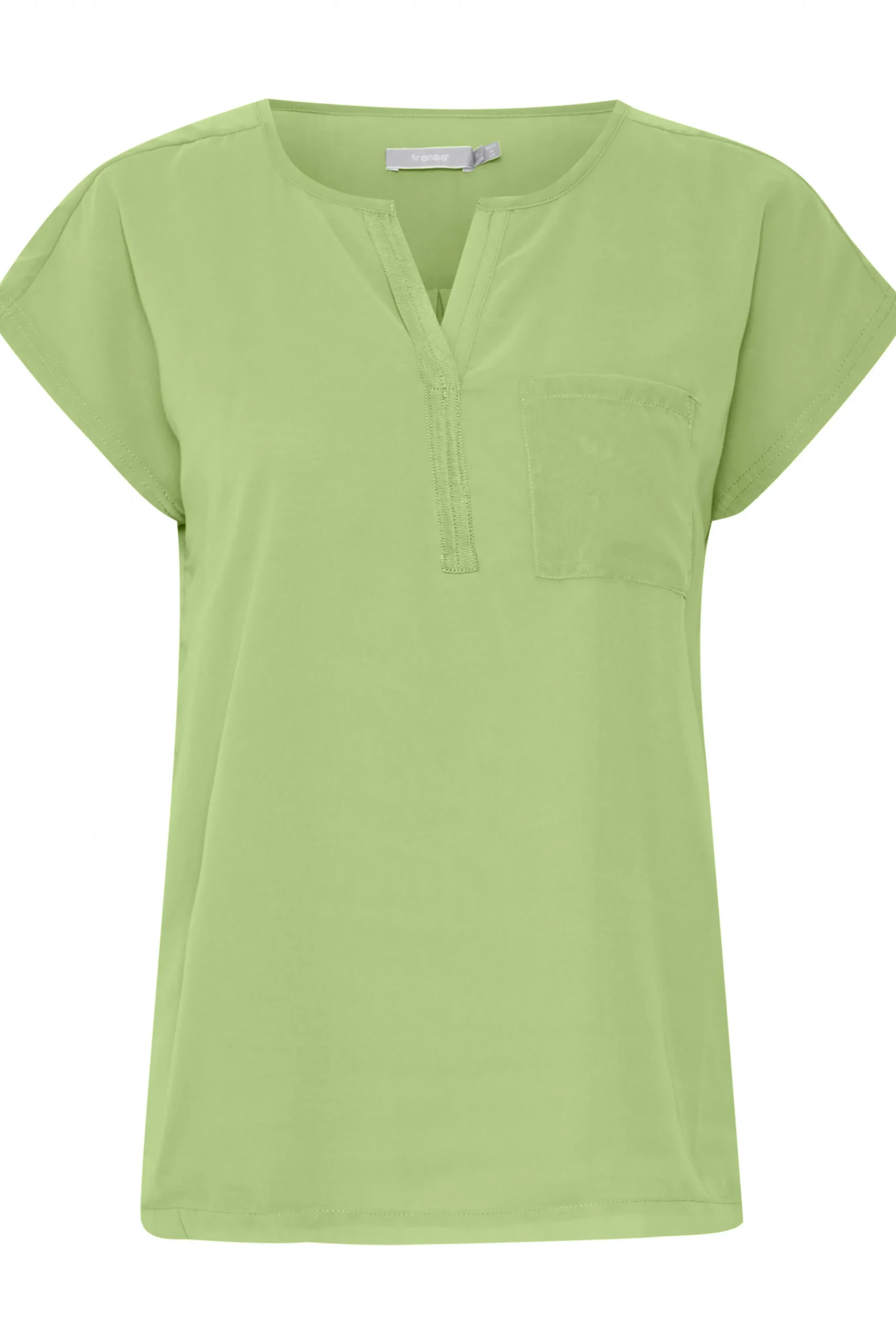 Fin Zawov bluse fra Fransa i 100% polyester. Med foer. Blusen har korte ærmer og V-hals med stolpelukning. Kantbånd ved V-hals og stolpelukning. Forstykket i let vævet kvalitet og bagstykket i skøn jerseykvalitet. Brug bluse til både hverdag og fest – med et par jeans eller en nederdel. Fuldend looket med et par klassiske flade støvler.