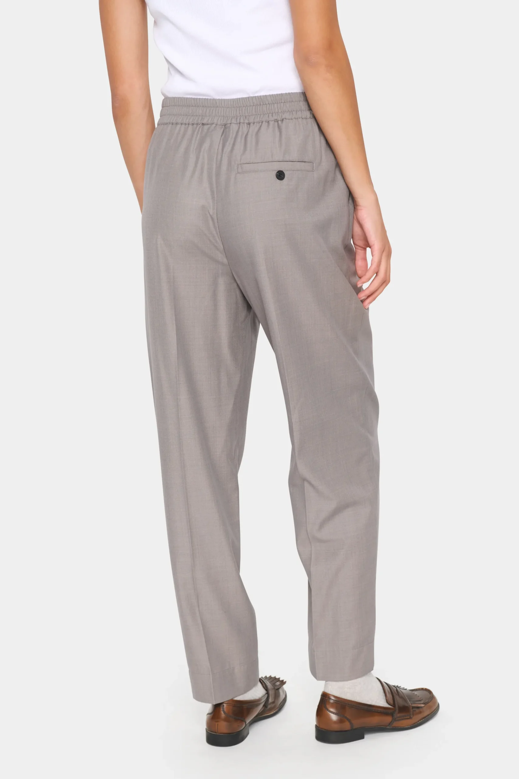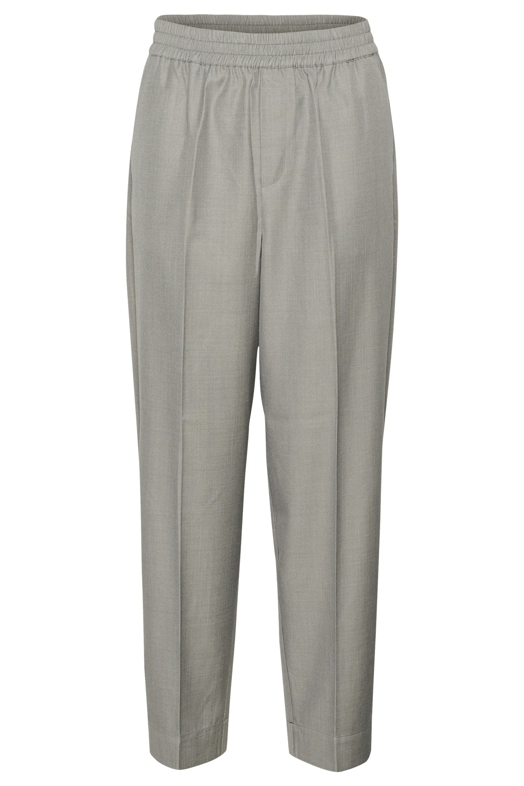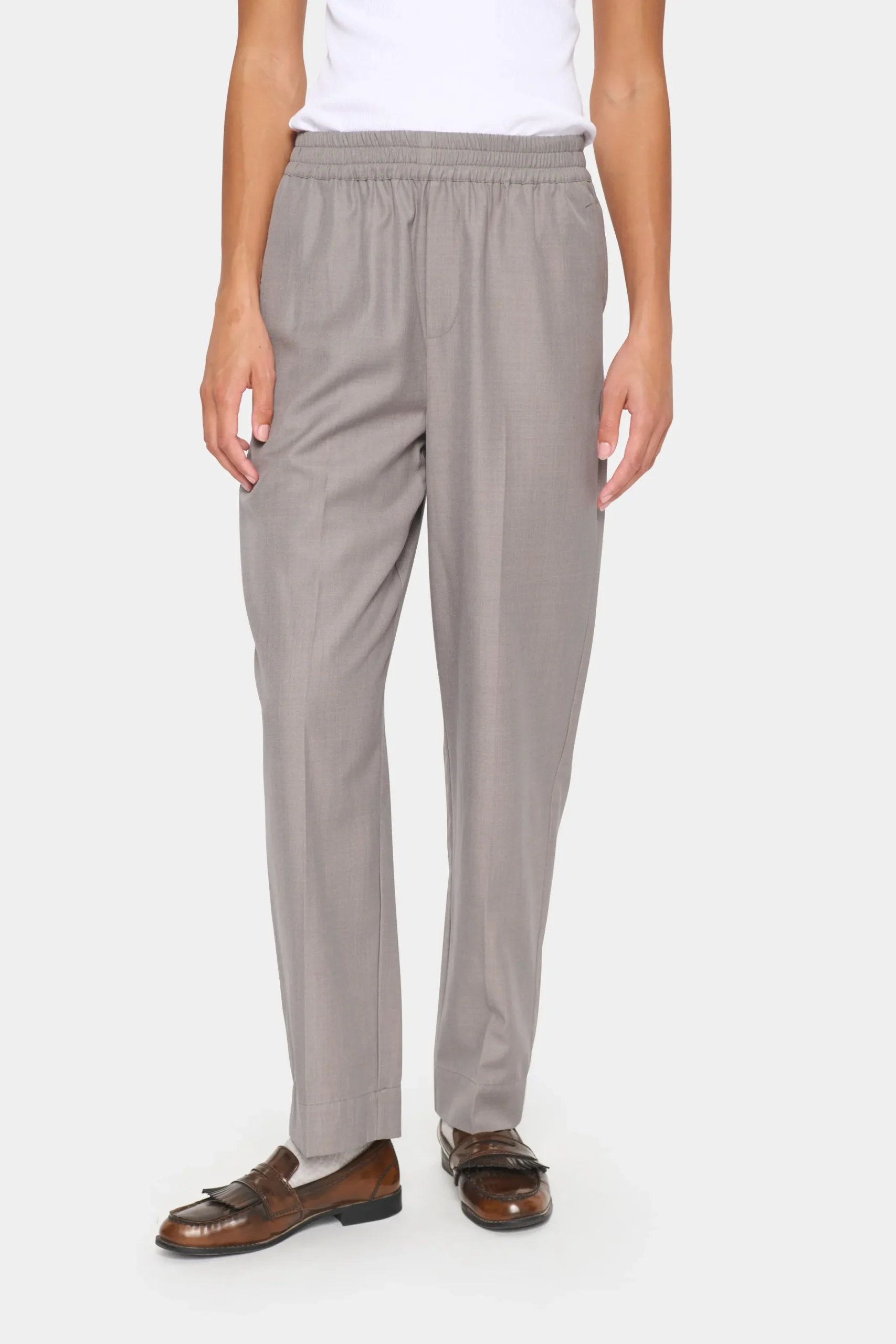 Disse bukser har en afslappet pasform med elastisk talje og pressefolder, der giver et stilrent udtryk. Designet med praktiske lommer og let materiale, perfekt til hverdagsbrug. \\n\\nModellen er 179 cm høj og bærer en størrelse M.