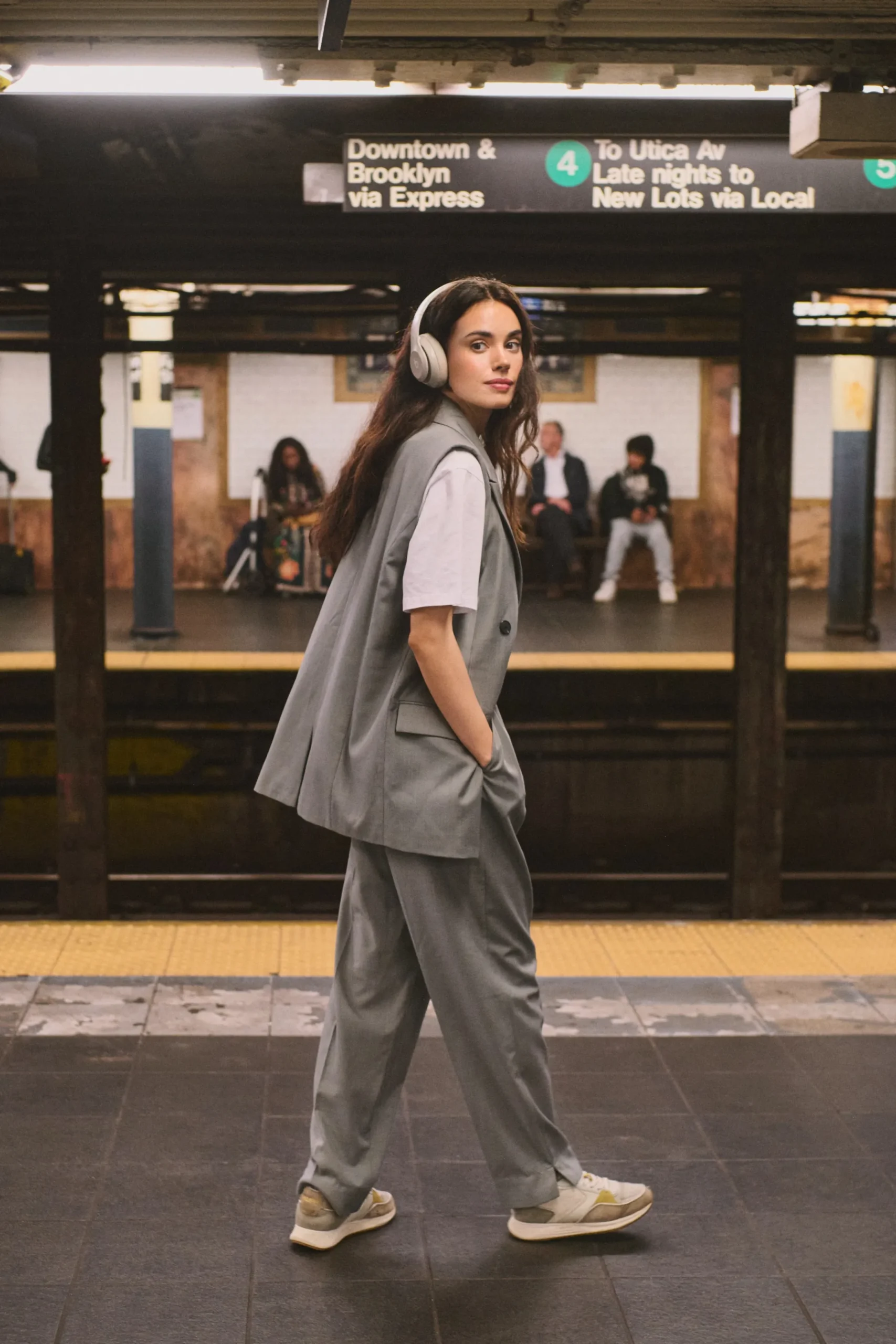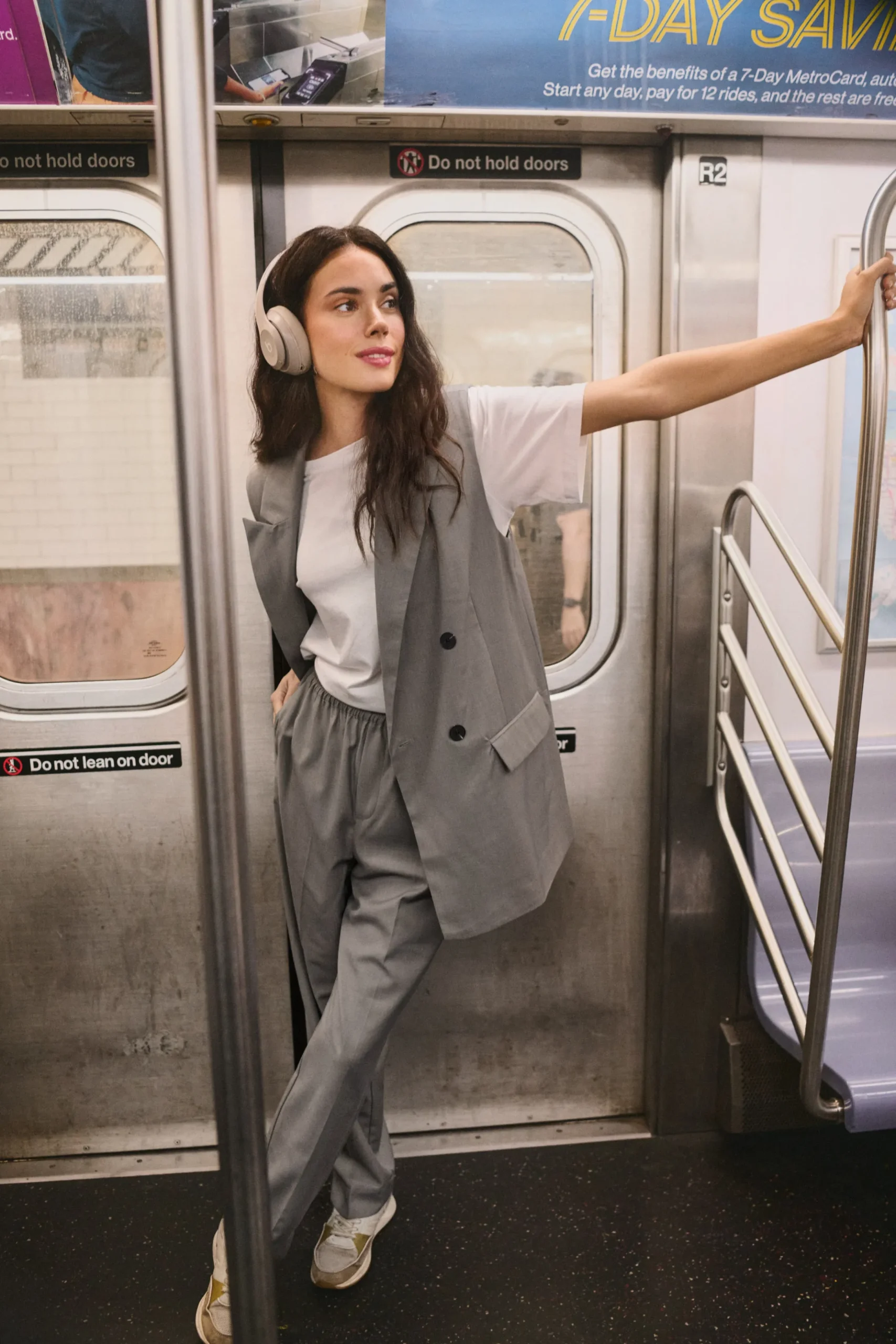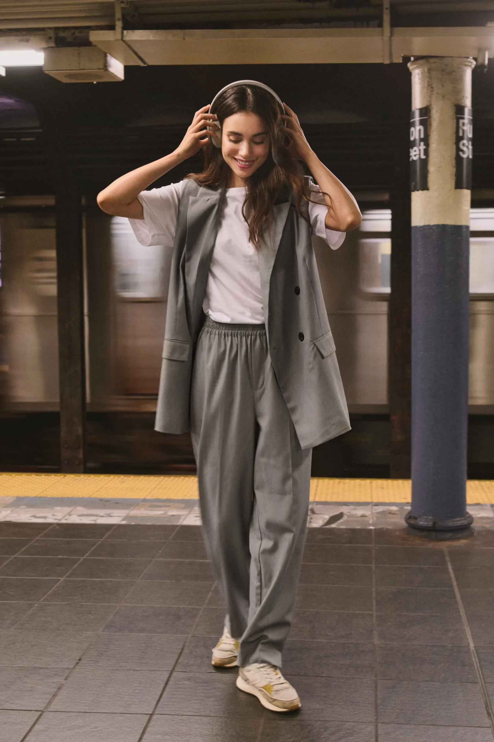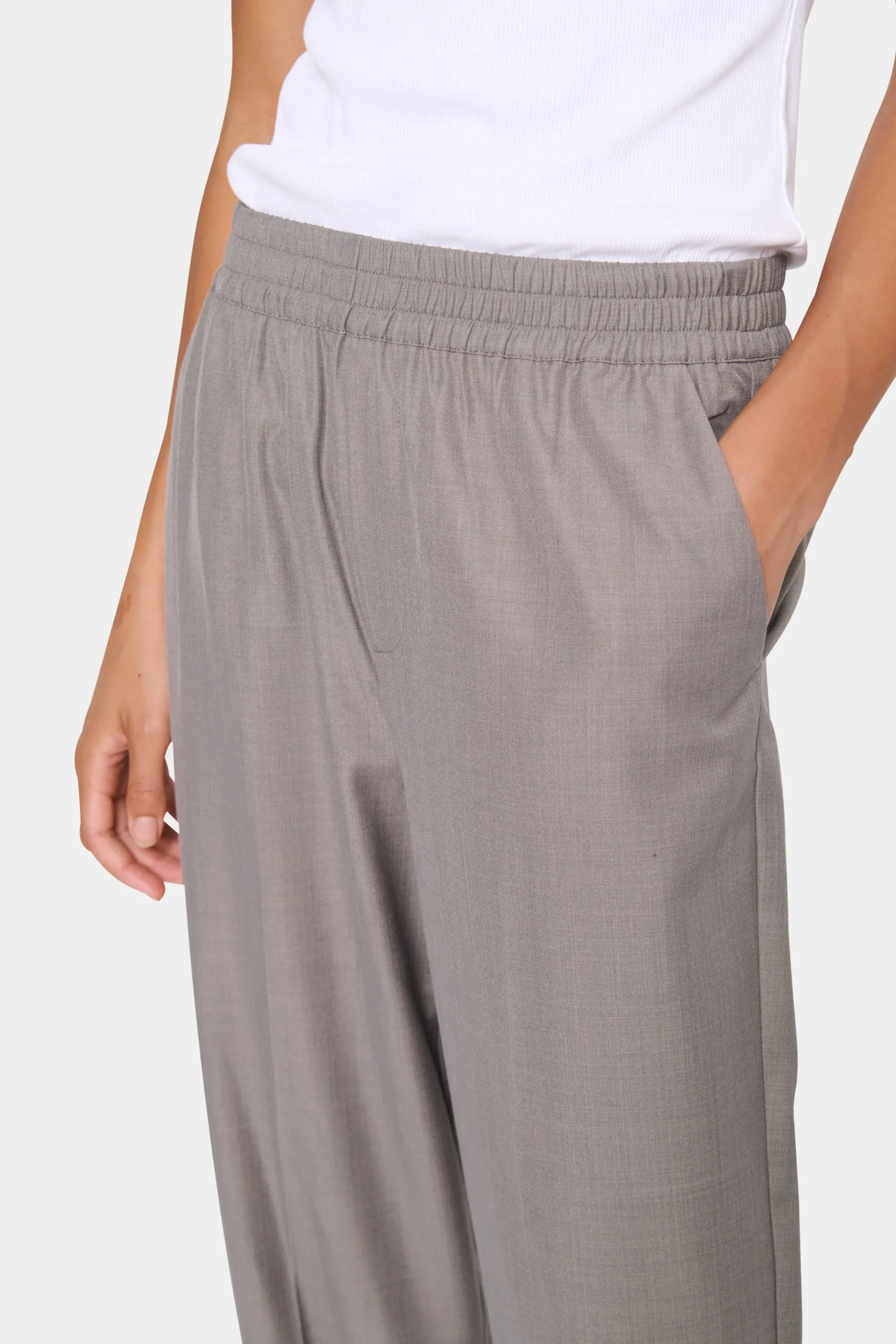 Disse bukser har en afslappet pasform med elastisk talje og pressefolder, der giver et stilrent udtryk. Designet med praktiske lommer og let materiale, perfekt til hverdagsbrug. \\n\\nModellen er 179 cm høj og bærer en størrelse M.