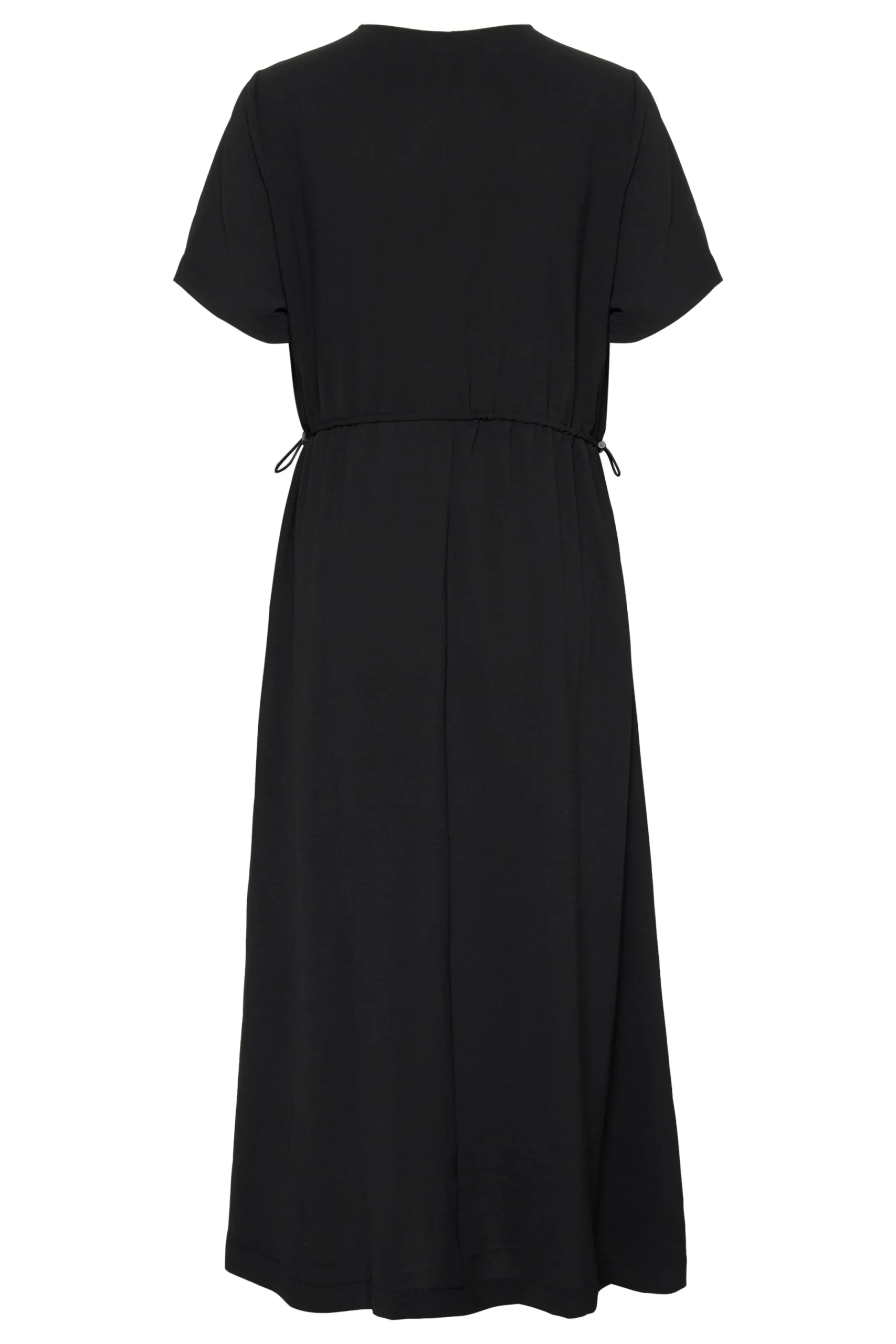 Gør dig klar til enhver lejlighed med denne kjole. Dens midi-længde skaber en flatterende silhuet, mens de korte ærmer gør den til et ideelt valg til varmere dage eller indendørs arrangementer. Fremstillet af 100% polyester.