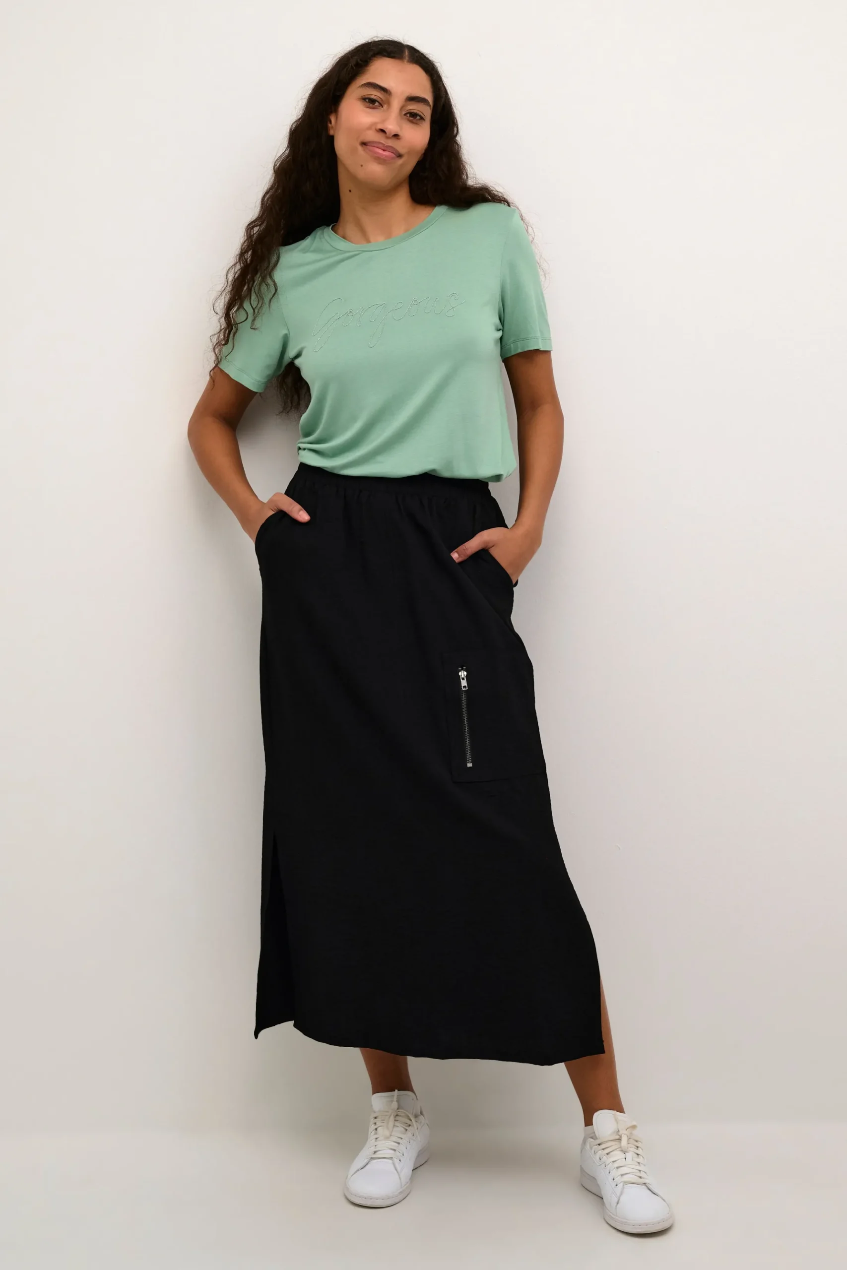 Denne nederdel med en normal pasform og i midi-længde er fremstillet af en blanding af viskose, polyester og polyamid. Kan nemt kombineres med forskellige toppe.