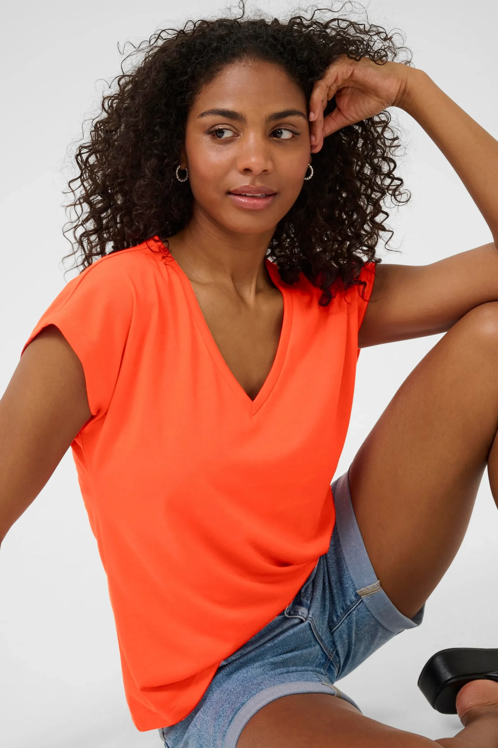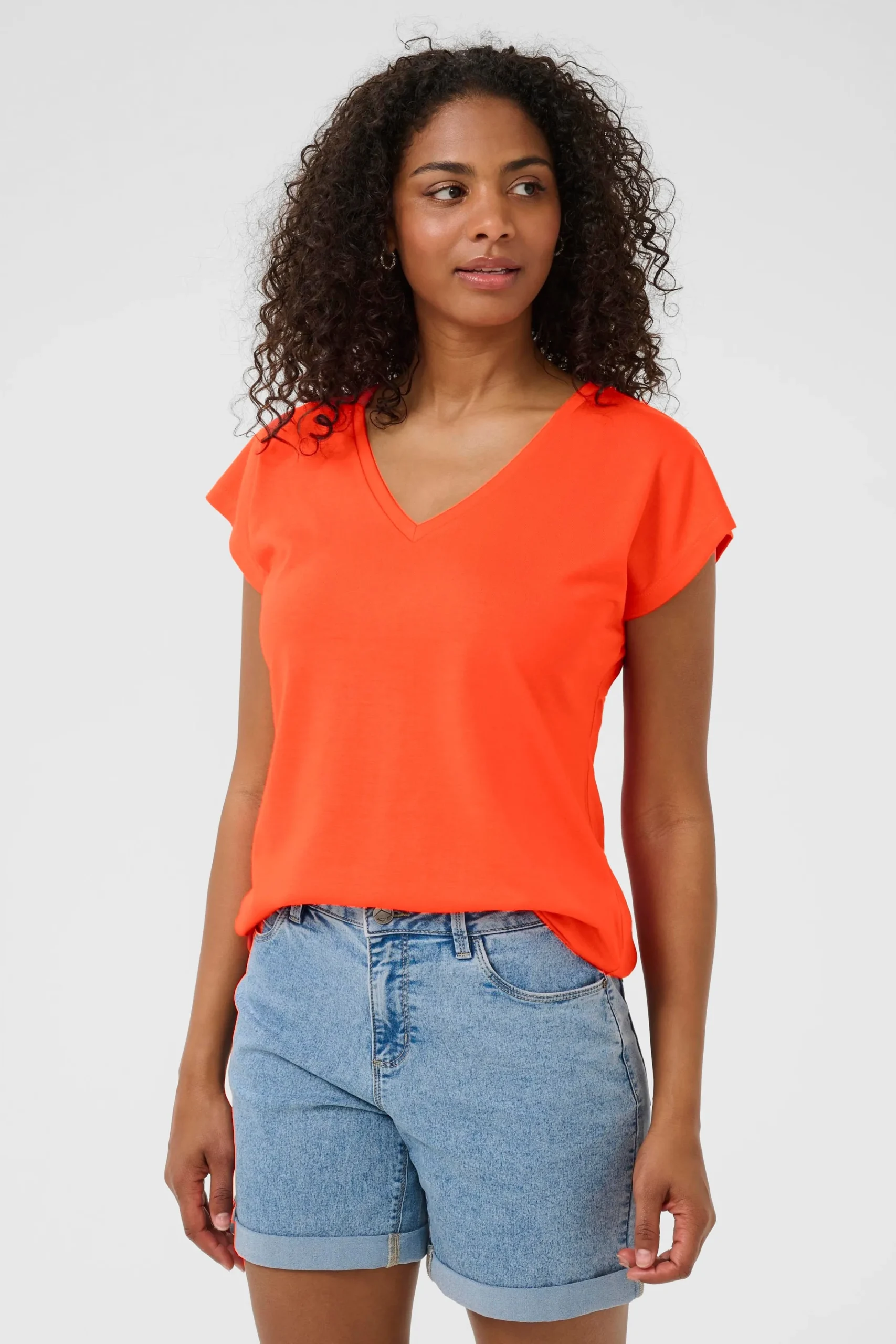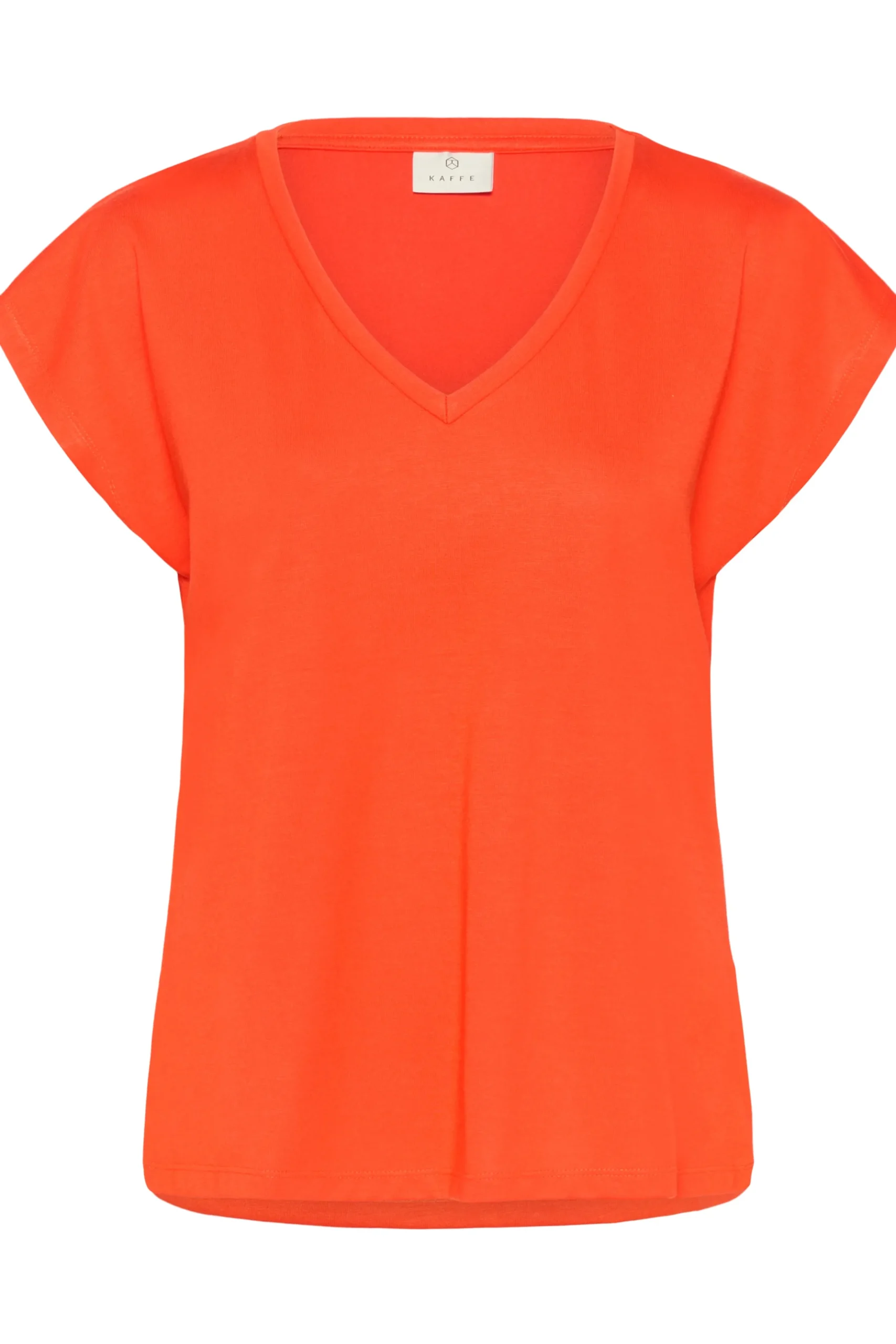 T-shirt fra KAFFE med V-hals. Korte ærmer. Jerseykvalitet. Løstsiddende pasform.