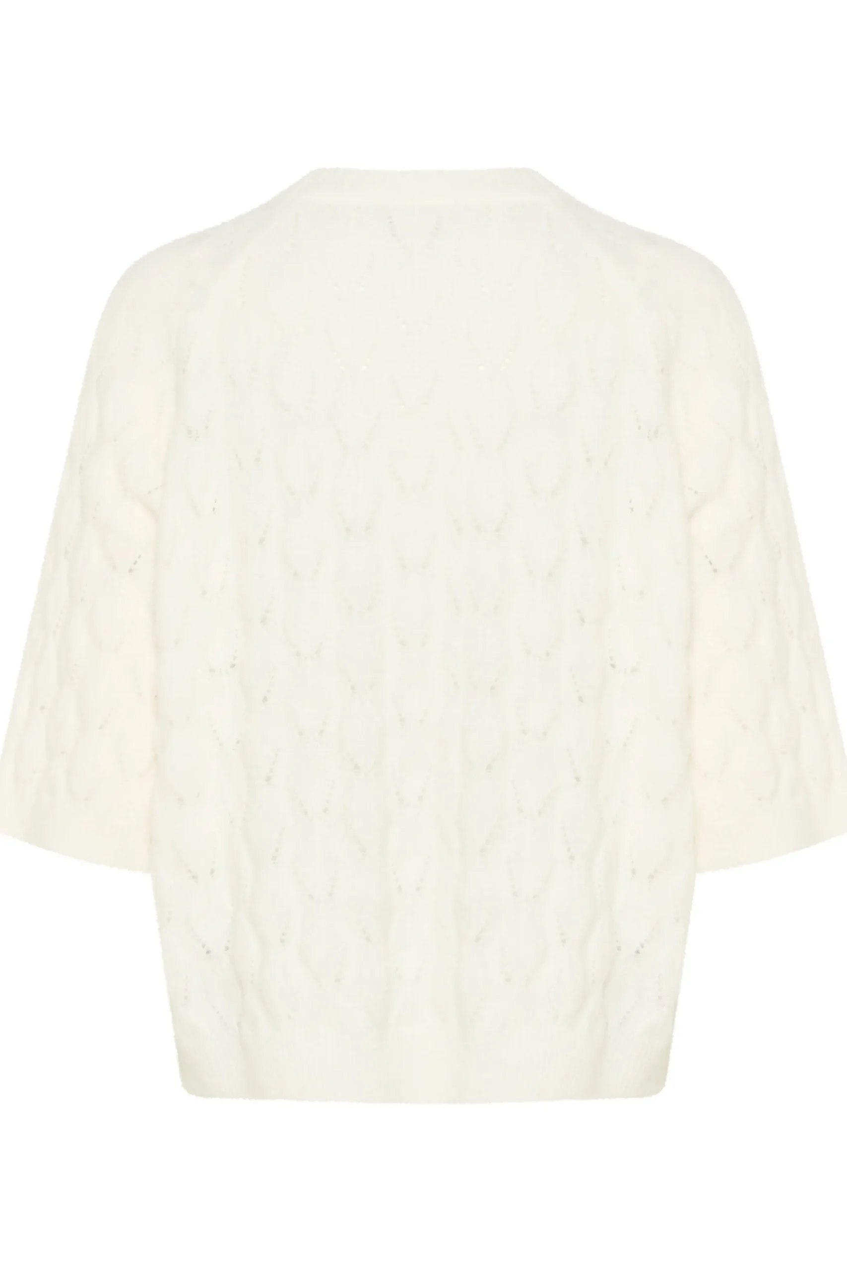 Denne striktrøje med smuk tekstur er det perfekte valg til både hverdagsbrug og mere afslappede lejligheder. Trøjen har 3/4-ærmer, der giver et let og look. Med sin bløde og behagelige pasform er den både stilfuld og komfortabel 窶åde jeans og nederdele.
