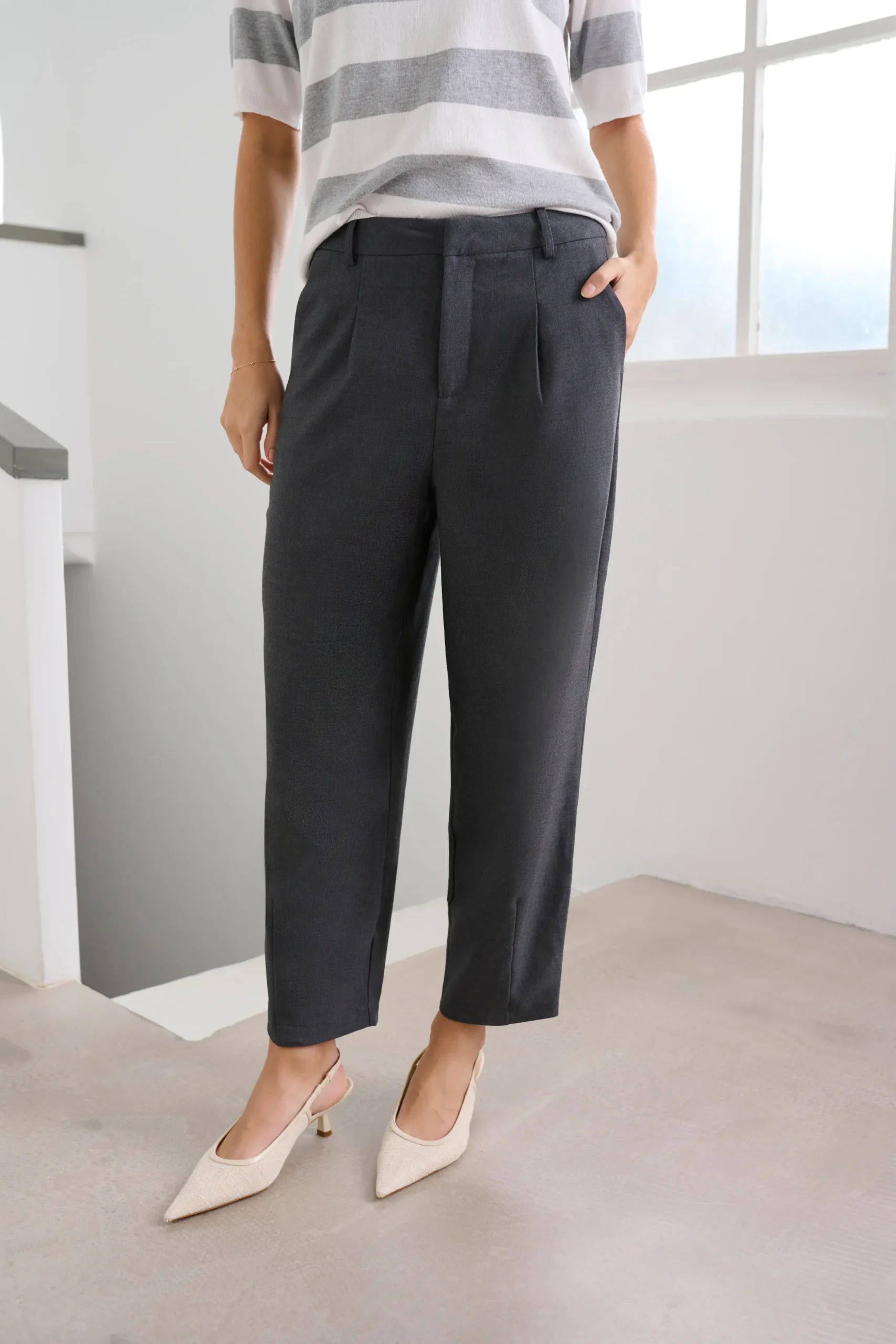 Disse klassiske bukser er et must-have til enhver garderobe. Med deres enkle snit kan de nemt styles til alt fra en afslappet t-shirt til en elegant blazer, hvilket gør dem perfekte til både hverdag og formelle anledninger. Uanset hvordan de styles, sikrer deres tidløse design et stilrent look.