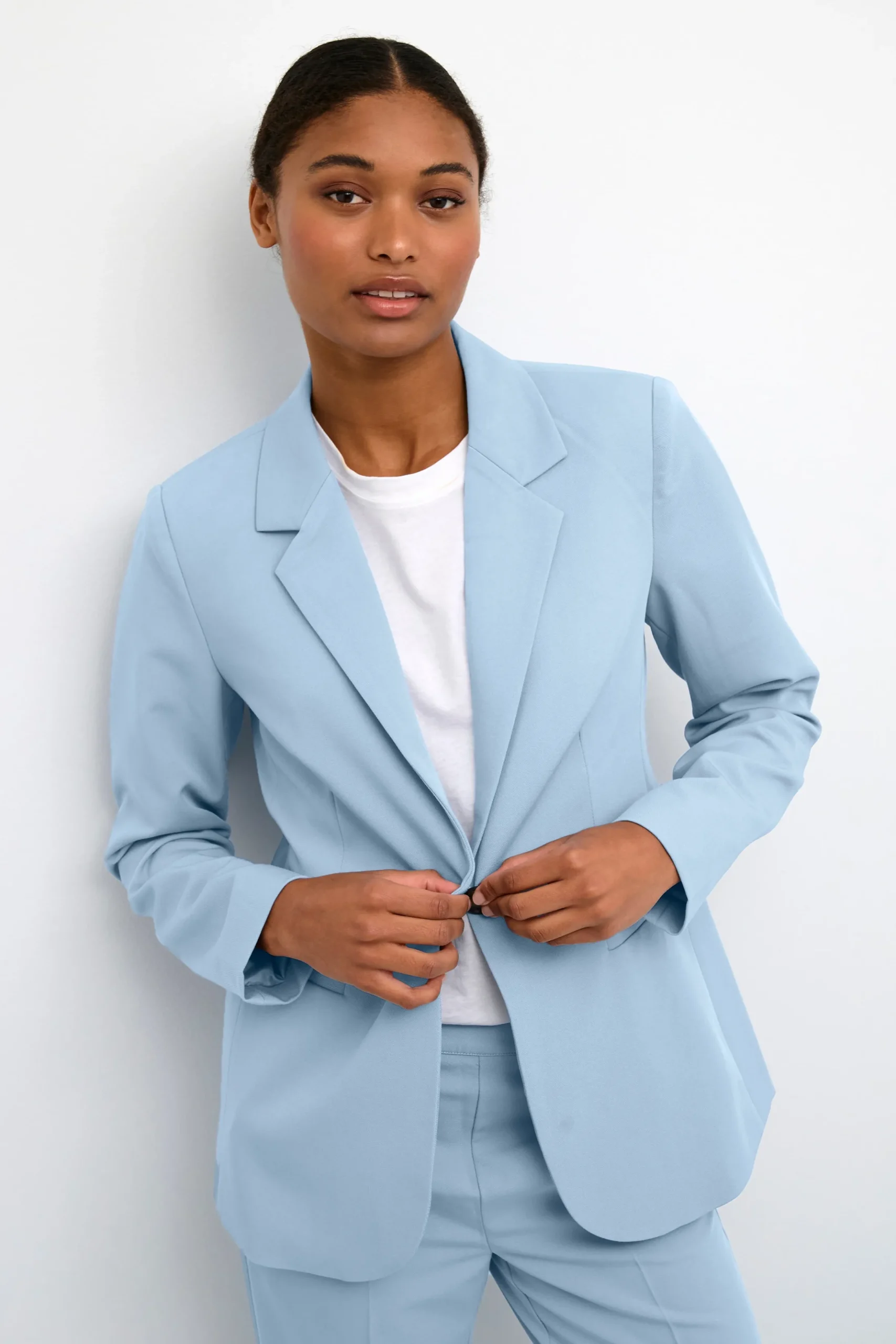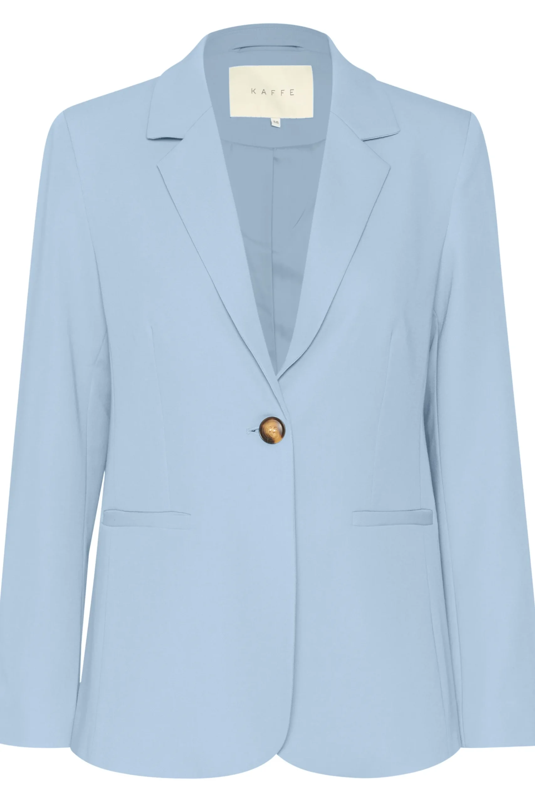 Blazer fra KAFFE med krave og revers. Lange ærmer. Synlig knaplukning. Lommer foran. Vævet twillkvalitet. Tætsiddende pasform.